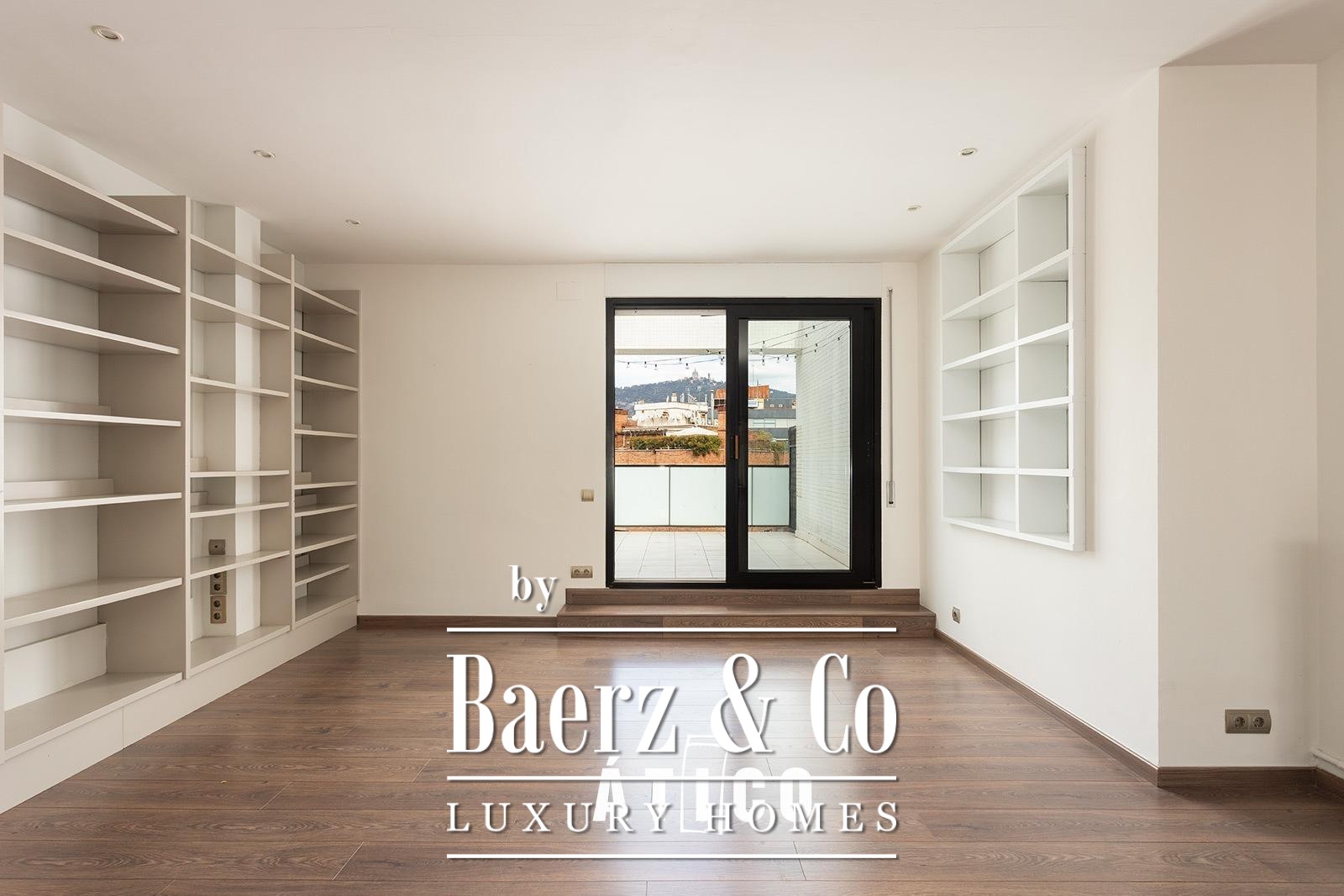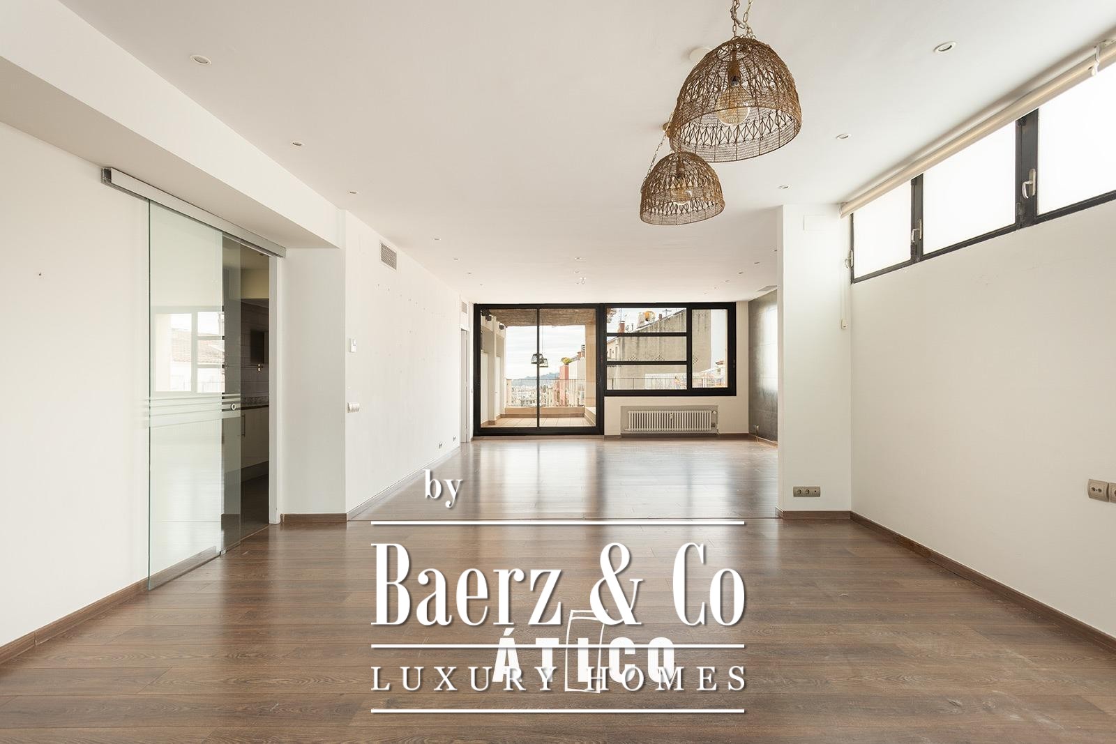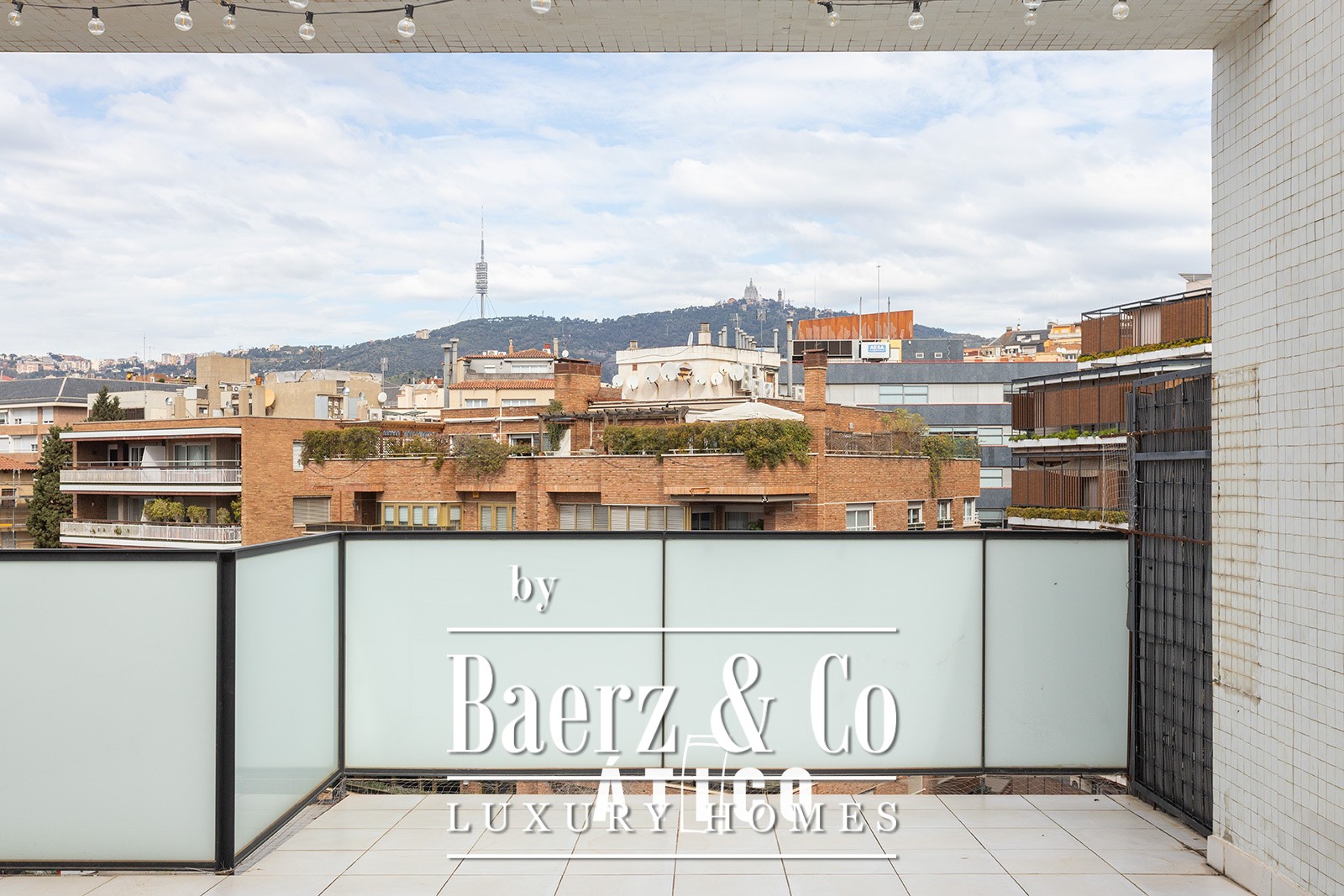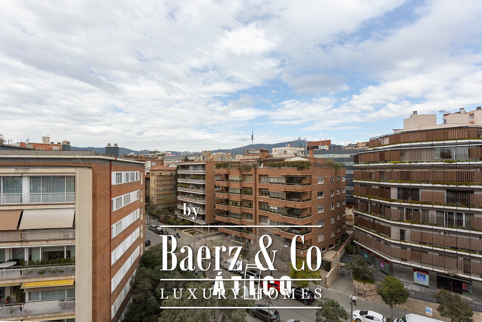 Attic Barcelona onderscheidt zich door haar bevoorrechte ligging in Sant Gervasi-Galvany, een adres dat synoniem staat voor discretie en verfijnd stedelijk wonen. Dit penthouse beslaat 231 m², is zuidgeoriënteerd en baadt de hele dag in het natuurlijke licht. Het panoramische uitzicht strekt zich uit van zee tot bergen, waardoor elke ruimte een rustige ruimtelijkheid ervaart, versterkt door hoge plafonds die bijdragen aan het ritme en het comfort van het dagelijkse leven.