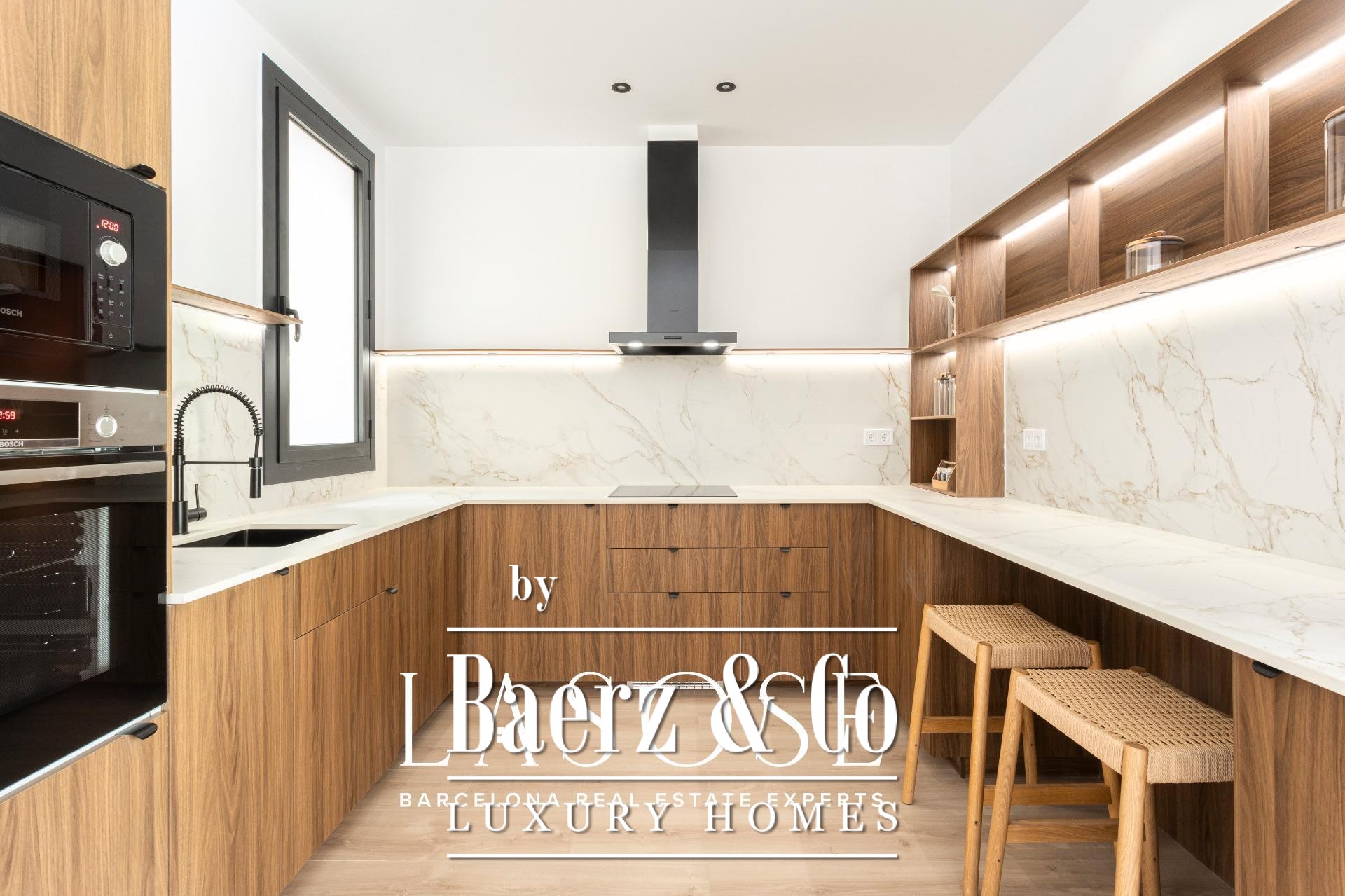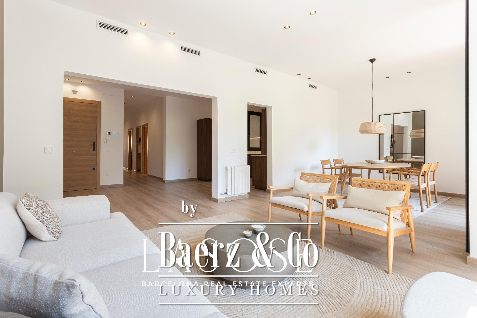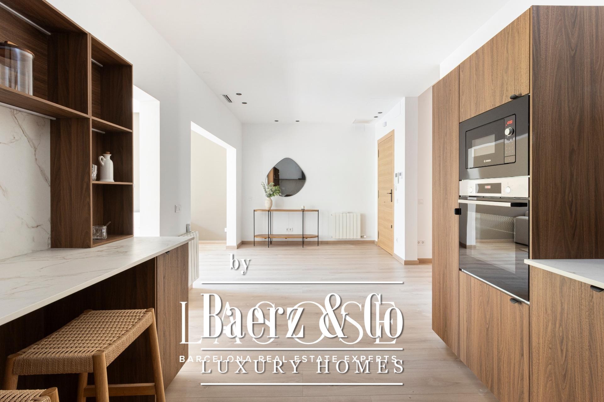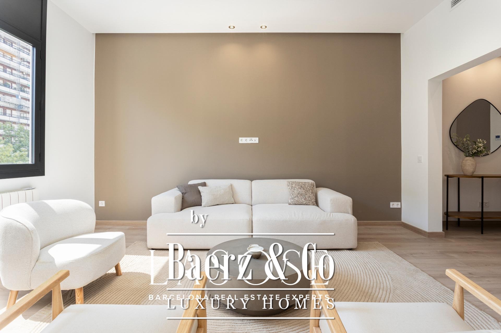 LASOSE presents this exclusive property located on the second floor (third real floor) of a stately estate on the prestigious Josep Tarradellas Avenue, this elegant residence has been completely refurbished with high quality finishes.. . It stands out for its great luminosity, thanks to its double orientation, as well as for its large interior spaces, with high ceilings.. . Upon entering, we find a large hall that leads to the day area, consisting of open kitchen, living room and dining room, with large windows through which you access a cozy gallery-balcony that allows unobstructed views to the outside.. . The open kitchen, of modern design, is equipped with integrated Bosch appliances, including oven, induction hob, dishwasher and extractor hood. The countertop is from Dekton by Cosentino in a sophisticated matte finish.. . The night area consists of three double bedrooms, all of them of large dimensions, and three full bathrooms (one of them en suite), as well as a laundry room.. . The master suite, very spacious, has access to a bright gallery, dressing room and en suite bathroom