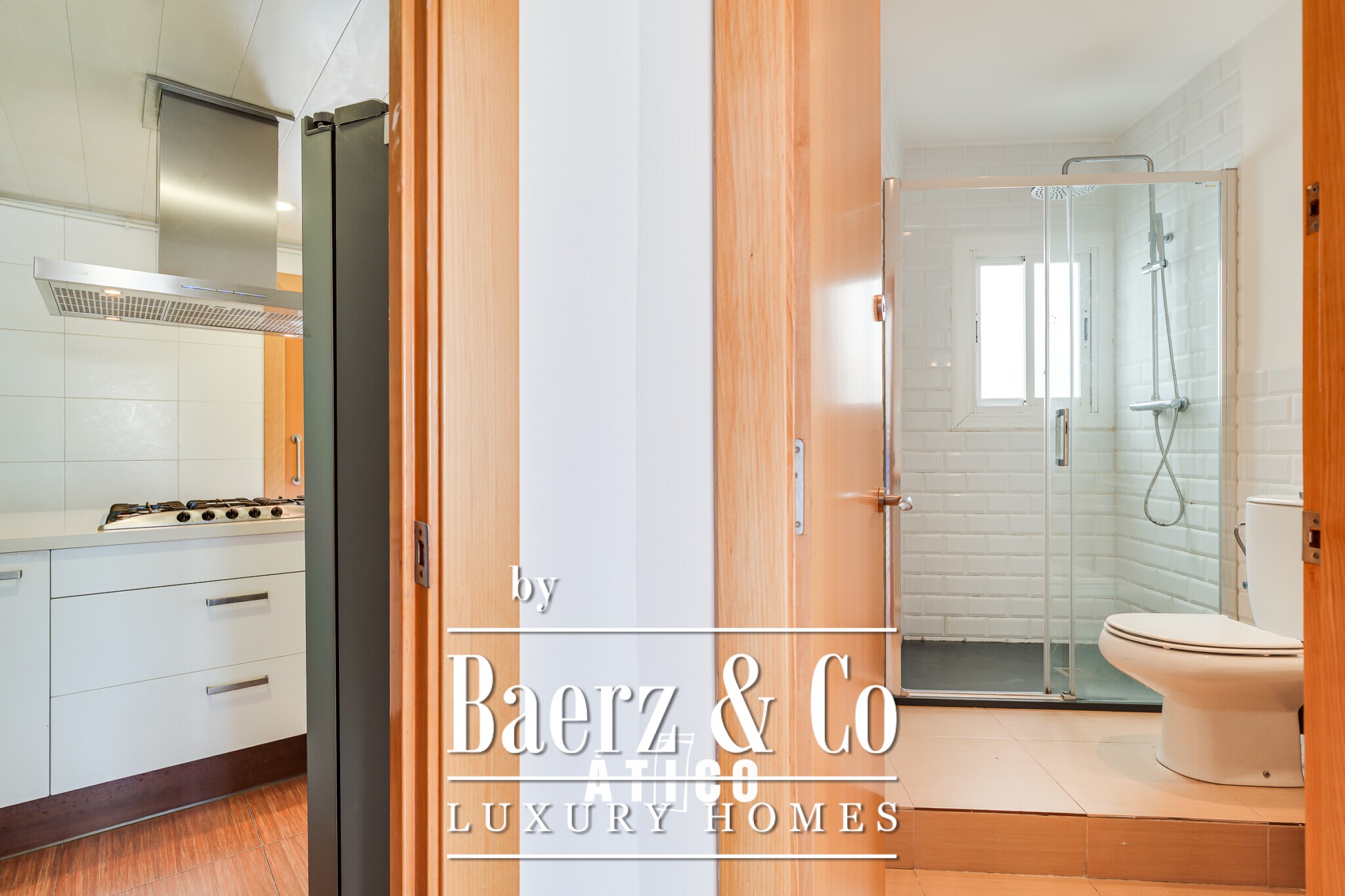 La vivienda dispone de tres dormitorios dobles, uno de ellos en suite con baño privado, y dos baños completos, diseñados para ofrecer funcionalidad y confort. La cocina independiente, de generosas dimensiones, comunica con la zona de comedor y da acceso a una práctica zona de lavandería, optimizando así la distribución interior.