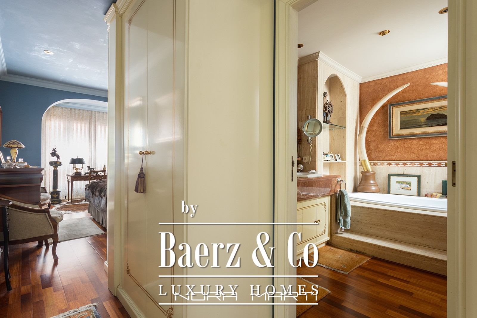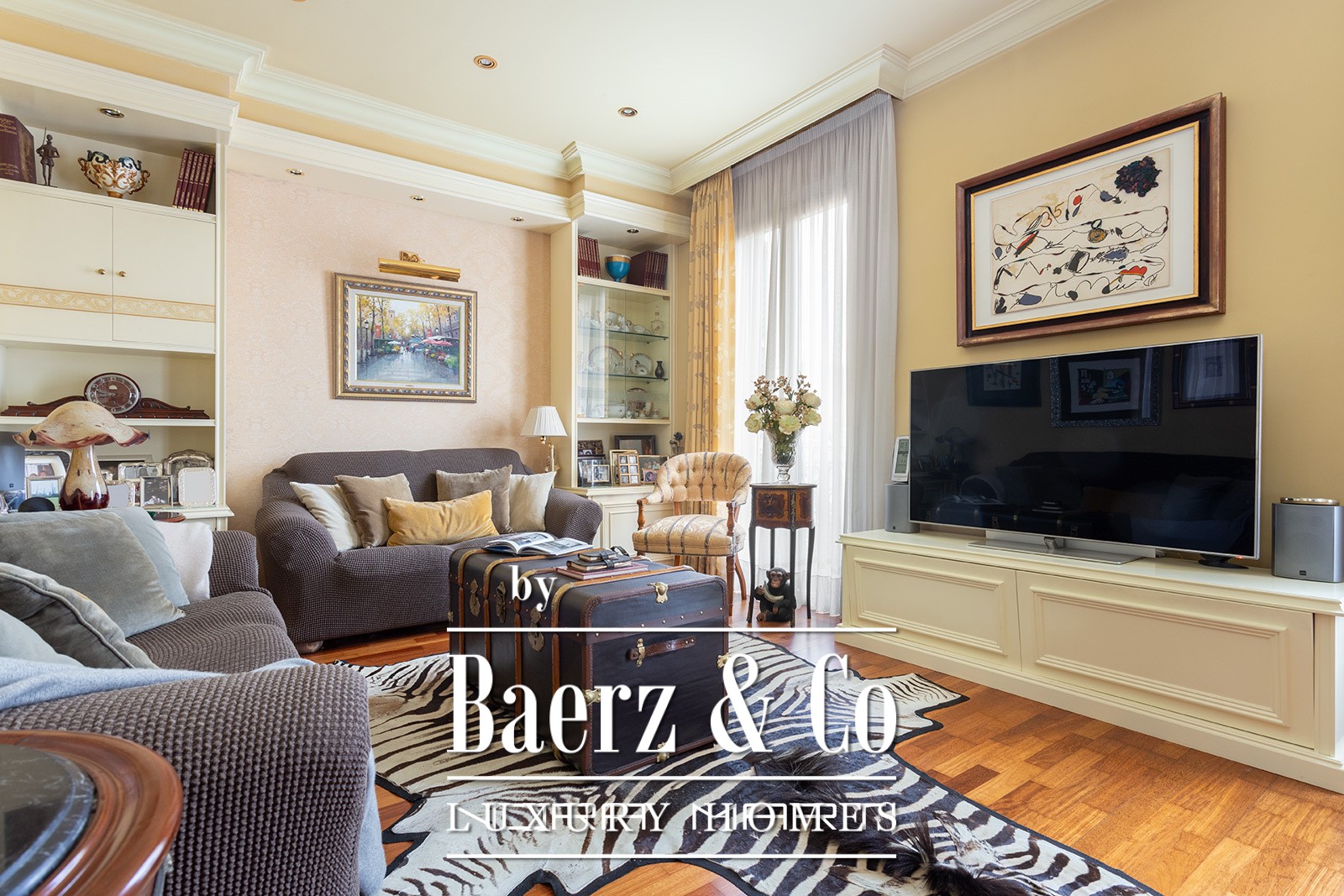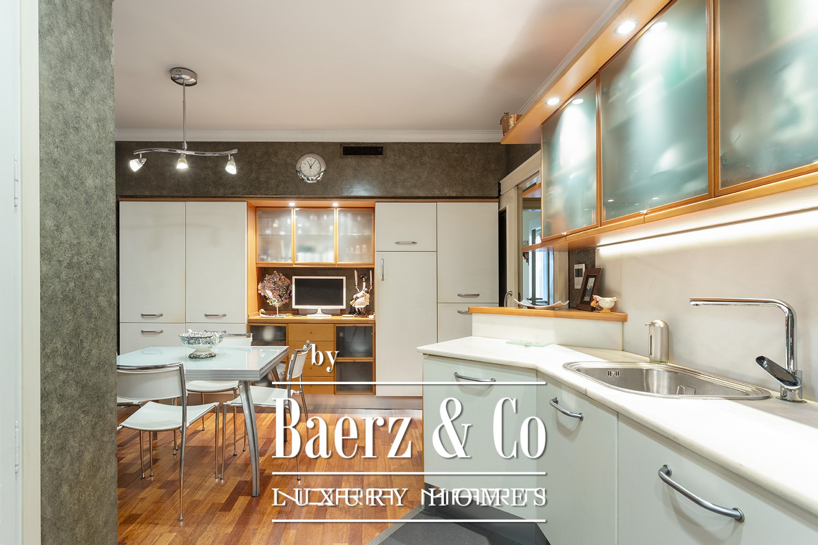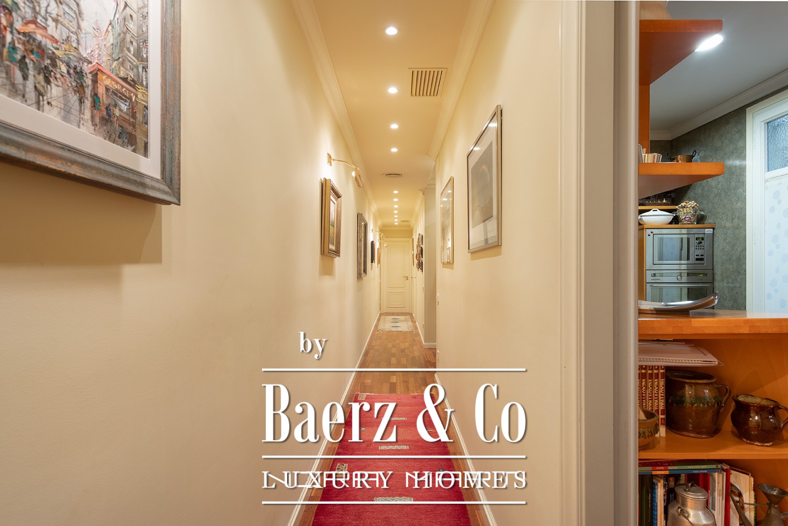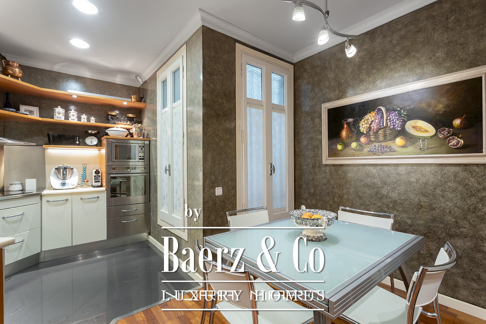 De royale woon- en eetkamer is licht en ruim, met overvloedig daglicht dankzij directe toegang tot twee balkons op het noordoosten die het dagelijkse stadsleven in alle rust observeren. De recent geïnstalleerde keuken beschikt over geïntegreerde apparatuur en is helemaal voorbereid op elke culinaire uitdaging, met een uitgesproken eigentijdse uitstraling.