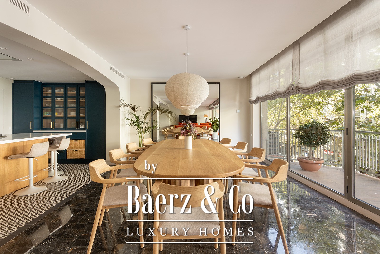 Dit luxe appartement aan de Barcelona Plaza Kennedy biedt een zeldzaam gevoel van ruimte en rust binnen een van de meest gewilde wijken van de stad. De woning beslaat 250 m² en grenst aan een royale, oostelijk georiënteerde terras van 200 m², een besloten podium voor lichte ochtenden of intieme bijeenkomsten met familie en vrienden. De open indeling van de woon- en eetruimte vloeit over in een moderne keuken, verfijnd en uitnodigend, waar lichtinval en ruimtelijkheid centraal staan.