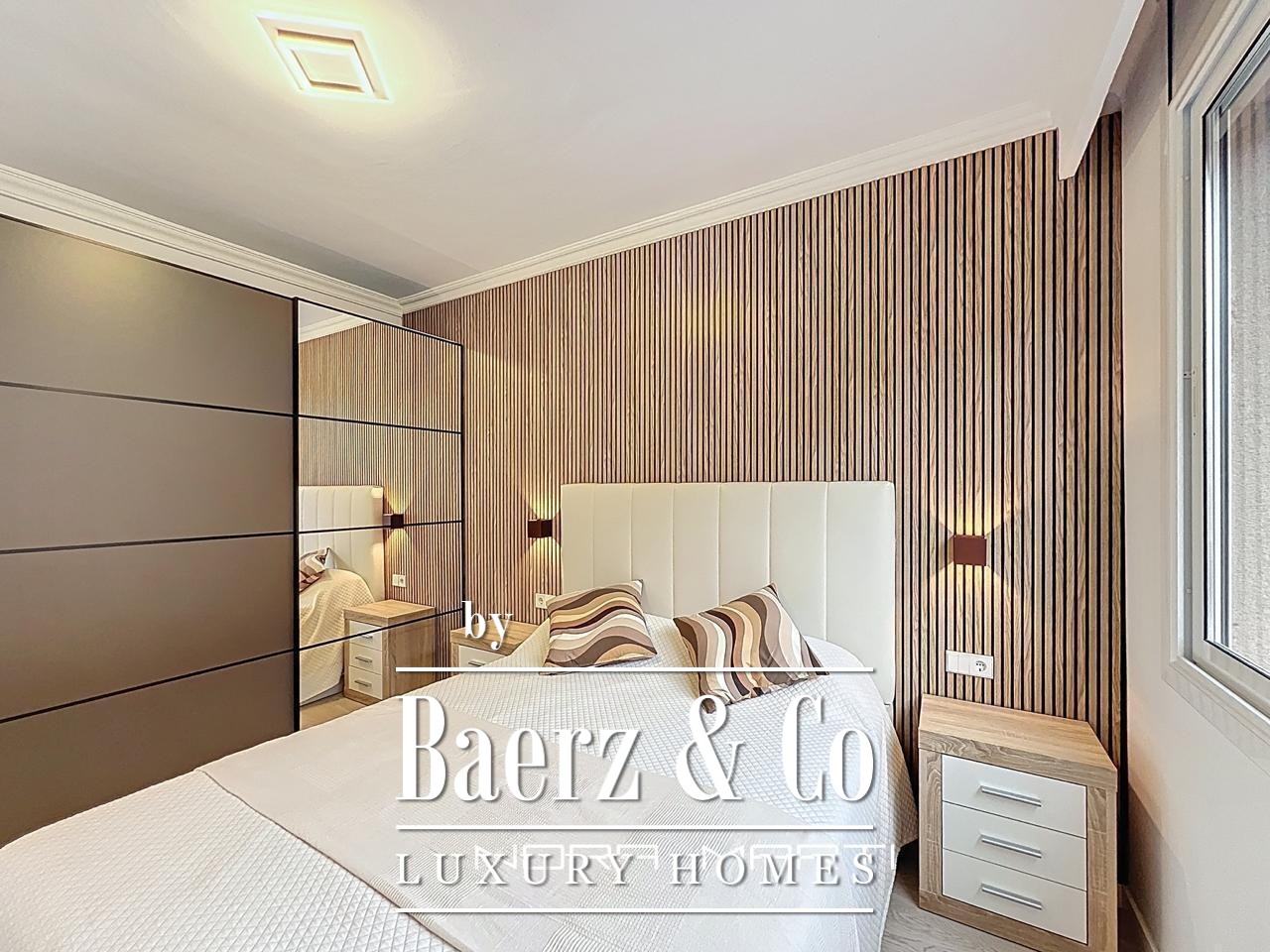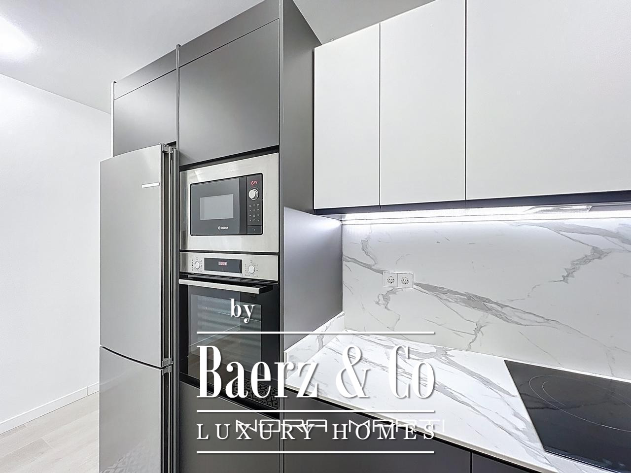 Het appartement is ingericht met oog voor comfort en functionaliteit en beschikt over vier tweepersoonsslaapkamers, waarvan twee met en-suite badkamer, plus een derde complete badkamer. Elke slaapkamer is voorzien van ingebouwde kasten, waarmee opbergruimte en stijl worden gecombineerd. De ruime woon- en eetkamer baadt in daglicht en grenst direct aan een balkon, zodat het buitenleven uitnodigend wordt geïntegreerd. De aparte keuken is volledig uitgerust met Bosch-apparatuur en grenst aan een praktische wasruimte, voor optimaal gemak en privacy.