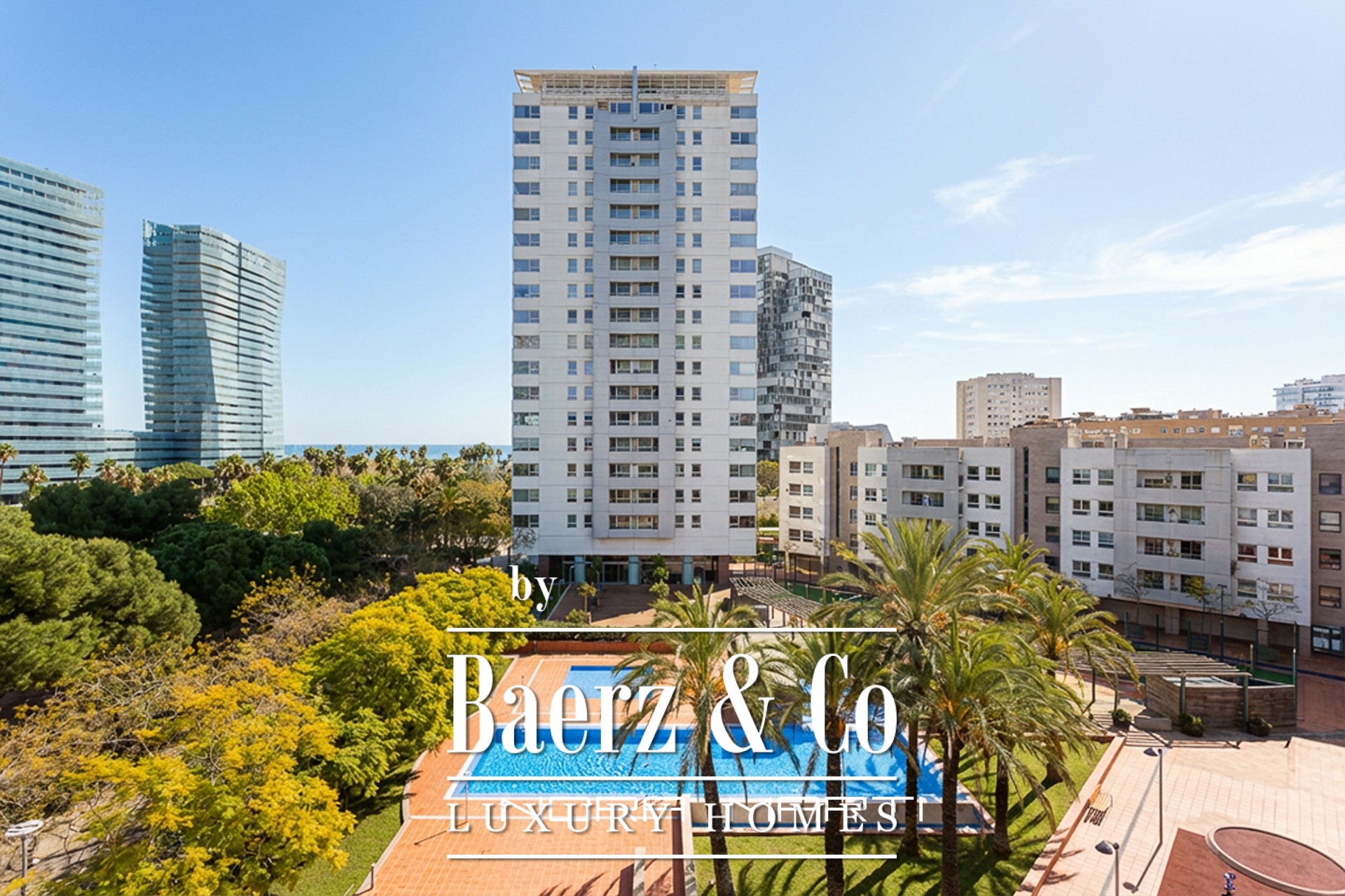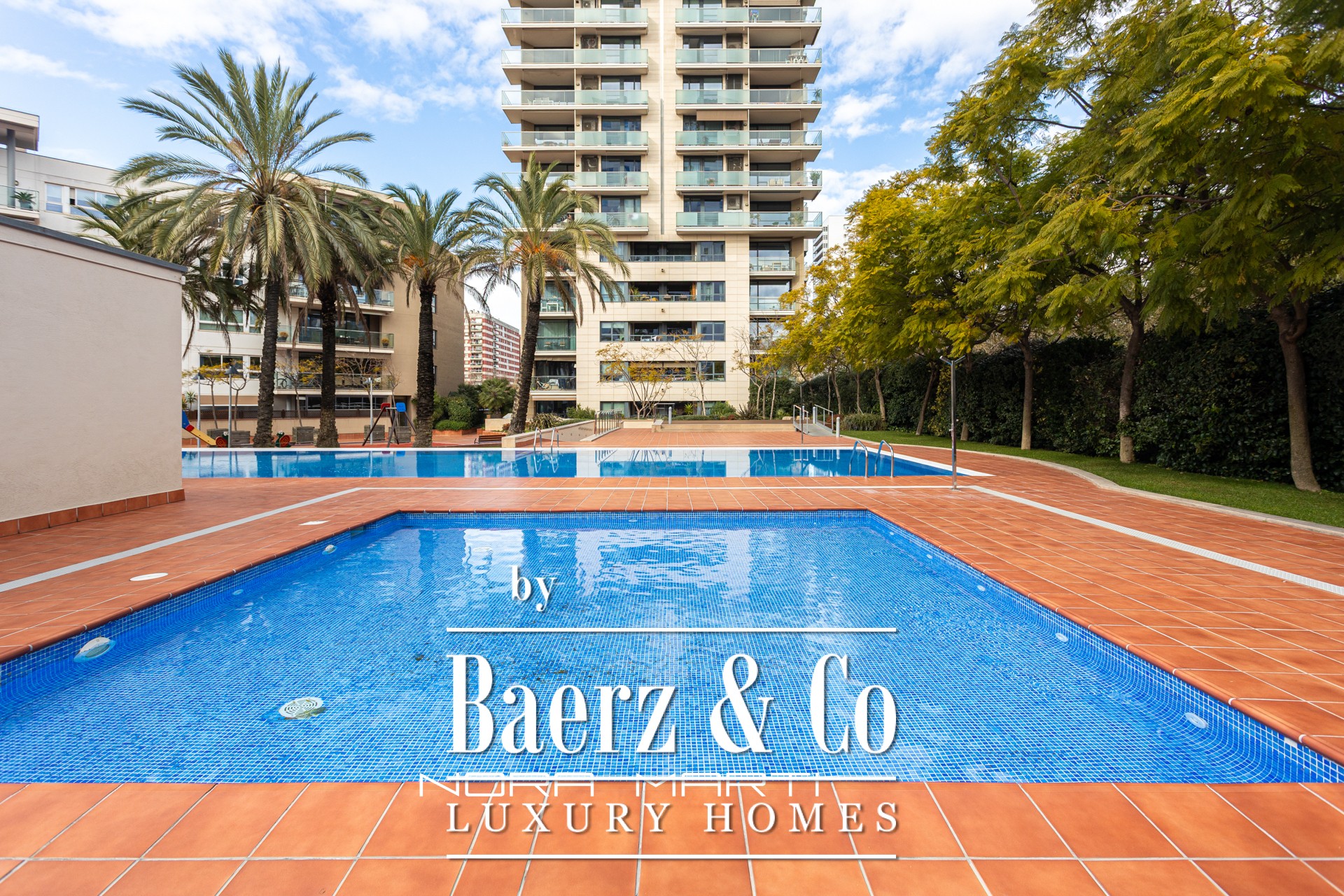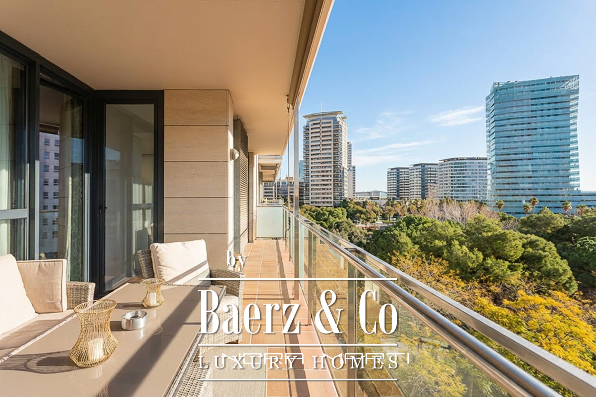 Appartement Diagonal Mar Barcelona biedt een zeldzaam gevoel van licht en rust, op slechts 500 meter van de Middellandse Zee en direct tegenover een groene, serene zone. Gevestigd in een modern, hoogwaardig gebouw, is deze volledig naar buiten gerichte woning 152 m² groot en wordt gekenmerkt door overvloedig daglicht en een royaal terras met uitzicht op zowel zee als de zorgvuldig aangelegde gemeenschappelijke tuinen.