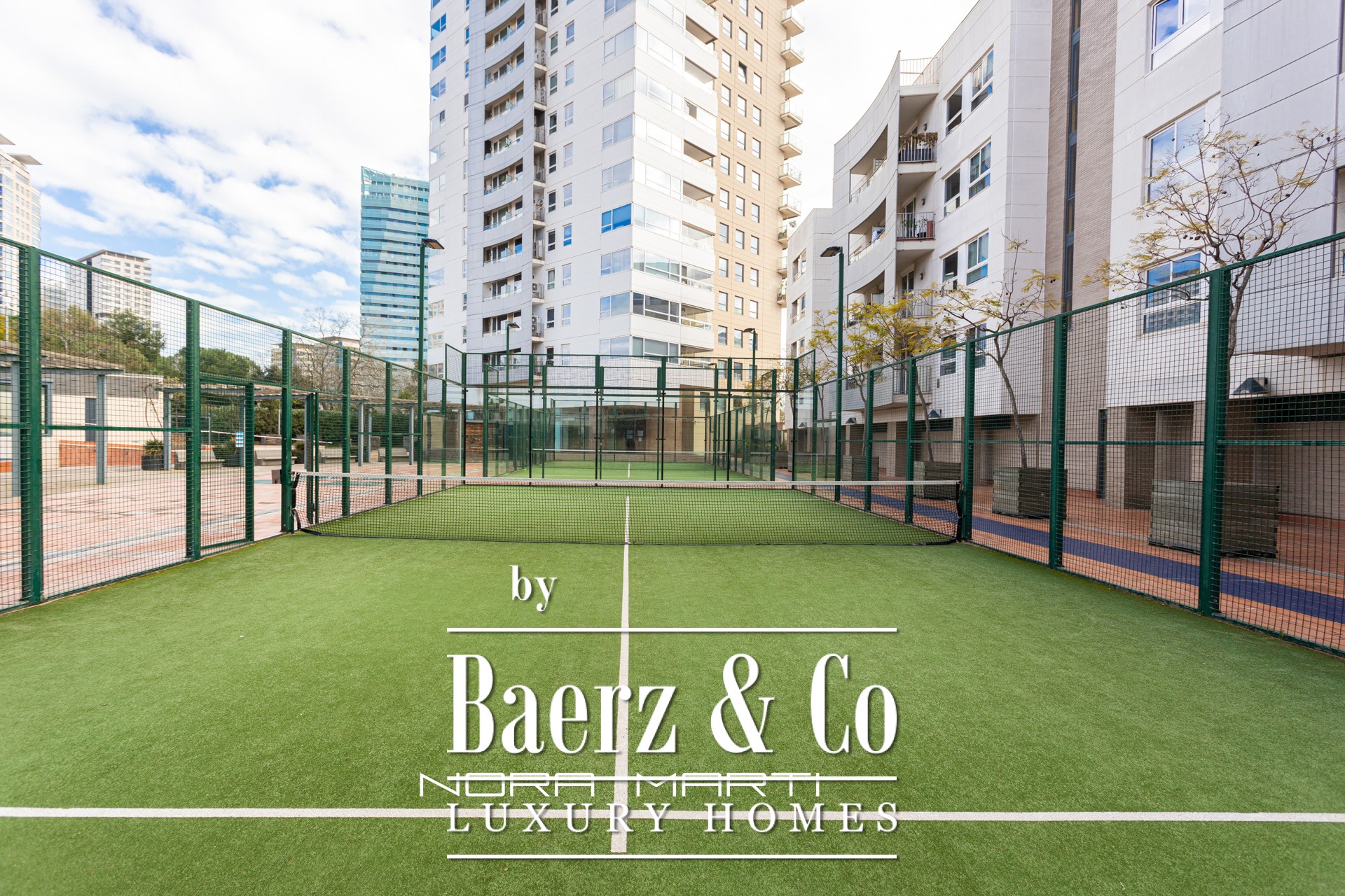 De gemeenschappelijke voorzieningen zorgen voor een dagelijks leven vol ingetogen exclusiviteit: zwembaden, tuinruimtes, fitness met Technogym-apparatuur, padelbanen, speelkamers en permanente conciërge- en beveiligingsdienst. Voor wie zoekt naar een harmonieuze balans tussen ruimte, comfort en een eersteklas locatie aan zee in Diagonal Mar Barcelona biedt dit appartement zeldzame integriteit en blijvende aantrekkingskracht.
