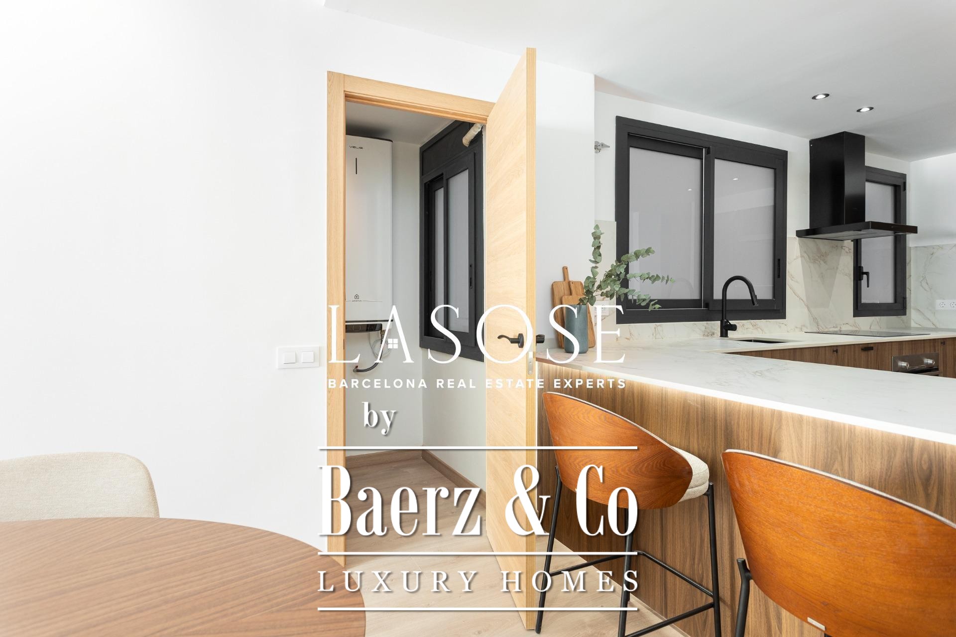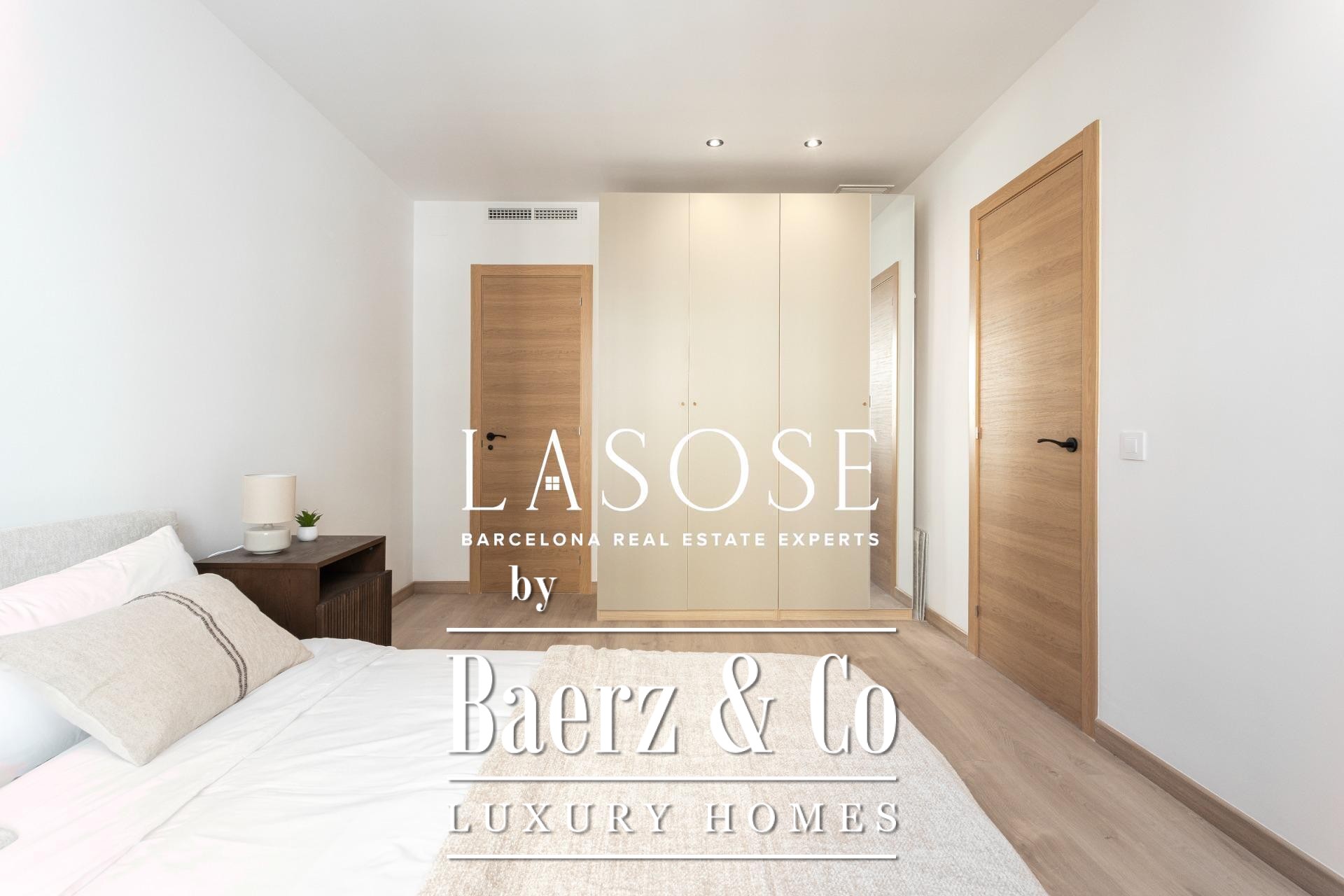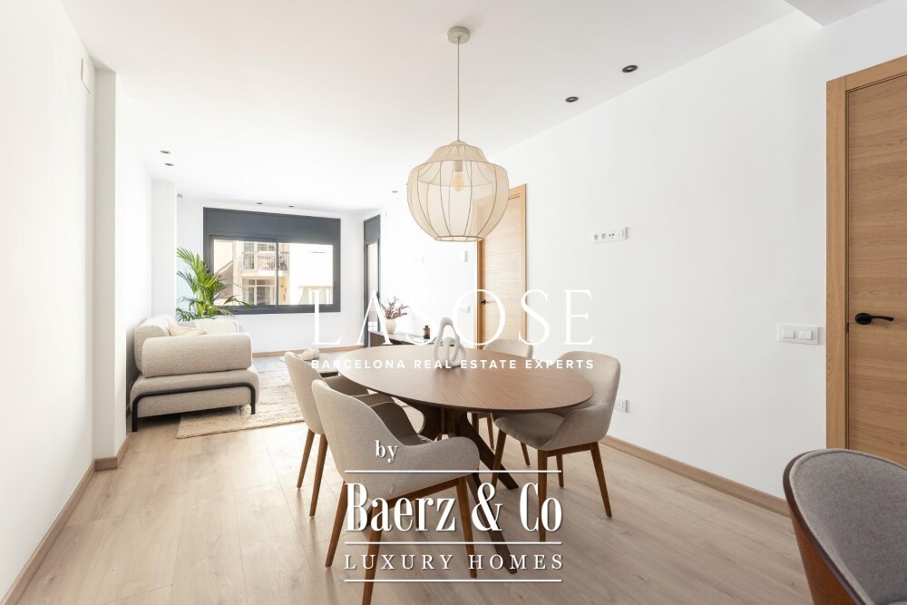 Er zijn drie slaapkamers: een mastersuite met toegang tot het terras, ingebouwde kasten en een eigen badkamer, aangevuld met een dubbele en een eenpersoonskamer. Beide badkamers zijn voorzien van geïntegreerde kranen, LED-verlichting en porseleinen details. Voorzieningen zijn onder andere een ingebouwd Mitsubishi airconditioningsysteem, geavanceerde isolatie, een aparte wasruimte en een parkeerplaats in het gebouw geschikt voor een kleine auto of motor, wat onopvallend comfort biedt in het hart van Barcelona. Dit luxe appartement te koop in Barcelona belichaamt de balans tussen modern design en stedelijk wooncomfort.