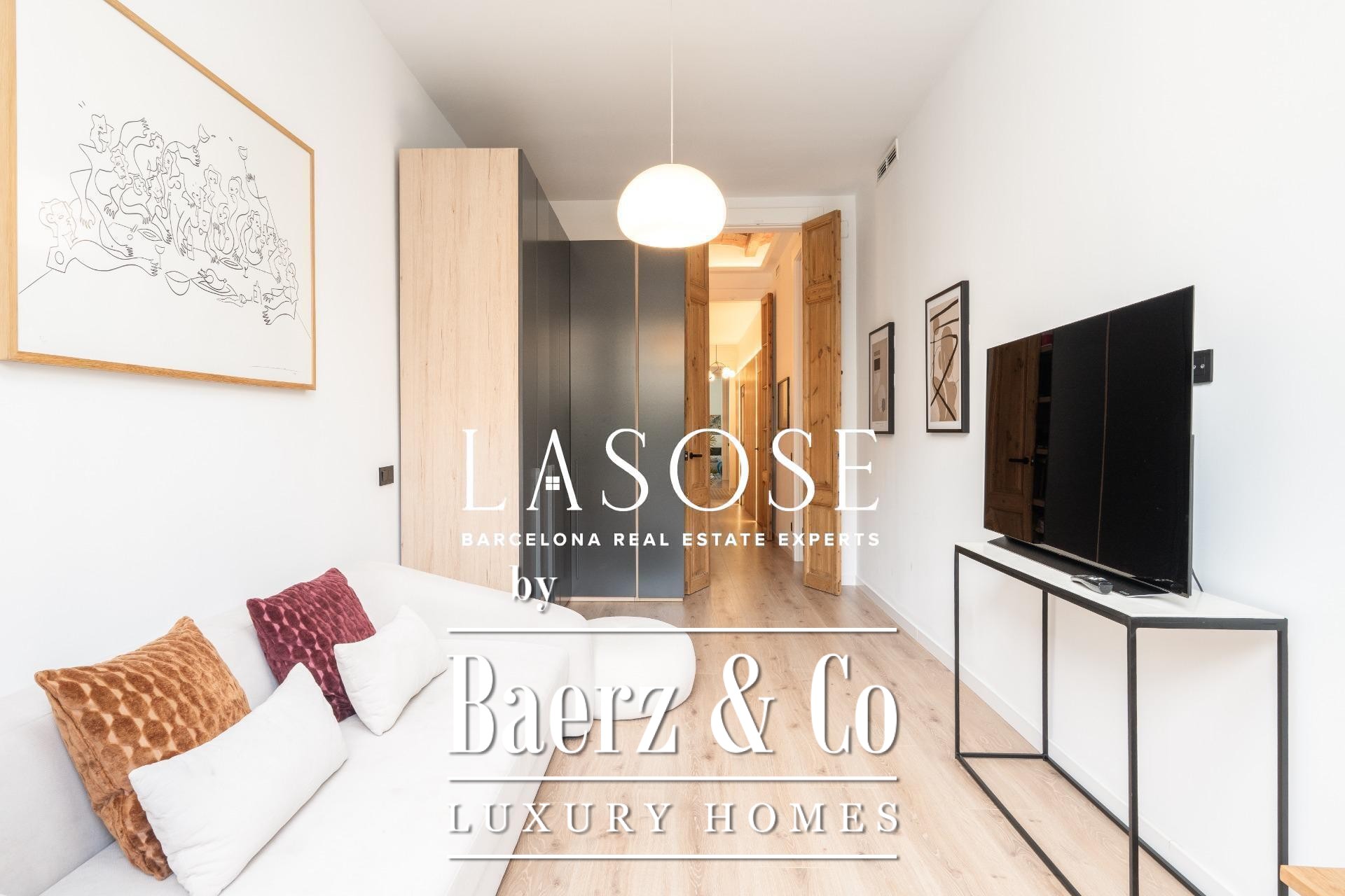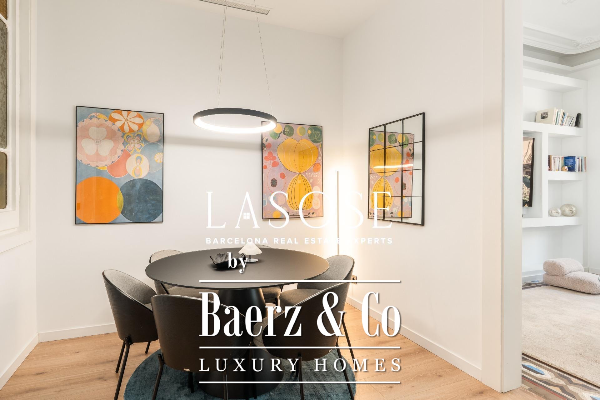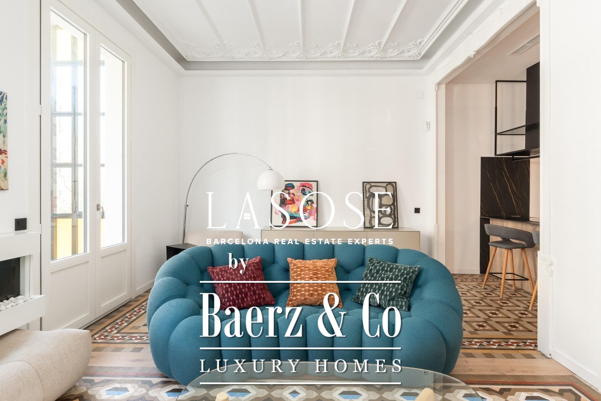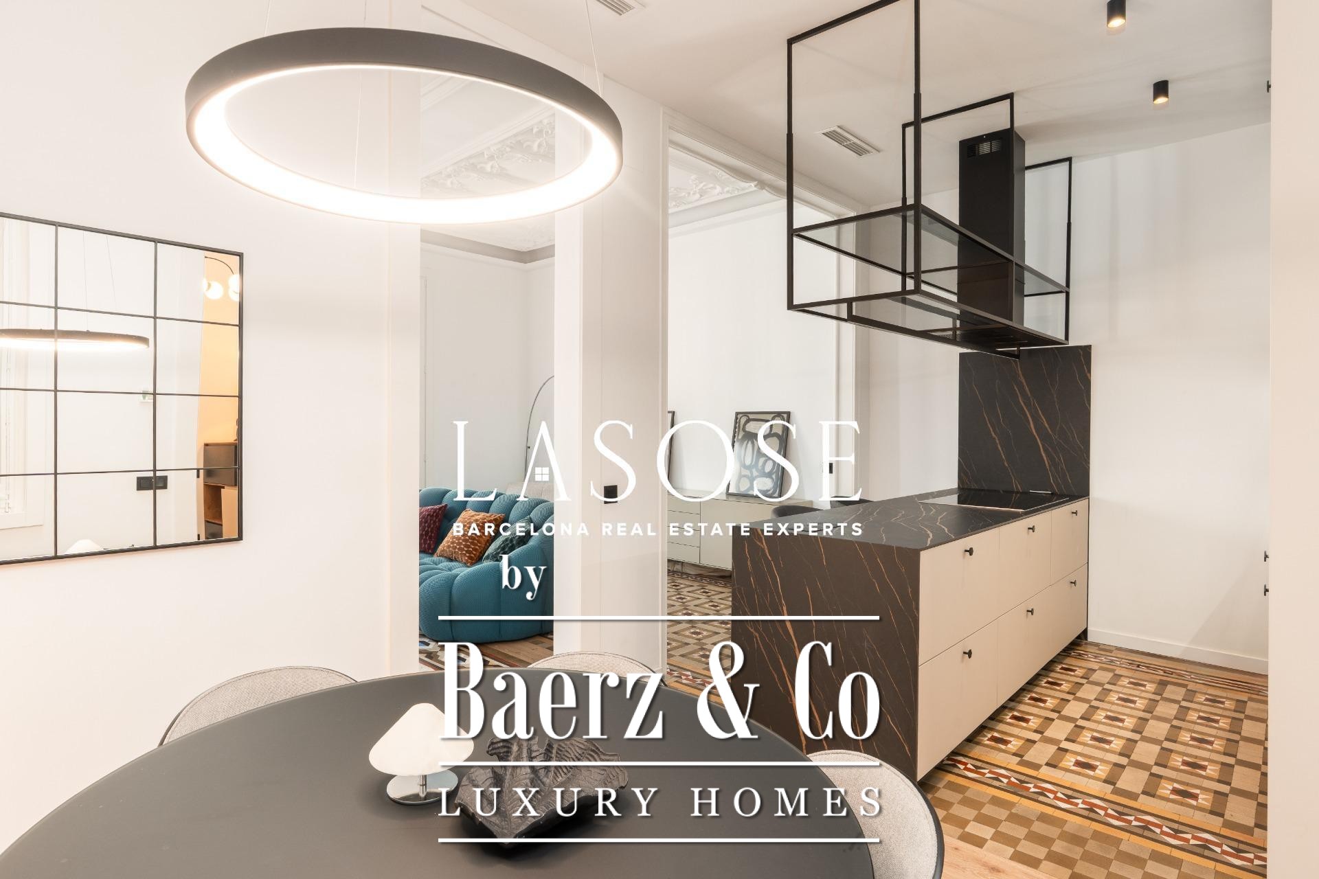 Appartement Barcelona Eixample bevindt zich op een rustige locatie op de Principal-verdieping van een beschermd modernistisch gebouw nabij de Passeig de Sant Joan. De meest recente renovatie, voltooid slechts twee jaar geleden, combineert hedendaagse luxe met de oorspronkelijke charme. Kenmerkend zijn de hydraulische Nolla-mozaïekvloeren, hoge plafonds voorzien van decoratieve sierlijsten en geraffineerde architectonische details door het hele pand.