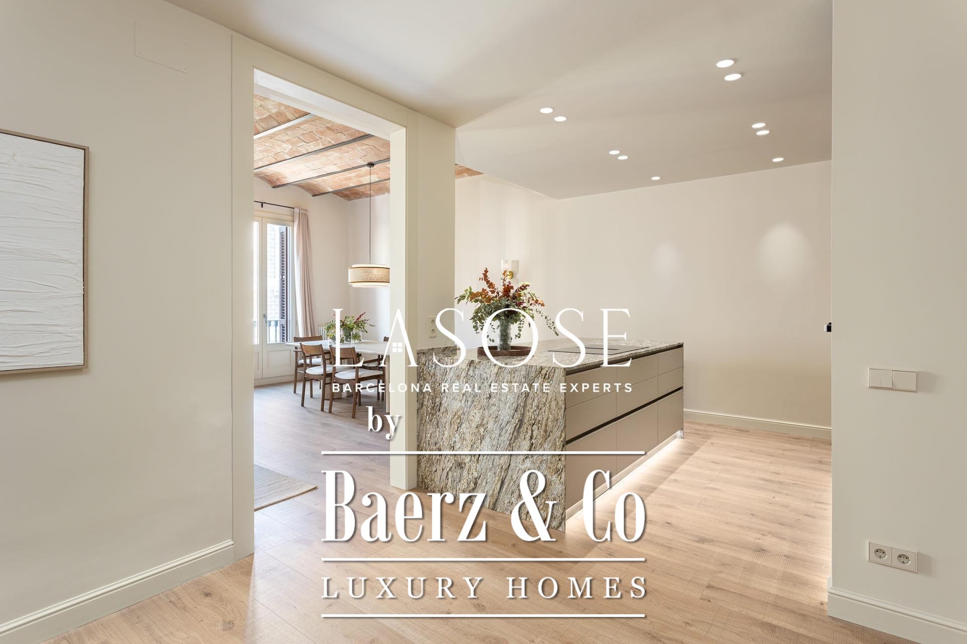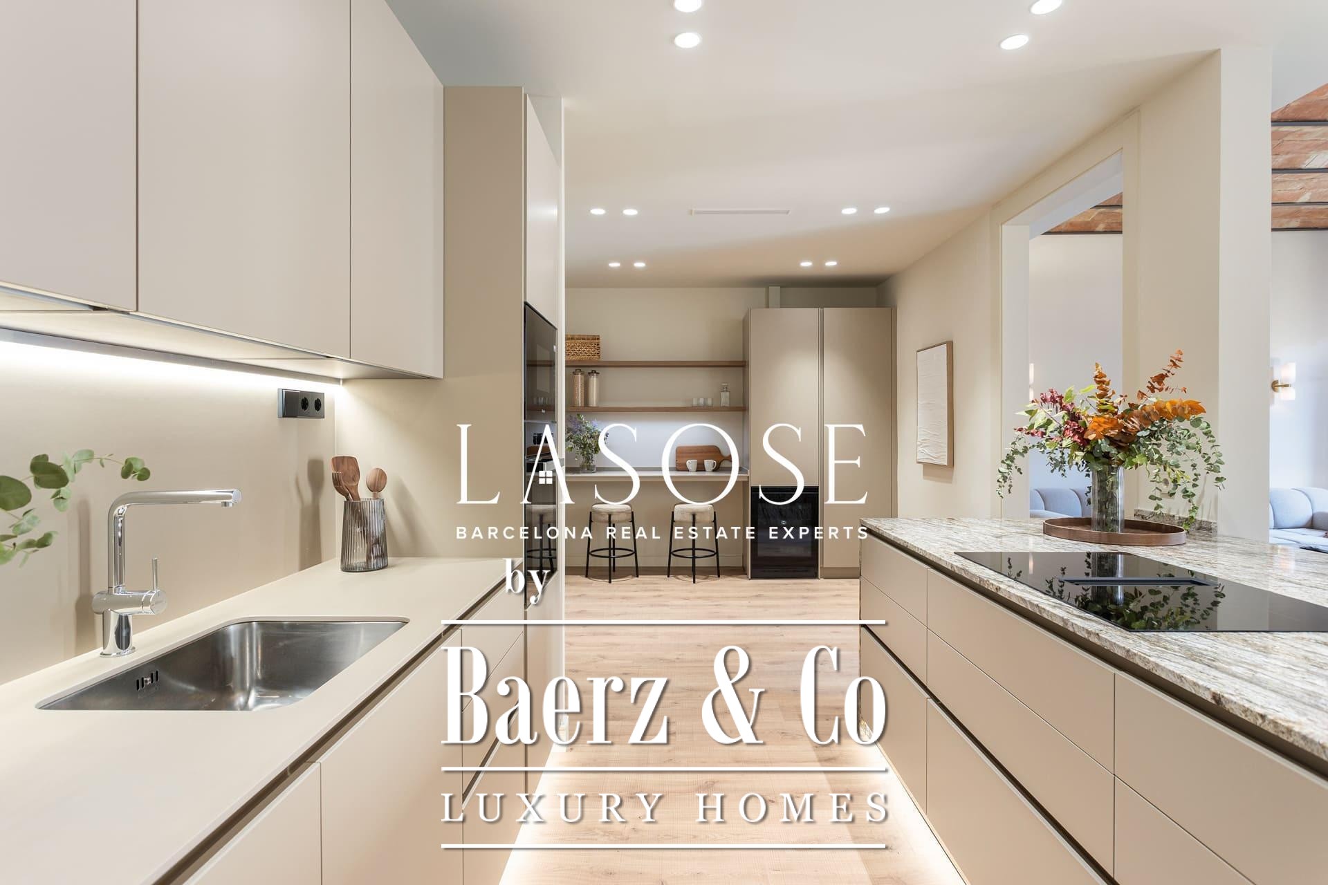 Een zorgvuldig uitgevoerde renovatie behoudt de imposante Catalaanse gewelfde plafonds en het authentieke metselwerk, wat zorgt voor warmte, historie en een zeldzame authenticiteit op de markt. De woon- en eetkamer lopen naadloos over in de exclusieve designkeuken, die is gecentreerd rond een royaal kookeiland; ideaal voor sociale bijeenkomsten en dagelijkse rituelen. Twee klassieke balkons laten het ochtendllicht vanuit het oosten binnenstromen en bieden uitzicht op de statige Roger de Llúria.