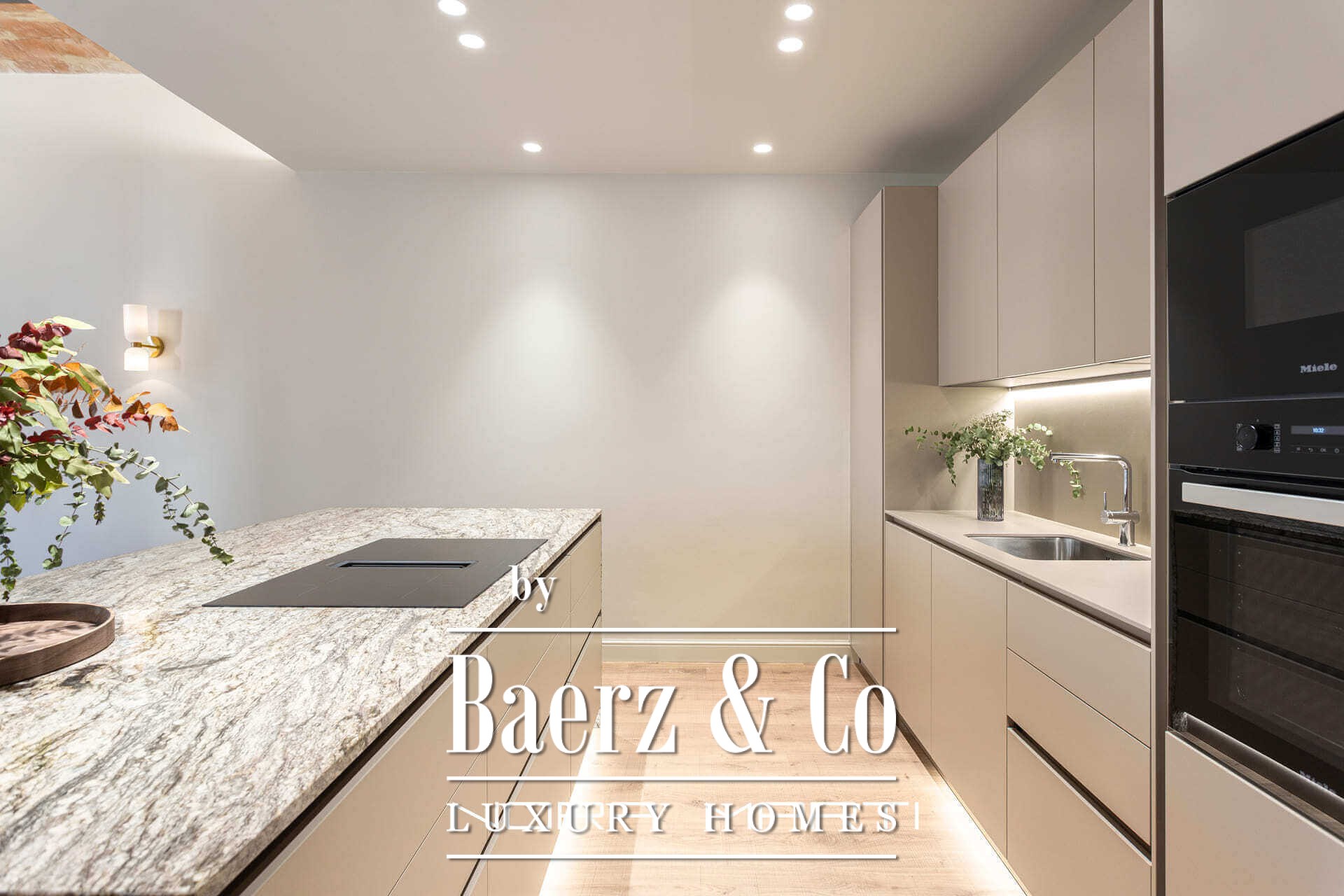 De ruime woonkamer en eetkamer, van meer dan 34 m², openen naar balkons waar het daglicht binnenvalt, waardoor de kern van de woning een uitnodigende sfeer krijgt. De keuken, ruim 22 m², is voorzien van een centraal kookeiland en een ontbijthoek; volledig geïntegreerd voor een soepele dagelijkse woonervaring.