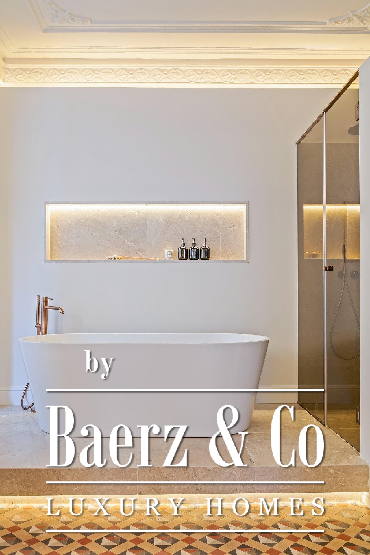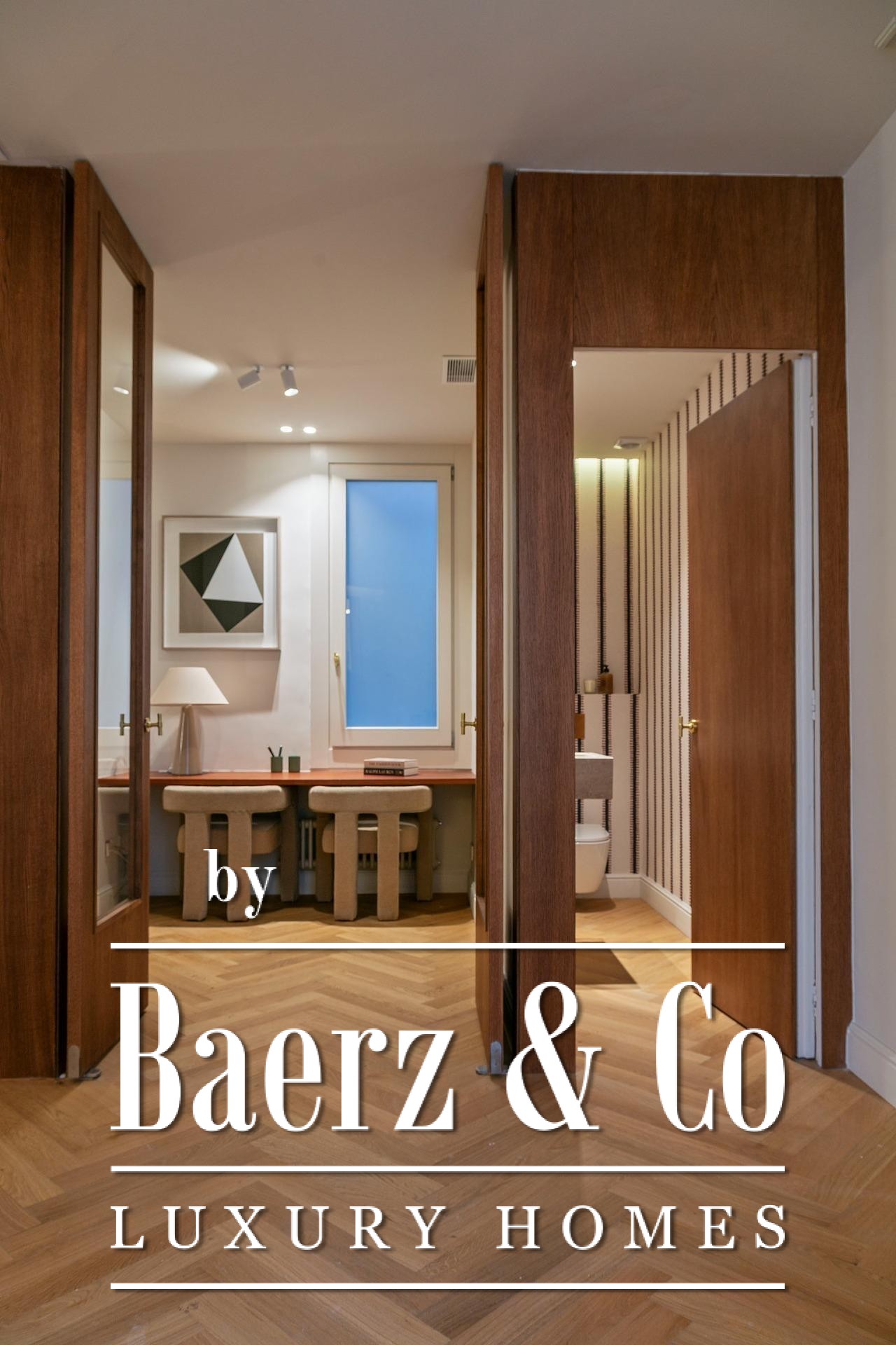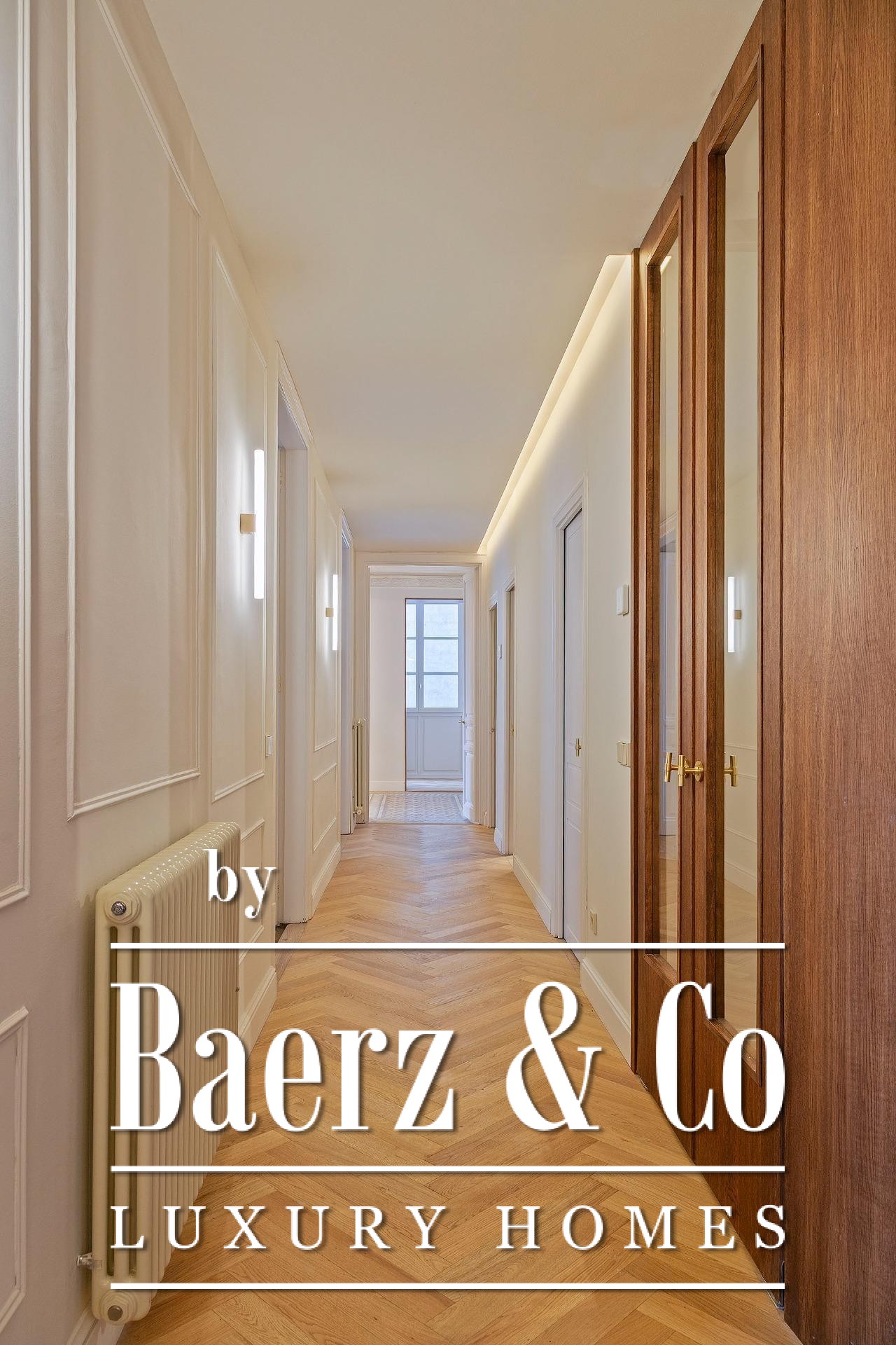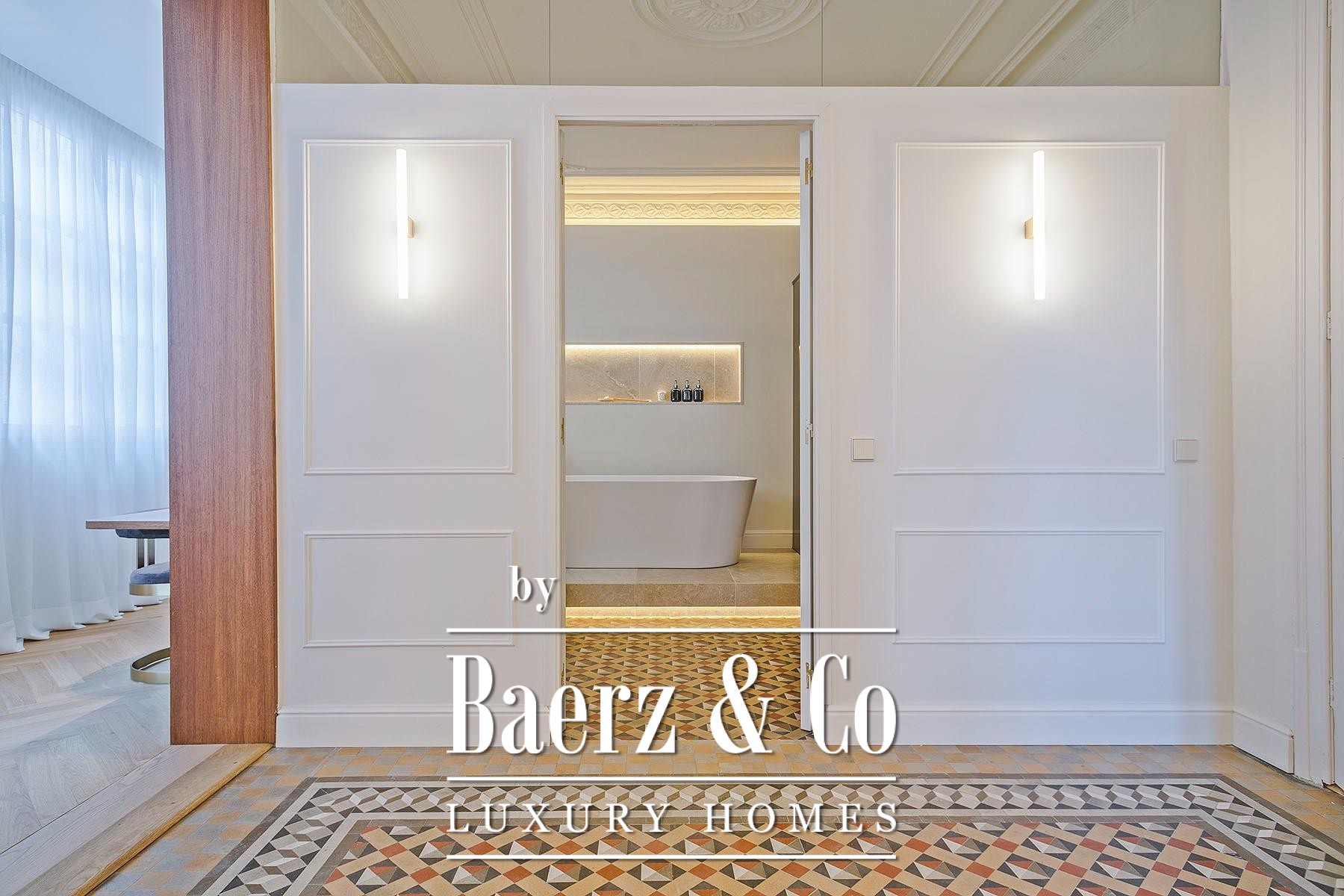 Een veelzijdige, zelfstandige werkkamer biedt mogelijkheden voor werken of terugtrekken, aangevuld met twee extra badkamers en een gastentoilet. De gerestaureerde originele hydraulische tegelvloeren en plafonds worden gecombineerd met visgraatparket in natuur-eiken en maatwerk wandpanelen, waardoor authenticiteit en elegante moderniteit samenkomen. Balkon, lift, ingebouwde kasten, geïntegreerde wasruimte en hoogwaardige verwarming maken dit tot een eigendom met blijvende allure.