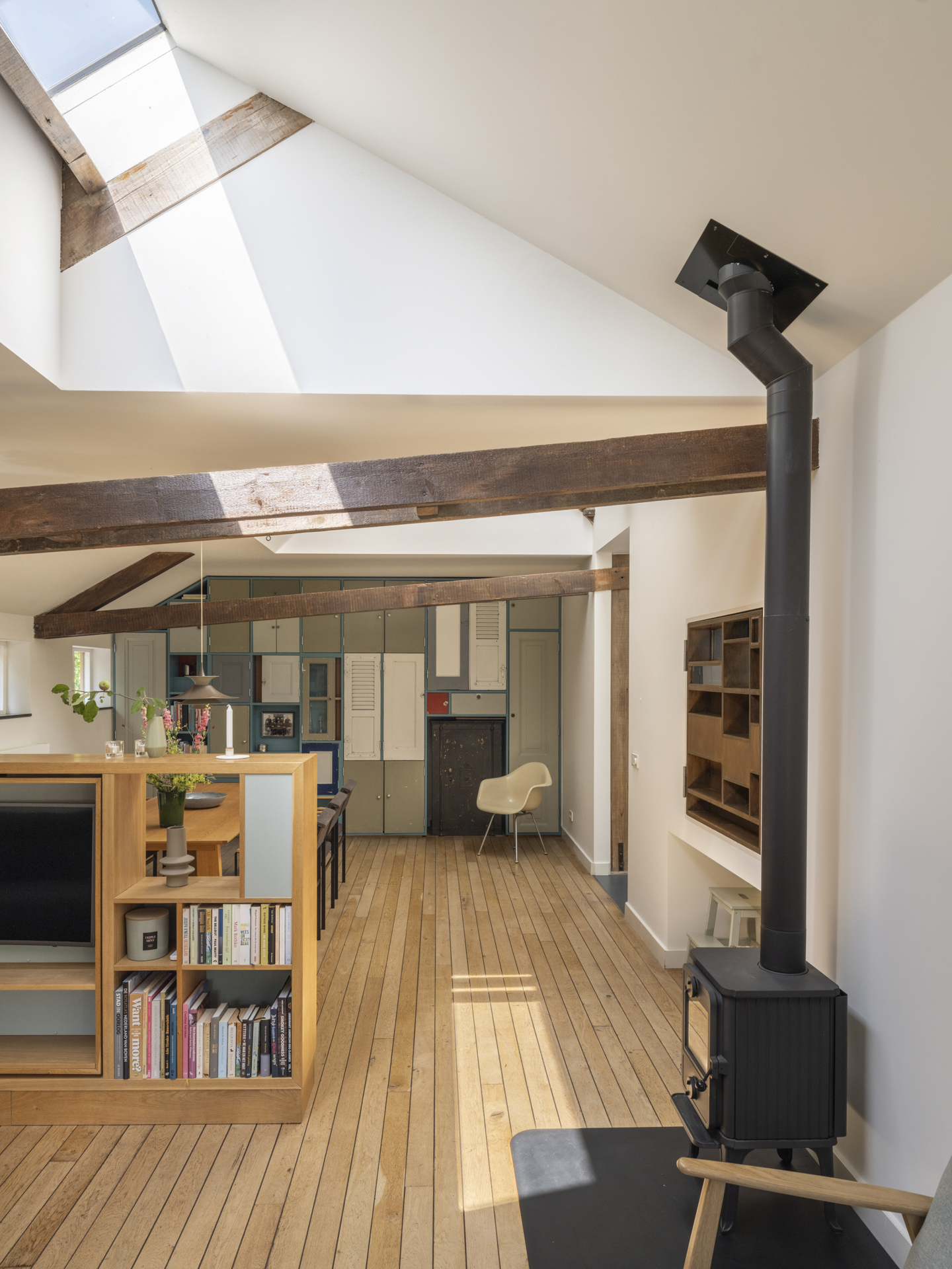 Onder leiding van architect Henri Borduin (borderarchitecture.com) is bij de verbouwing tot modern woonhuis bijzonder veel aandacht besteed aan details en lichtinval. Het oorspronkelijk karakter van de schuur is behouden gebleven, maar tegelijkertijd is deze getransformeerd tot een comfortabele, eigentijdse woning. Taps toelopende lichtkernen verbinden de ruimtes op de begane grond met het dak. Deze lichtkernen zijn zo geplaatst dat de bestaande draagstructuur en spanten een zichtbaar onderdeel van de woning vormen.