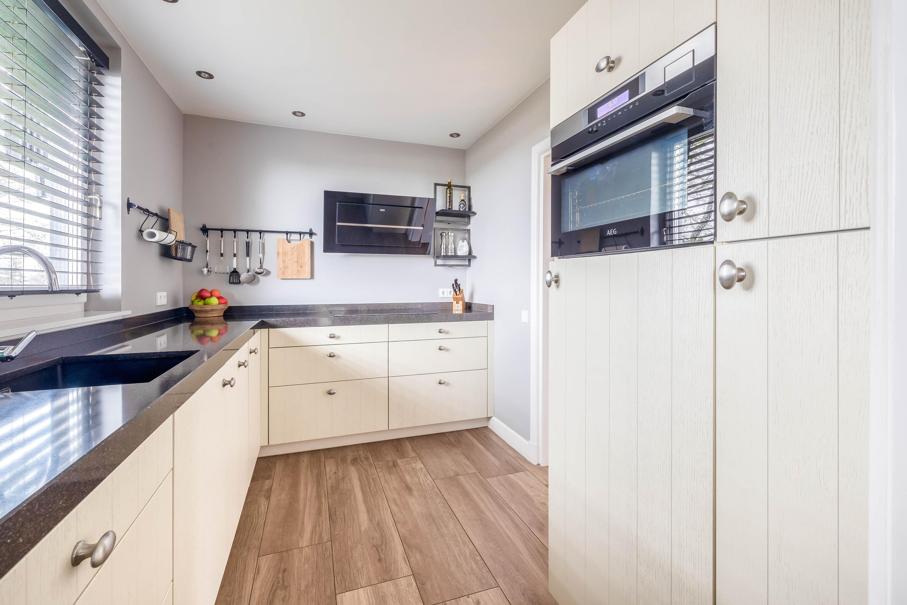 - Vloerverwarming in de woonkamer, keuken, wasruimte, hal en toilet op de begane grond.