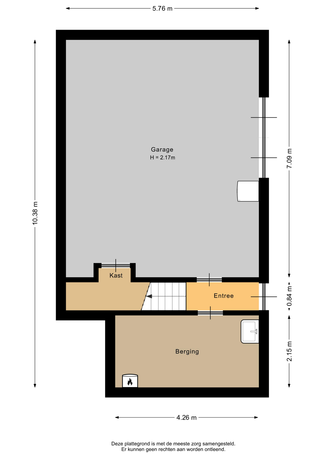 Het grote souterrain is voorzien van een grote garage (ca. 40m²), een ruime berging (ca. 9m²) met vernieuwde meterkast en een technische ruimte met de cv-ketel. Een loopdeur en openslaande deuren bieden toegang tot buiten.