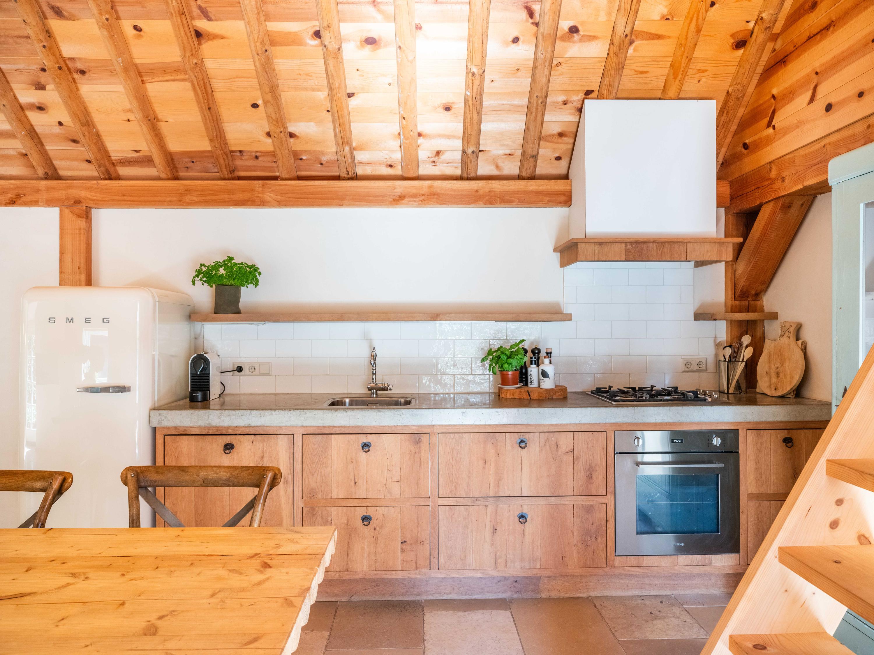 Aansluitend aan de keuken bevindt zich een bijkeuken met wasbak, kastruimte en deur naar buiten.