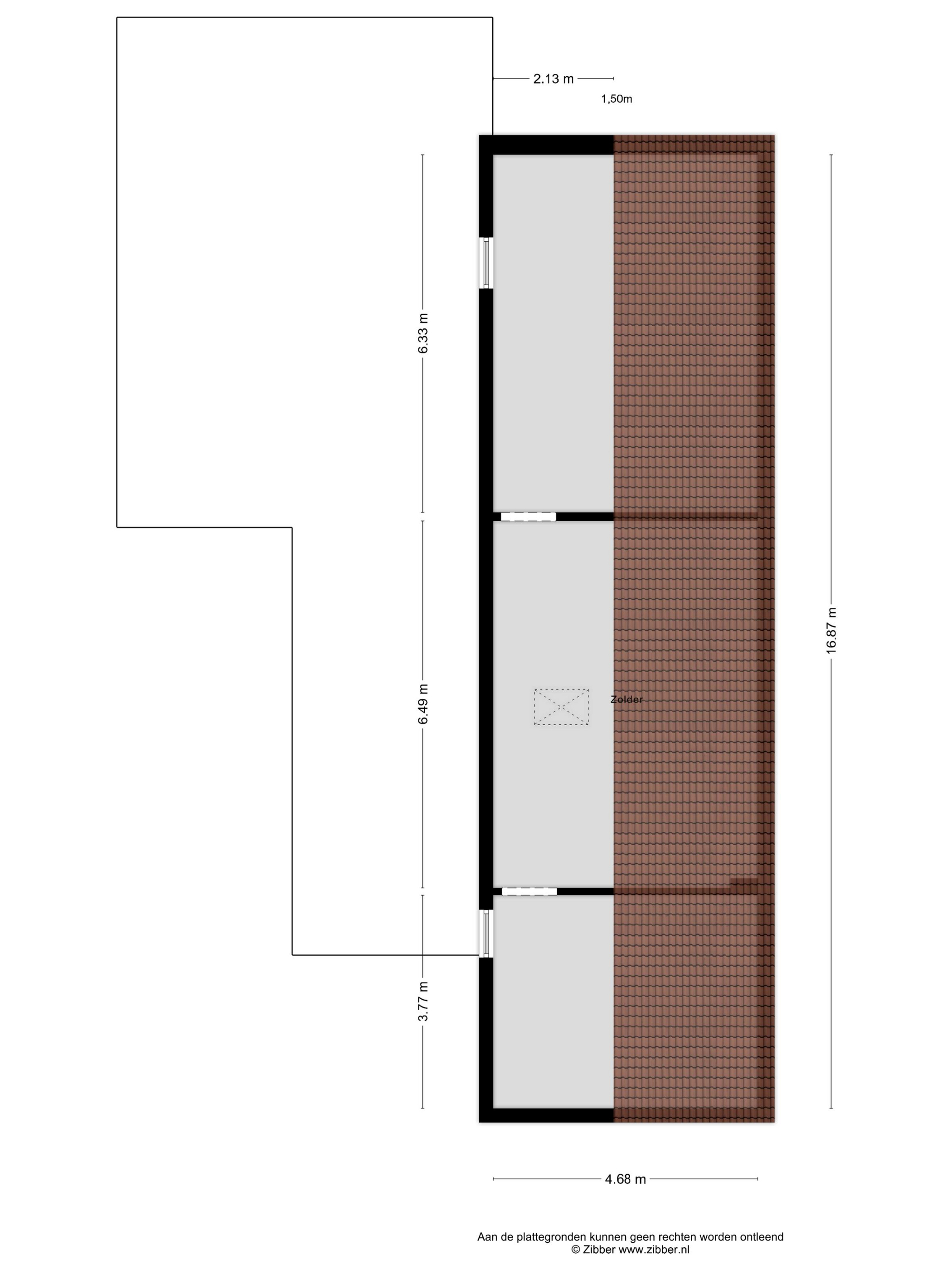 Eén kamer biedt toegang tot de royale zolder waar bij plaatsing van een vaste trap nog diverse kamers te creëren zijn. Momenteel is de zolder alleen via een vlizotrap te bereiken.