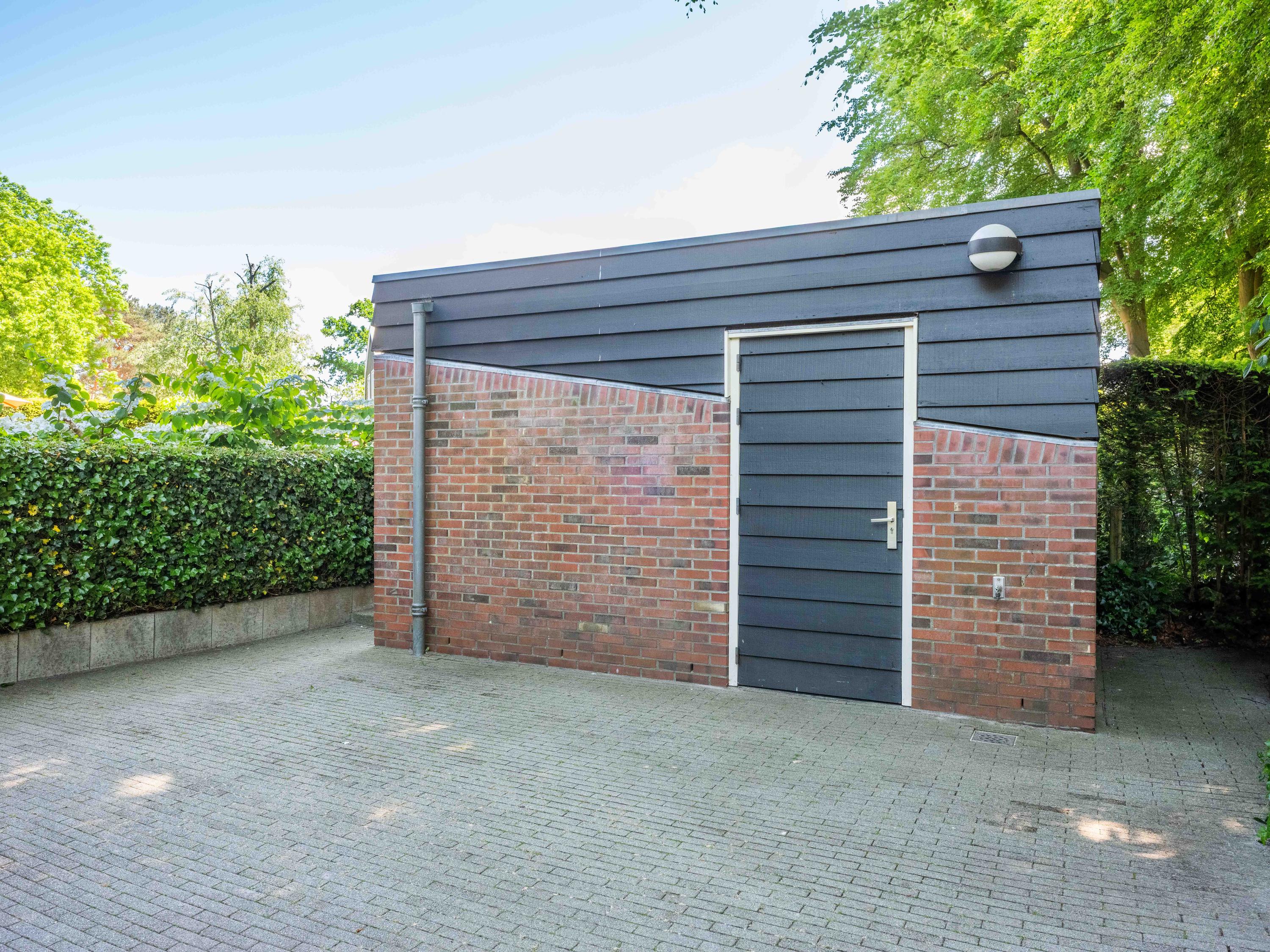 Aan de andere zijde van het perceel staat een ruime garage, ook deze is volledig geïsoleerd en voorzien van een toilet en een elektrische roldeur. De garage is via een opgang met elektrisch hek aan de Broekbeeklaan te bereiken.