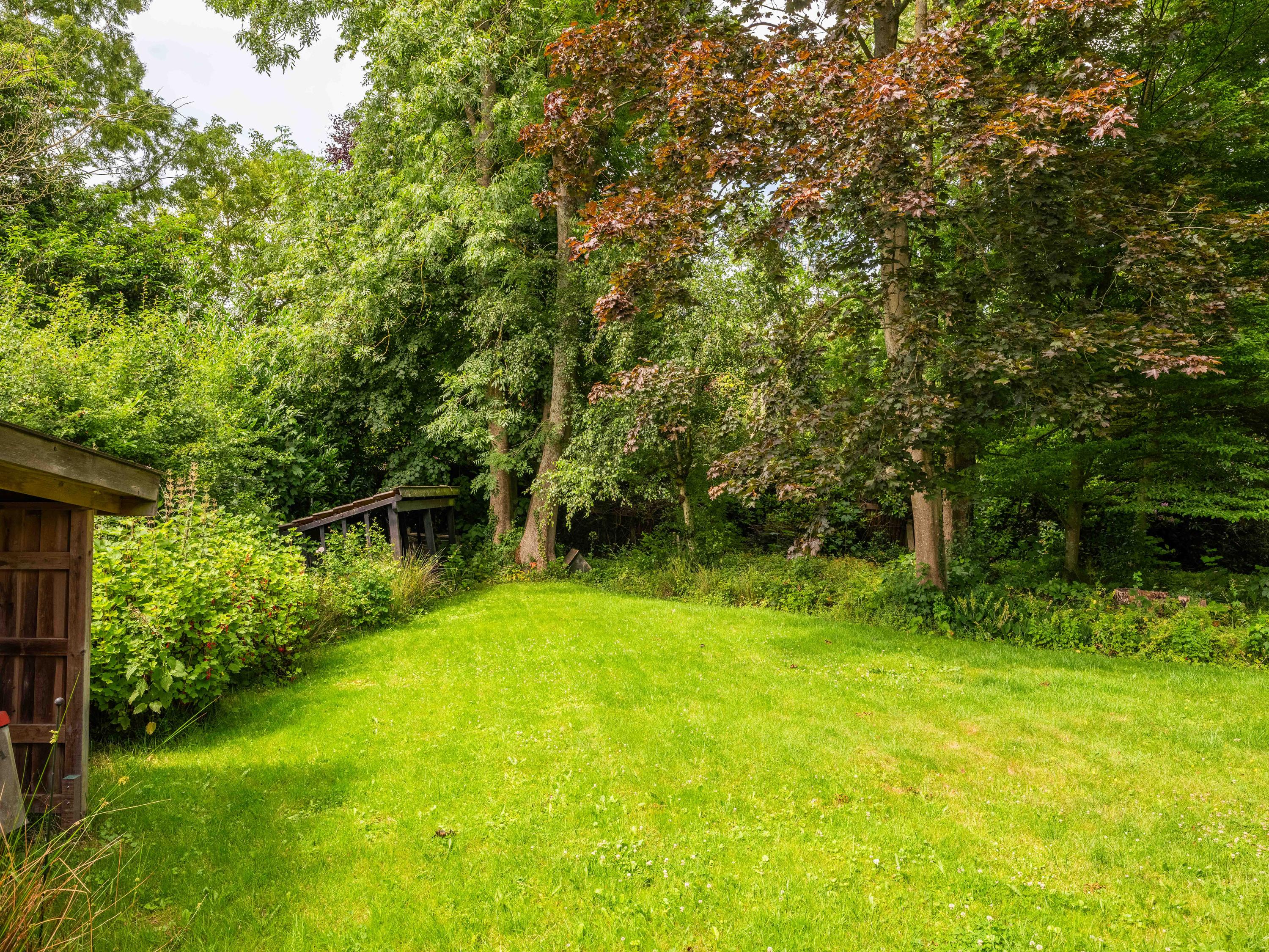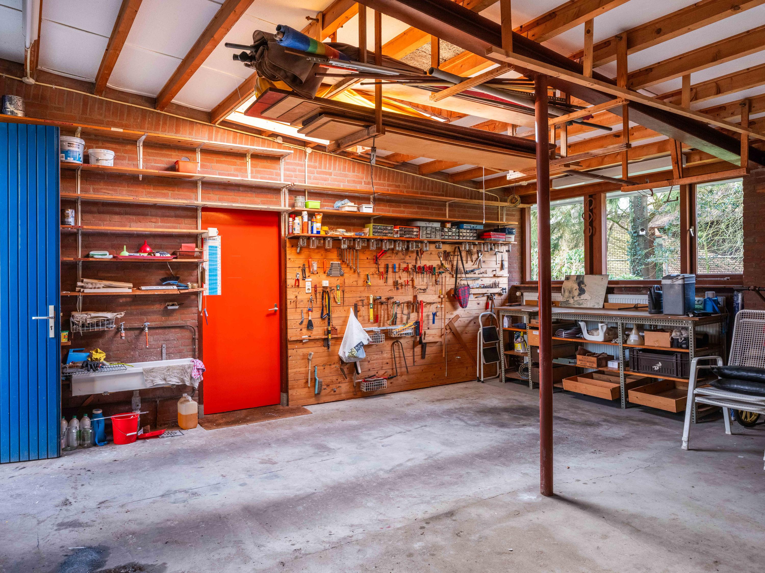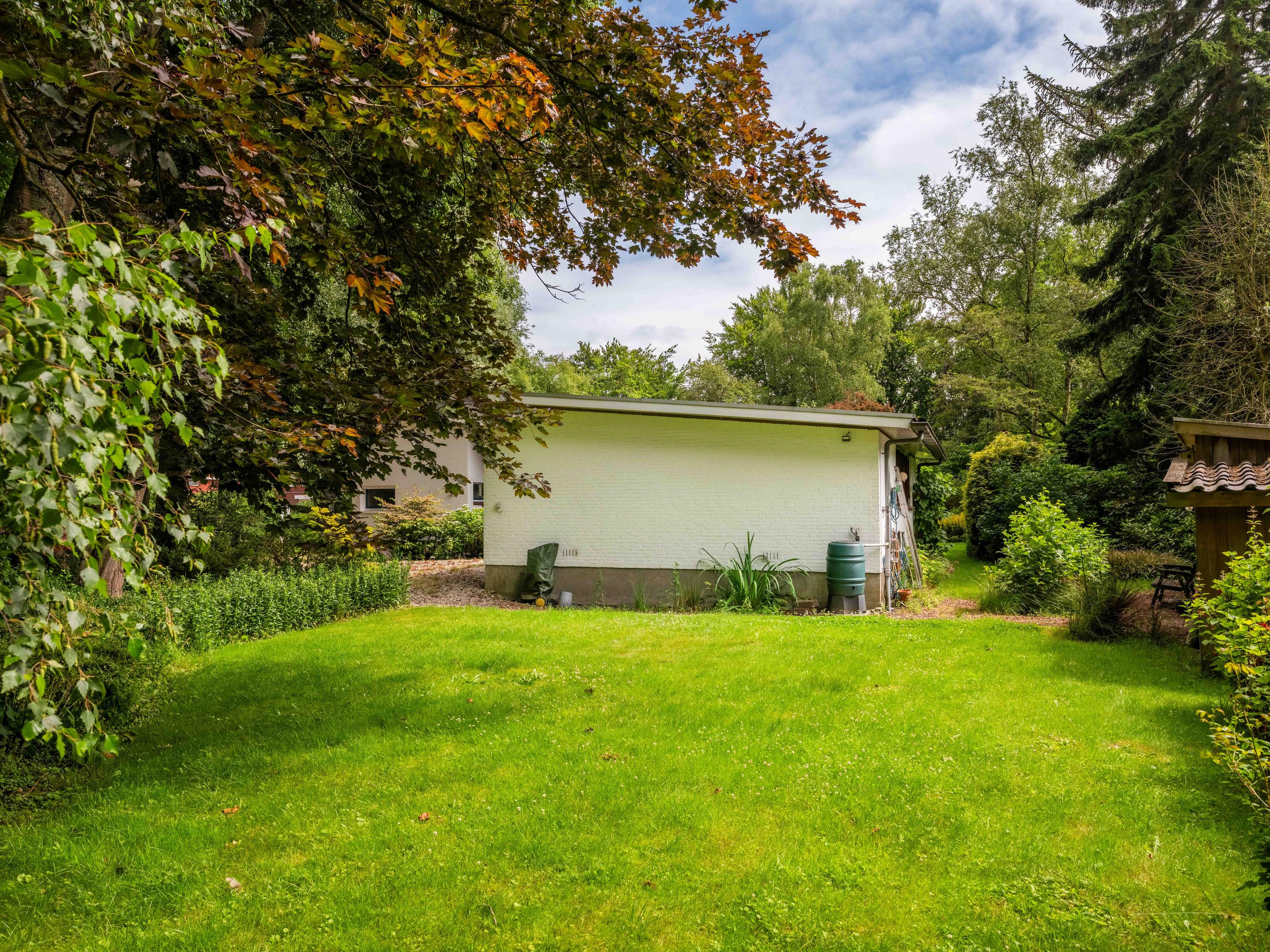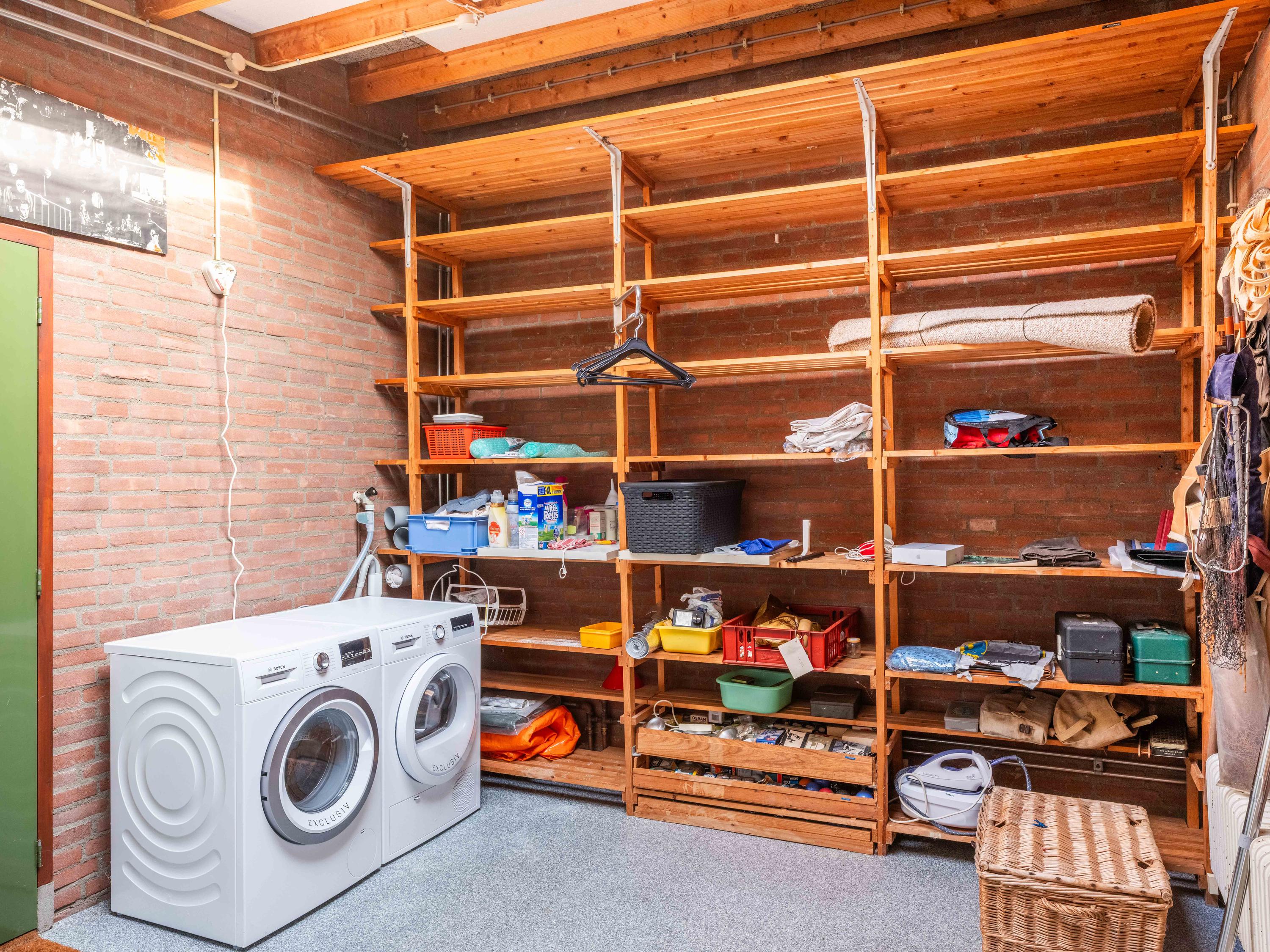 De woning biedt extra's zoals een grote aangebouwde berging/bijkeuken met o.a. de wasmachineaansluiting en een dubbele garage. Verder is er in de weelderige tuin nog een houten berging voor extra opbergruimte. Op de oprit kunnen met gemak meerdere auto's worden geparkeerd.