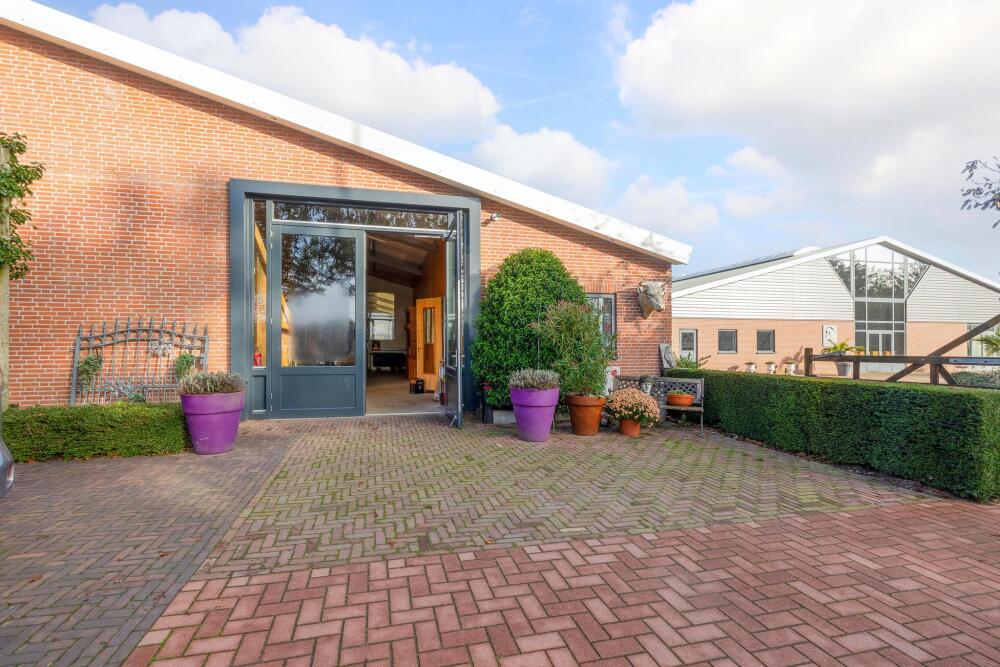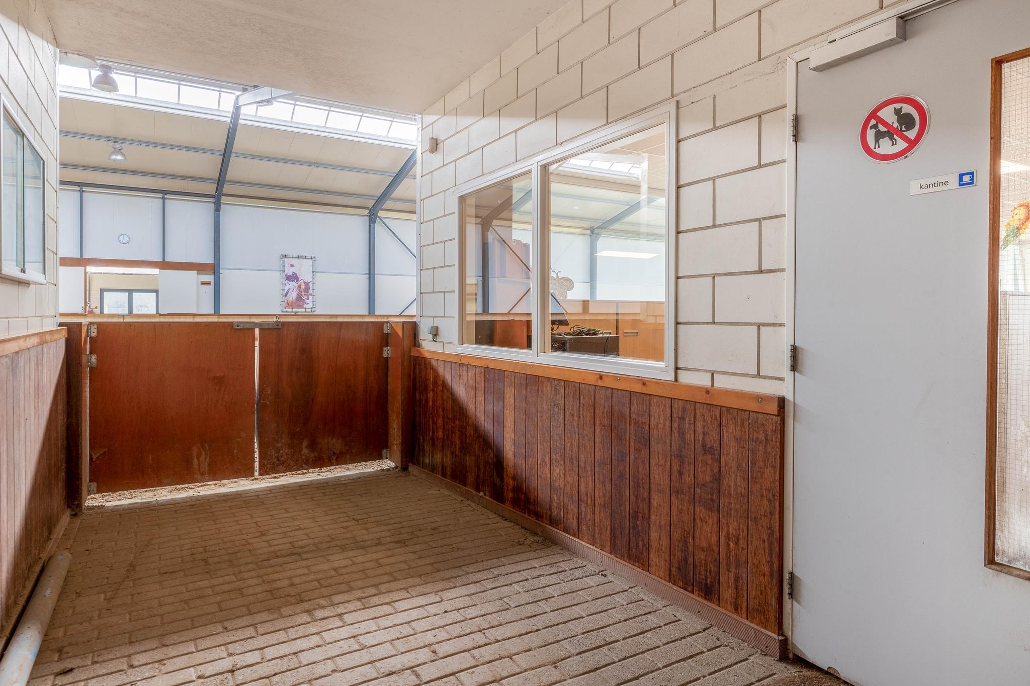 De hippische accommodatie bestaat o.a. uit een vrijstaande rijhal met een binnenpiste (ca. 20mtr. x 60mtr), een paardenstal met een ontvangstgedeelte en in totaal 31 paardenboxen verdeeld over 2 stalgedeeltes, een kantoorruimte, werkplaats en aangrenzend een appartement.