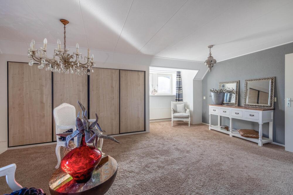 De royale overloop biedt toegang tot 3 ruime slaapkamers en een badkamer. Slaapkamer I is voorzien van vloerbedekking, spuitwerk wanden en een spuitwerk plafond. Vanuit deze kamer is er middels een vaste trap toegang tot de bergzolder. De ruimte is verder voorzien van een praktische inbouwkast. Slaapkamer II is eveneens afgewerkt met vloerbedekking, spuitwerk wanden en een spuitwerk plafond. Vaste schuifkasten zorgen voor opbergruimte. De ruime badkamer is geheel betegeld en verder uitgerust met een ligbad, inloopdouche, wastafel met meubel en een designradiator. De toiletruimte is geheel betegeld en voorzien van een zwevend toilet. De zeer ruime ouderslaapkamer was voorheen verdeeld in 2 slaapkamers. Dit is relatief eenvoudig weer te realiseren. De kamer is afgewerkt met vloerbedekking, spachtelputz wanden en een spuitwerk plafond. Een praktische vaste kast en schuifkasten zorgen voor opbergruimte. Vele raampartijen zorgen voor veel natuurlijke lichtinval.