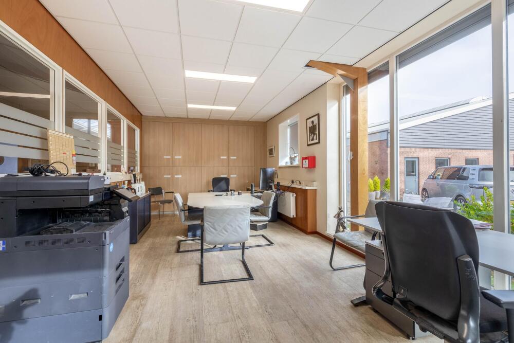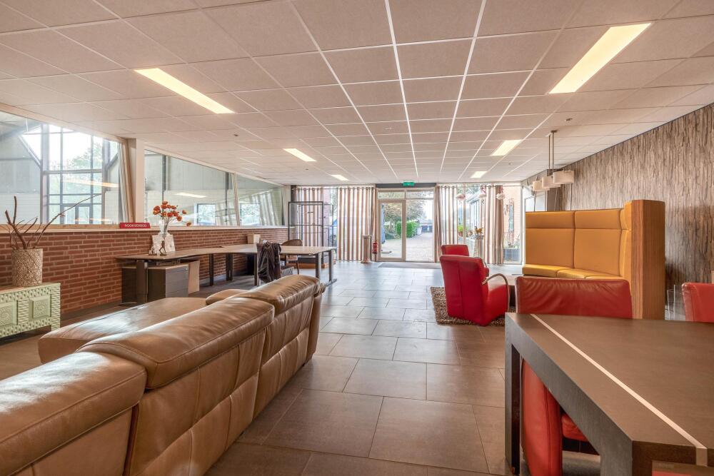 Aan de voorzijde van het gebouw is een kantoorruimte met berging, werkplaats en multifunctionele ruimte en een appartement gelegen. De kantoorruimte is voorzien van een PVC-vloer, stucwerk wanden en een systeemplafond. Tevens is er airco aanwezig. Grote raampartijen zorgen voor veel natuurlijke lichtinval en praktisch uitzicht op de toegangspoort en parkeerplaats. De berging is uitgerust met de beregeningspomp ten behoeve van de buienpiste, weilanden en de tuin. Ook is hier de omvormer voor de zonnepanelen (81 stuks) gesitueerd. De werkplaats met betonnen vloer is uitgerust met vaste kasten en de aansluitingen voor de wasapparatuur. Een vaste trap biedt toegang tot de zolderruimte. De multifunctionele ruimte, nu in gebruik als fitnessruimte is voorzien van een PVC-vloer, deels metselwerk / deels stucwerk wanden en een systeemplafond. De aansluiting voor de CV-combiketel ten behoeve van de fitnessruimte en het appartement zijn hier gesitueerd. Vanuit deze ruimte is er toegang tot het appartement en een vaste trap biedt toegang tot de zolderruimte.
