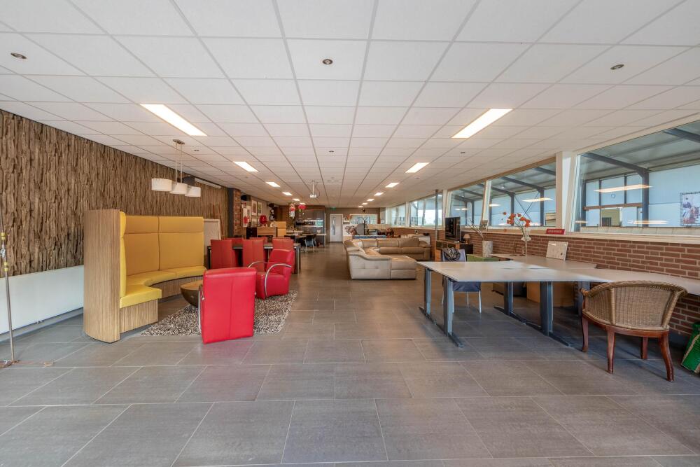 Het stalgedeelte aan de linkerzijde is uitgerust met 16 paardenboxen. Deze boxen zijn voorzien van deels hardhouten / deels gepoedercoate en deels gegalvaniseerde voorwanden. De tussenwanden zijn van metselwerk en deels bezet. De deuren de voorwanden zijn draaibaar. 2 boxen zijn voorzien van deels kunststof / deels gegalvaniseerde voor- en tussenwanden en schuifdeuren. Er is tevens 1 ponybox aanwezig. Er zijn 2 wasplaatsen en een solarium aanwezig. De wasplaatsen zijn uitgerust met een warm- en koudwatervoorziening. Vanuit het stalgedeelte is er toegang tot een hal waar de 2 zadelkamers gesitueerd zijn. Vanuit deze hal is er eveneens toegang tot de ontvangstruimte en de binnenpiste. De royale ontvangstruimte is afgewerkt met een tegelvloer, deels metselwerk/deels stucwerk wanden en een systeemplafond. Er is een toiletgroep gesitueerd bestaande uit een toiletruimte, invalidetoilet en een portaal met 2 wastafels. Tevens is er een complete keuken aanwezig. De keuken is ingericht met een oven, combimagnetron, vaatwasser, inbouw koffiezetapparaat, een spoelbak en een kookplaat. n de ontvangstruimte is de meterkast aanwezig. Hier is de opstelling voor de CV-combiketel gesitueerd. Ook beschikt de ruimte over een alarminstallatie. Vanuit de ontvangstruimte is er een fraai uitzicht op de binnenpiste. Openslaande deuren bieden toegang tot het erf. De naastgelegen binnenpiste (ca. 20mtr. x 60mtr.) is uitgerust met een eb/vloedbodem en een hardhouten bakrand (Horsmans). Een lichtkoepel in de nok en raampartijen in de kopgevel zorgen voor natuurlijke lichtinval, ook is er ventilatie aanwezig. Verder is de piste uitgerust met een spiegelwand. Een roldeur aan de achtergevel zorgt voor toegang tot het erf. Vanuit de binnenpiste is er toegang tot het stalgedeelte aan de rechterzijde. Dit stalgedeelte beschikt over 13 paardenboxen. Deze boxen (ca 4mtr. x 3mtr.) zijn voorzien van deels gepoedercoate / deels gegalvaniseerde en draaibare deuren. Ook zijn de boxen voorzien van een buitenluik. Tevens is hier een zadelkamer, wasplaats en een solarium aanwezig. Vanuit dit stalgedeelte is er toegang tot een kantine. Deze kantine is afgewerkt met een laminaatvloer en een systeemplafond. De kantine beschikt over een aparte CV-combiketel. Openslaande deuren aan de achtergevel zorgen voor toegang tot het erf.