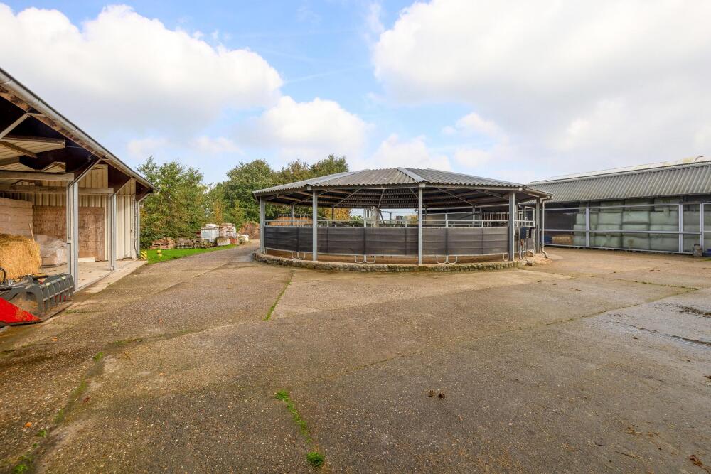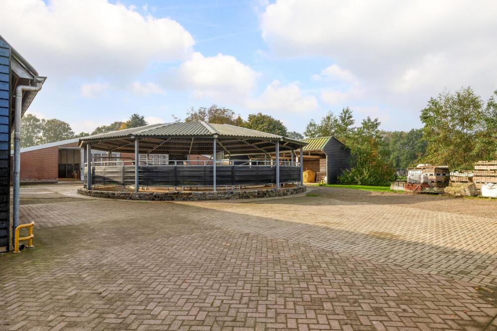 De overdekte stapmolen (Molenkoning) is geschikt voor 4 paarden en is voorzien van een beklinkerde bodem met zand en een omheining van windbreekgaas. Het dak is bedekt met golfplaten. De vrijstaande schuur is opgetrokken uit metselwerk gevels met stalen spanten en een damwand dak. De schuur is verder uitgerust met een glazen voorwand /windscherm en een betonnen vloer. Er is krachtstroom aanwezig. Deze schuur is ideaal voor de opslag van hooi/stro. De mestvaalt is voorzien van een betonnen vloer en wanden. De paddocks (4 stuks) gelegen bij het weiland zijn met hout omheind.