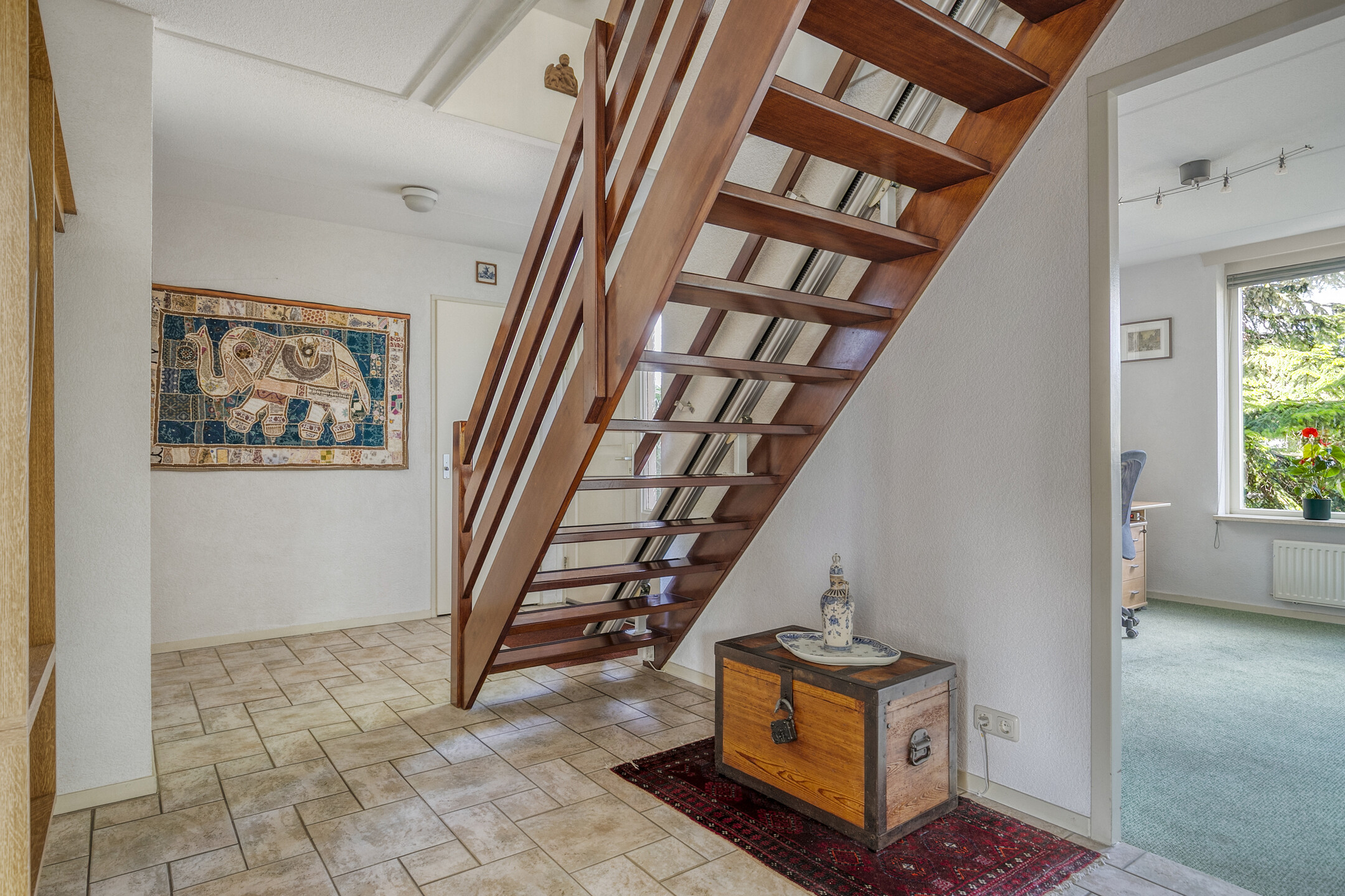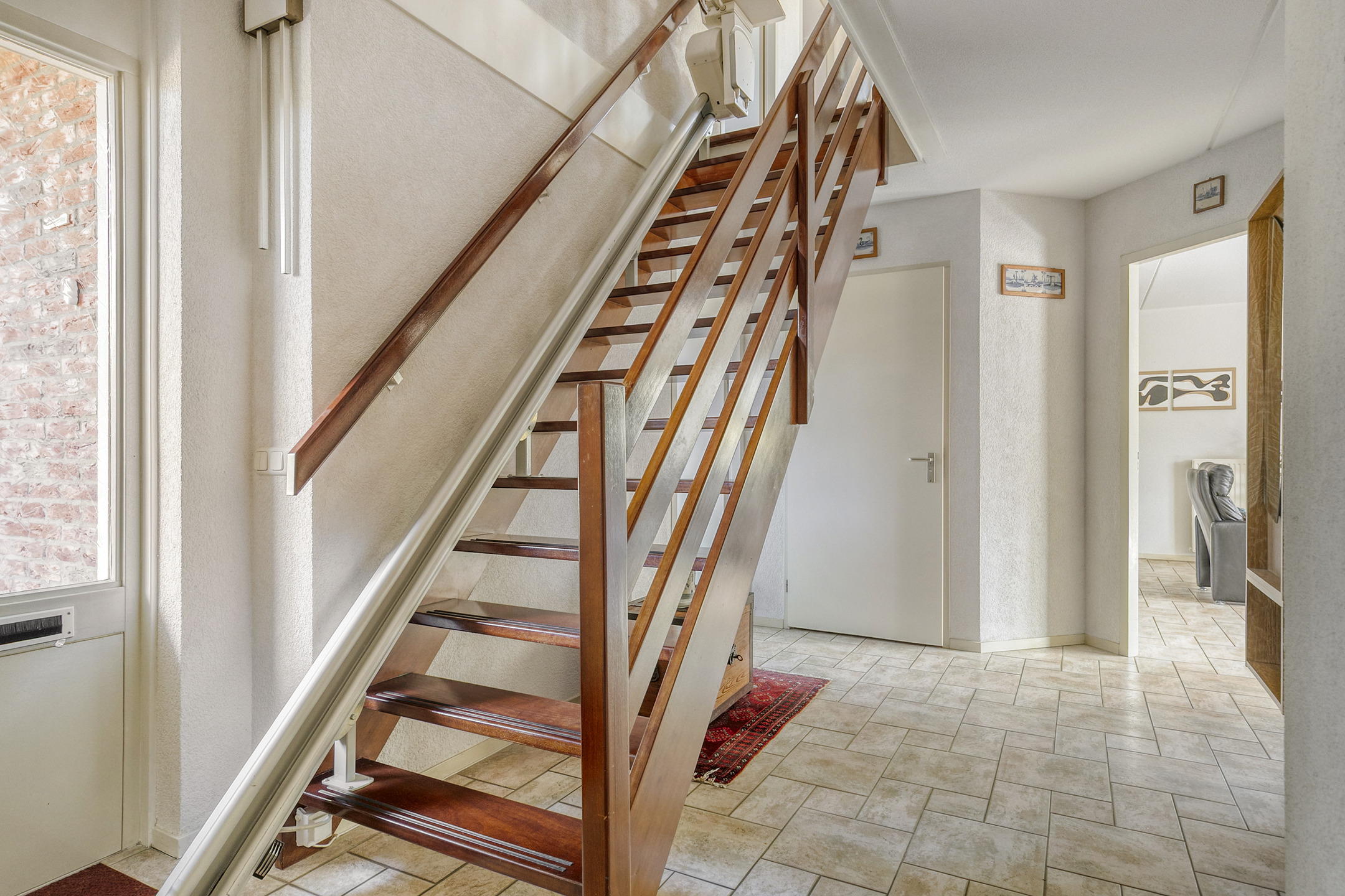 Entree/hal met meterkast, toilet, toegang tot de garage, trapopgang naar de eerste verdieping en toegang tot de woonkamer en werkkamer.
