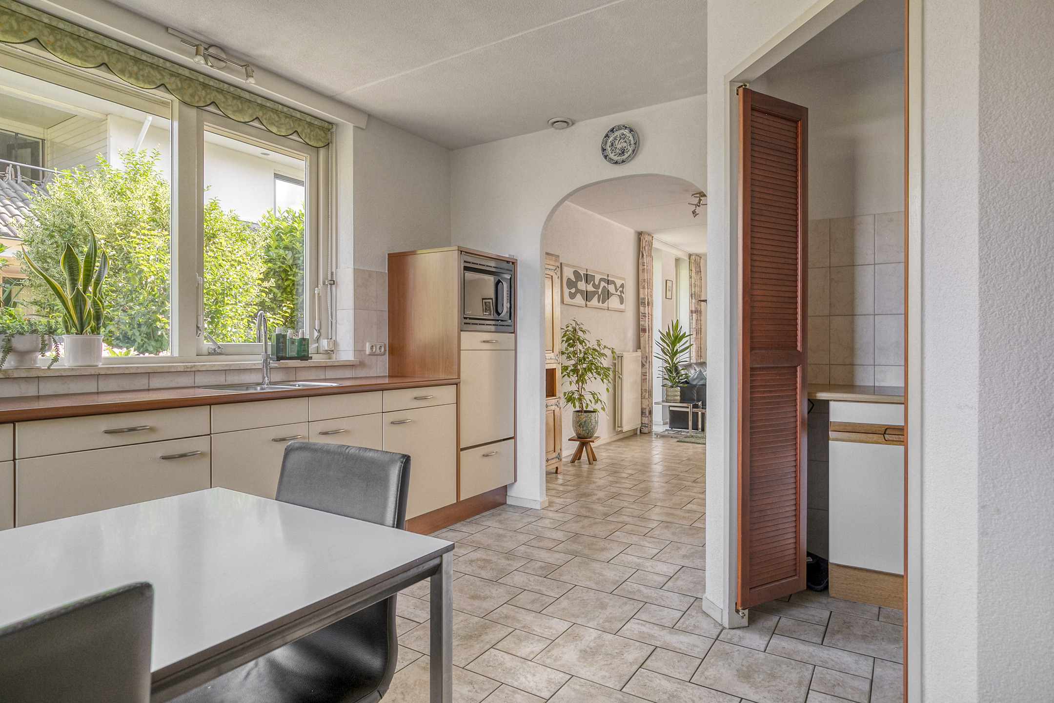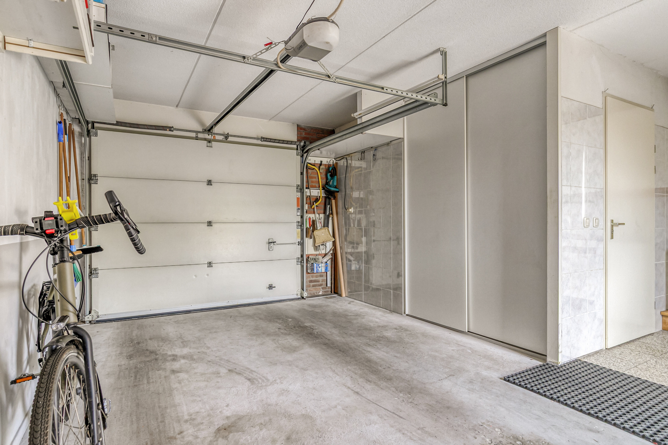 De garage is uitgerust met een elektrisch bedienbare deur, vaste kasten en een aansluiting voor een wasmachine. Vanuit de garage is er toegang tot een praktische bijkeuken met wastafel.
