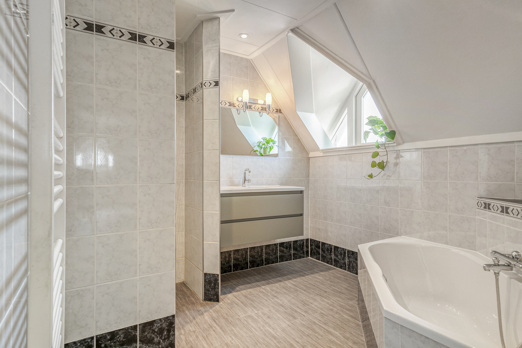 De ruime badkamer is uitgerust met ligbad, douche, handdoekradiator en een wastafel met meubel. Op deze verdieping is tevens een separaat tweede toilet aanwezig.