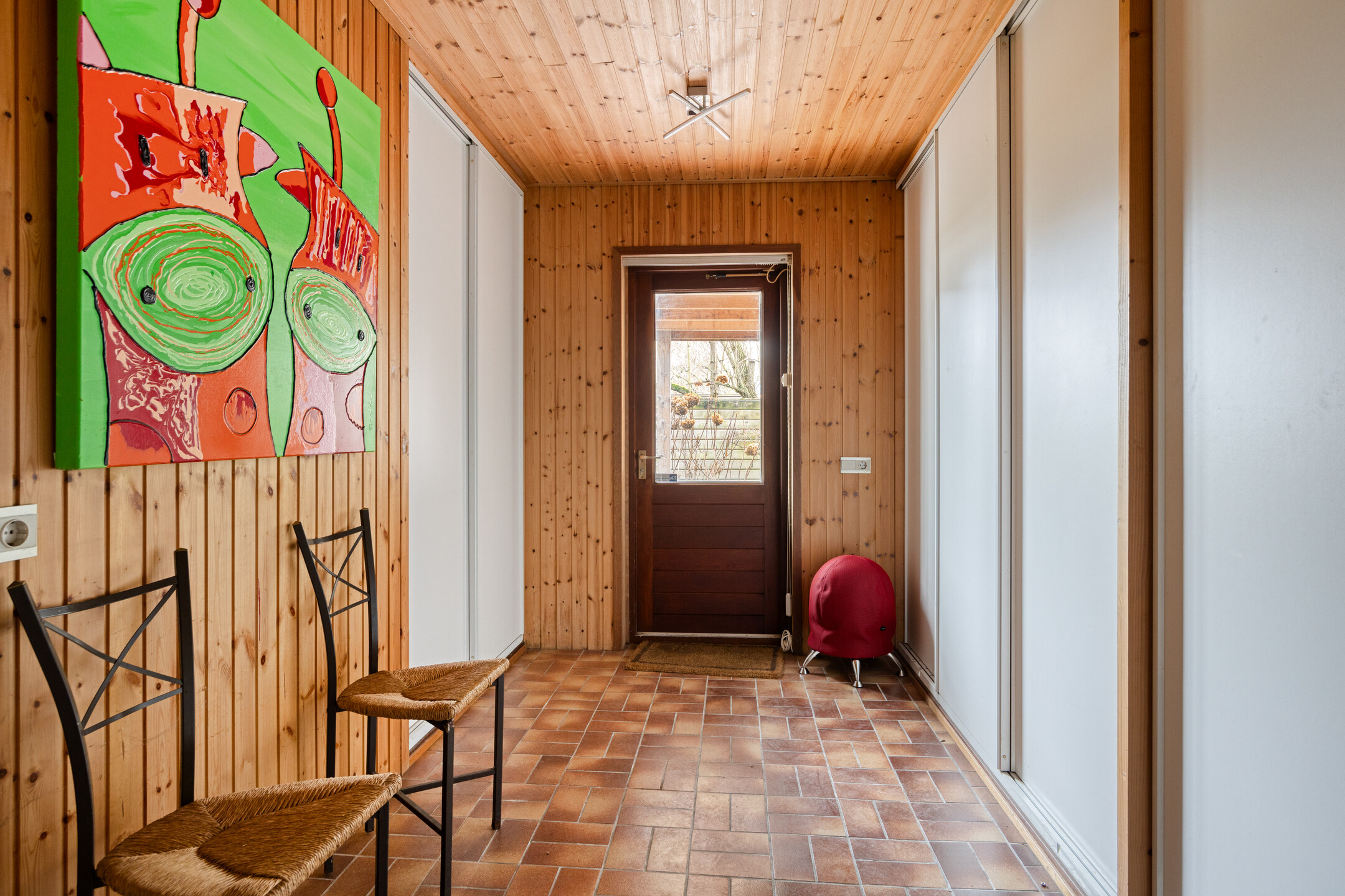 Aan de vierde slaapkamer grenst een praktische berging met toegang tot de tuin.