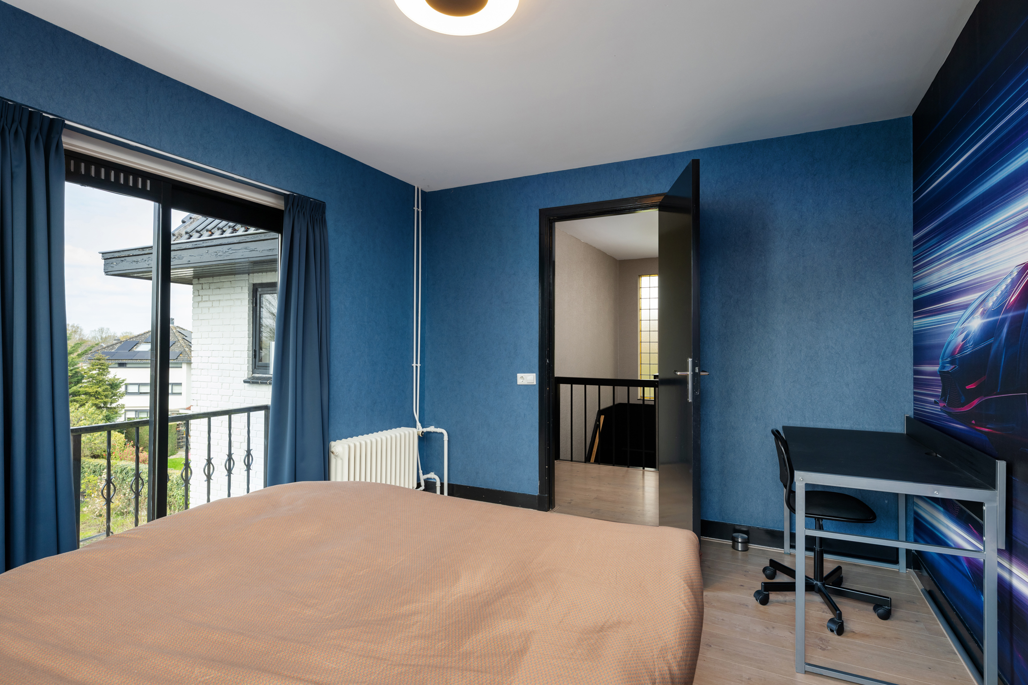 Slaapkamer 4 (achterzijde) met vaste kasten en toegang tot het balkon