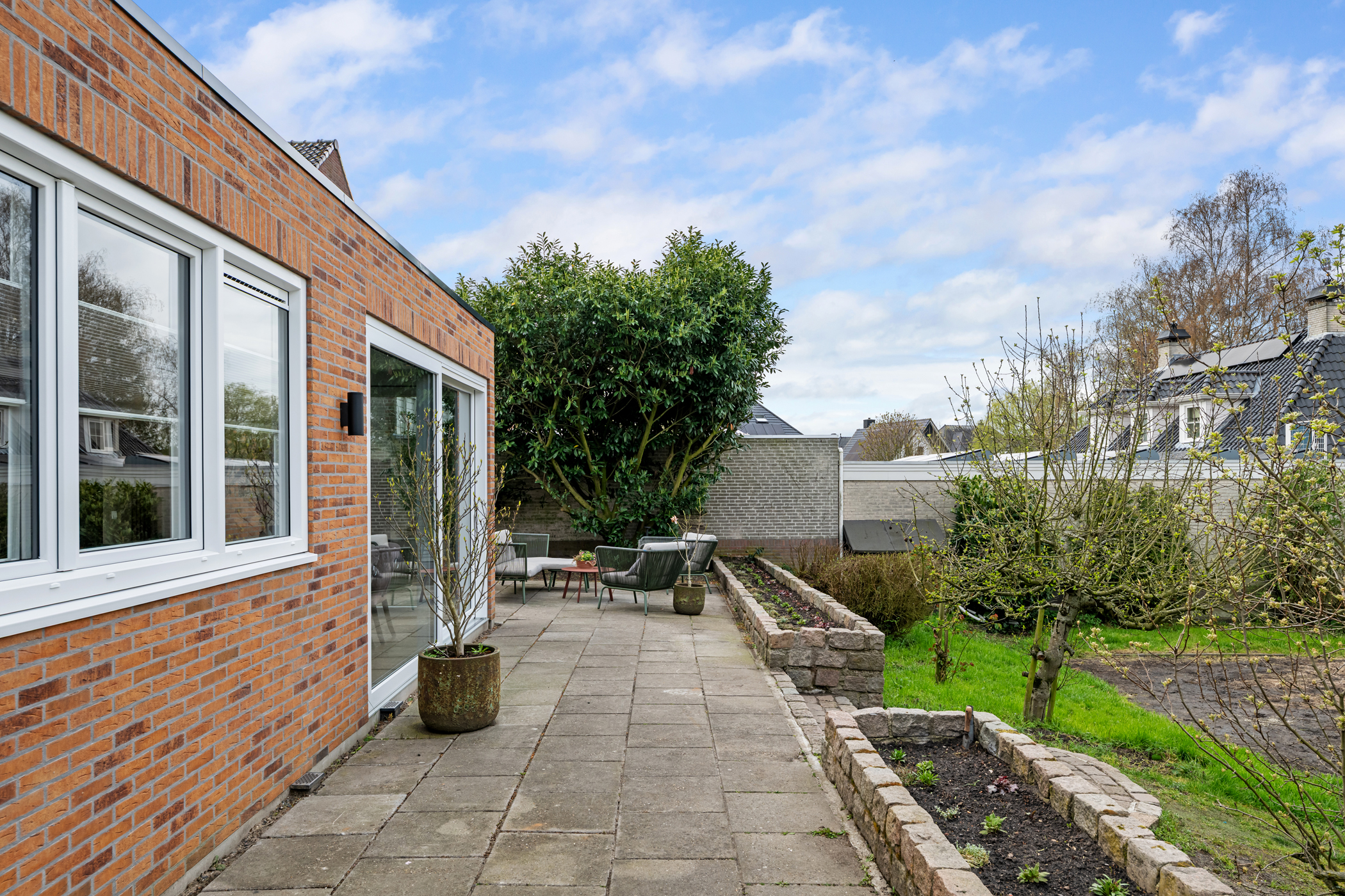Via de schuifpui heb je direct toegang tot de tuin.