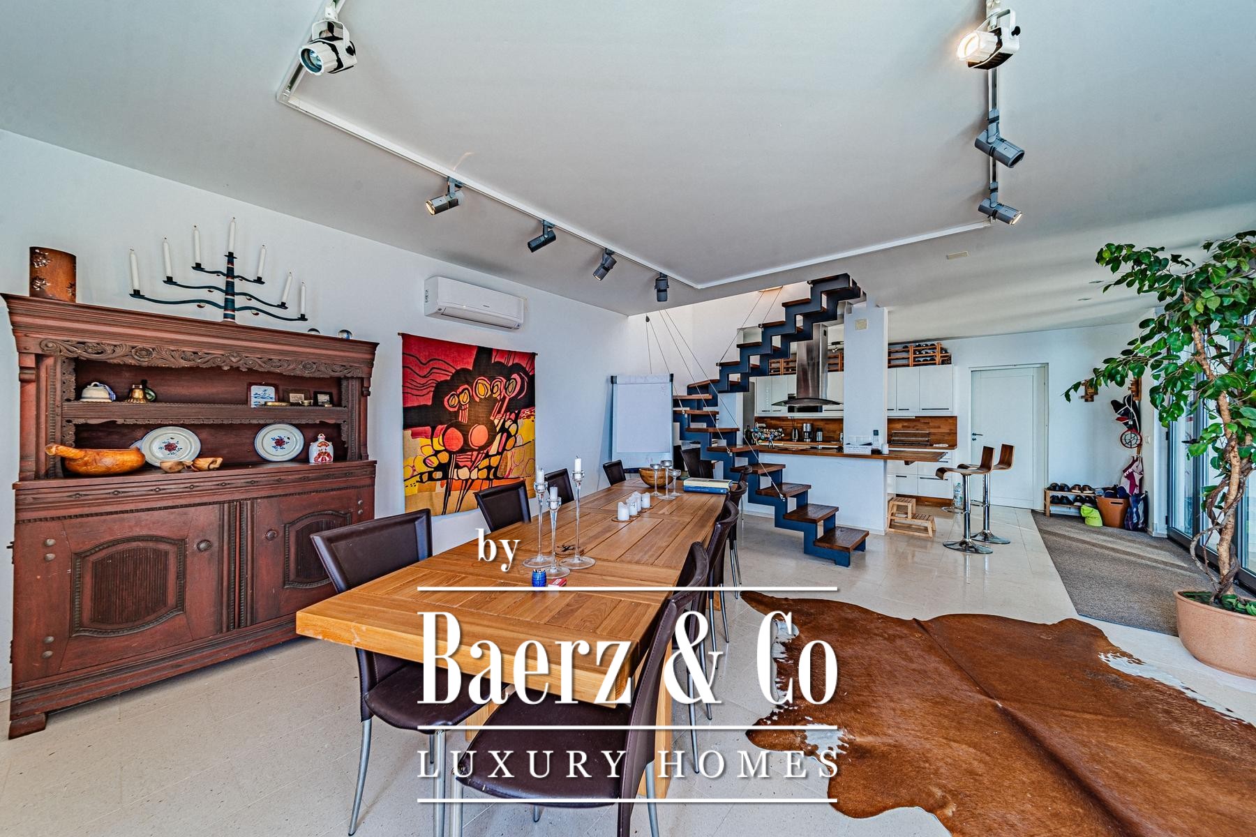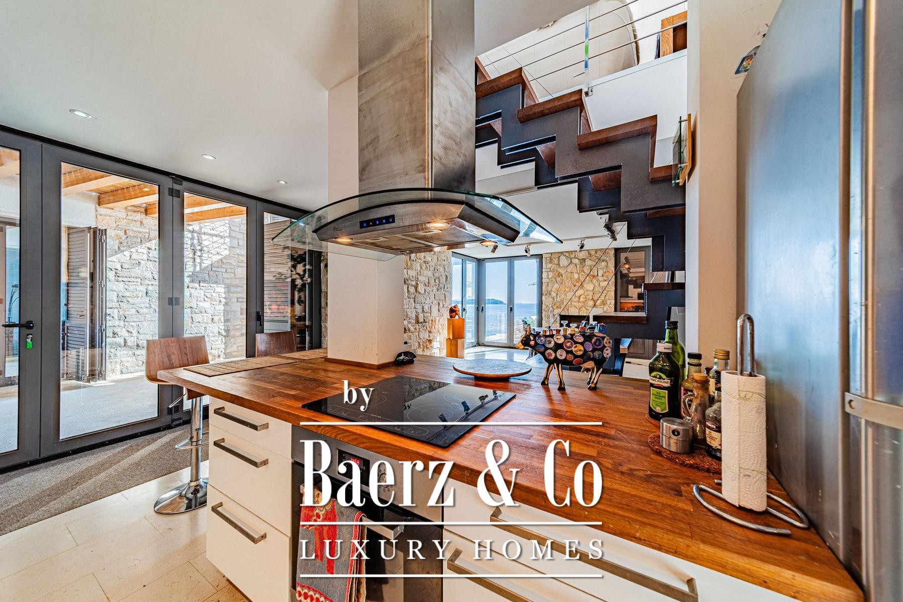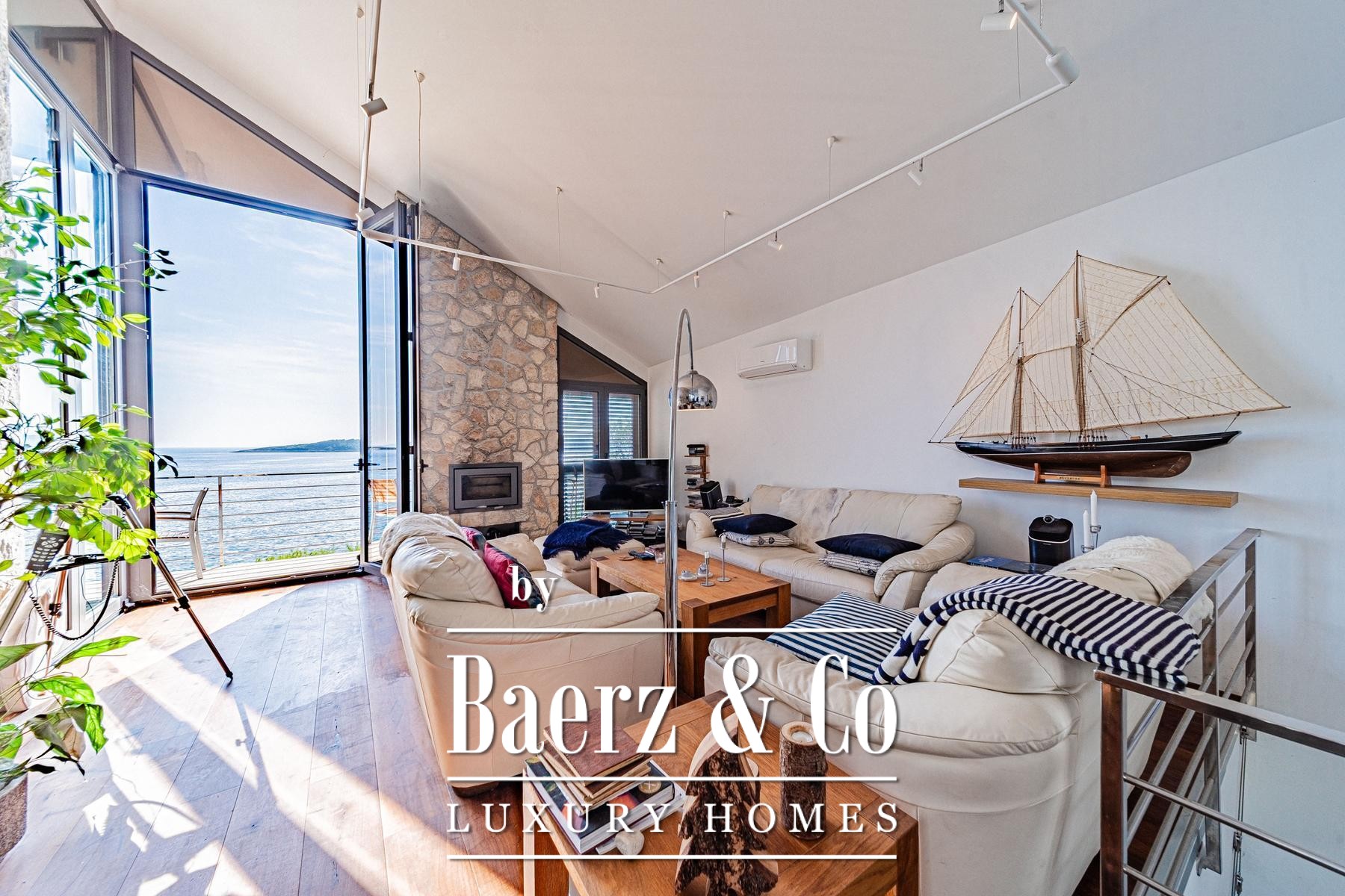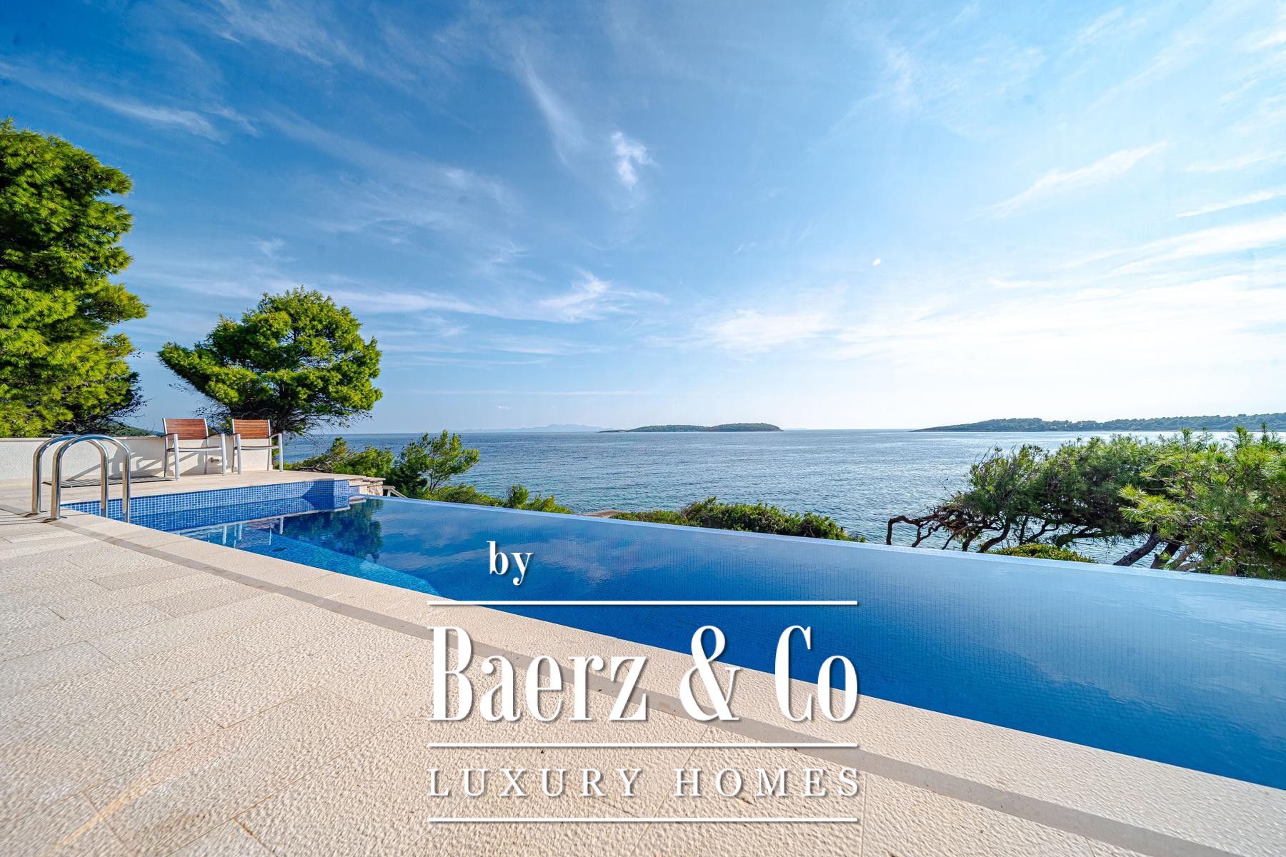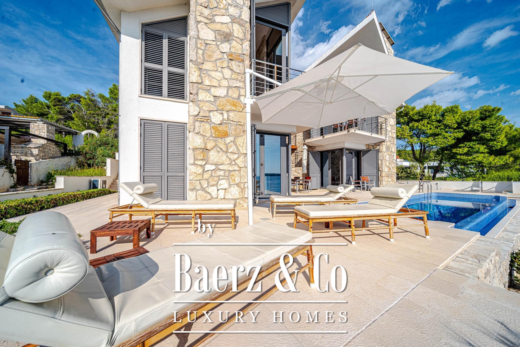 Deze villa Blato ligt direct aan de kust van Kroatië en biedt 260 m² aan binnenruimte op een perceel van 500 m². Architectonische helderheid kenmerkt de residentie, die bestaat uit twee zelfstandige units verbonden door ruime terrassen, waarbij elke unit functioneert als een volwaardig huis. Op de begane grond bevinden zich in beide units gecombineerde leef-, eet- en keukenzones; op de verdieping beschikt elke unit over twee slaapkamers, allen met en suite badkamers en een privéterras.