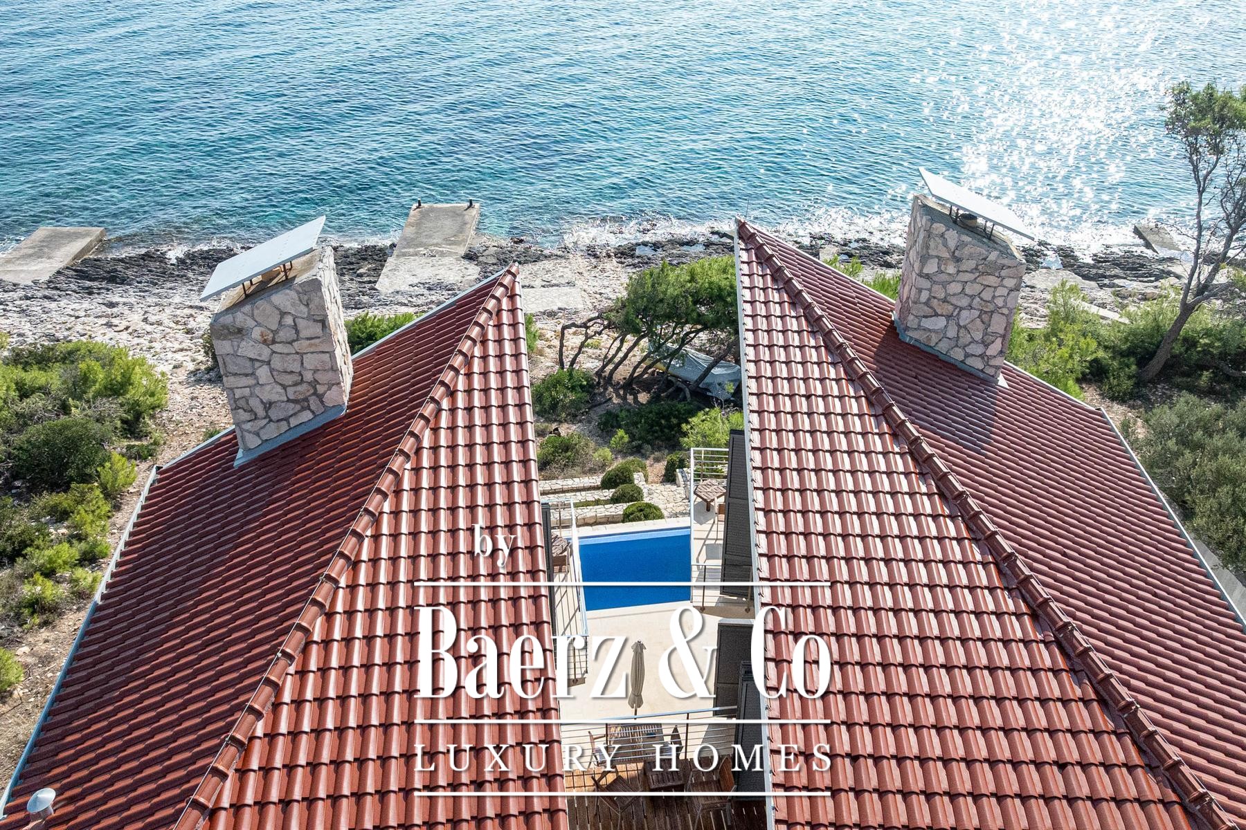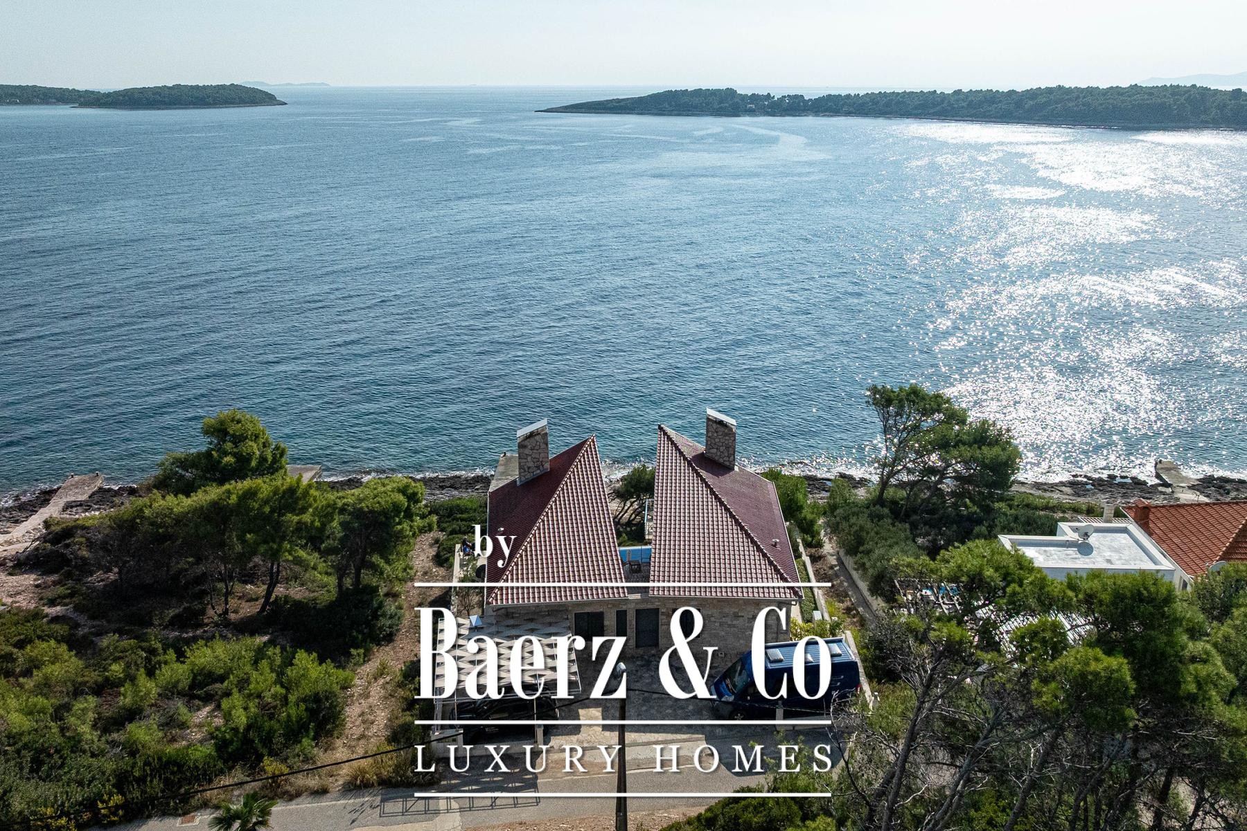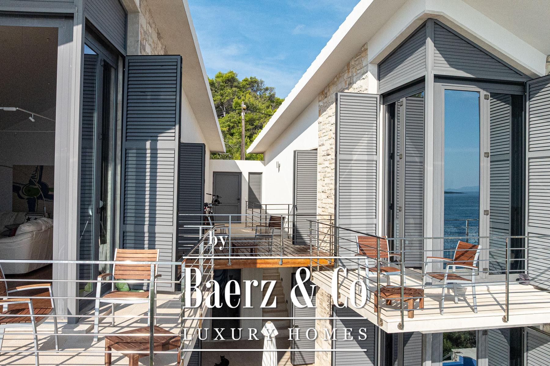 Vloer-tot-plafond uitzichten over de Adriatische Zee en de Lastovo archipel versterken de villa Blato-beleving als een plek van privacy, rust en pure schoonheid, een authentieke verbeelding van het Kroatische kustleven.