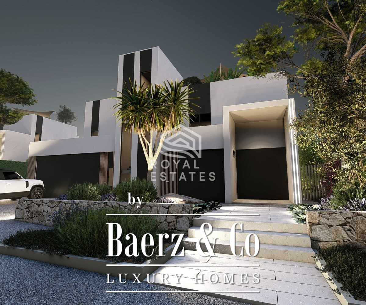 Villa te koop Cala Martina straalt een rustige zelfverzekerdheid uit. Slechts 35 meter van de zee laat deze woning het ritme van de kust deel uitmaken van het dagelijks leven. Met een eigentijdse architectuur kenmerken strakke lijnen en royale glaspartijen het geheel, zodat natuurlijk licht gedurende de dag de sfeer bepaalt. De leefruimte beslaat 285 m², omlijst door terrassen die vloeiend overlopen in het zwembad en een zorgvuldig aangelegde tuin, alles op een perceel van 967 m².