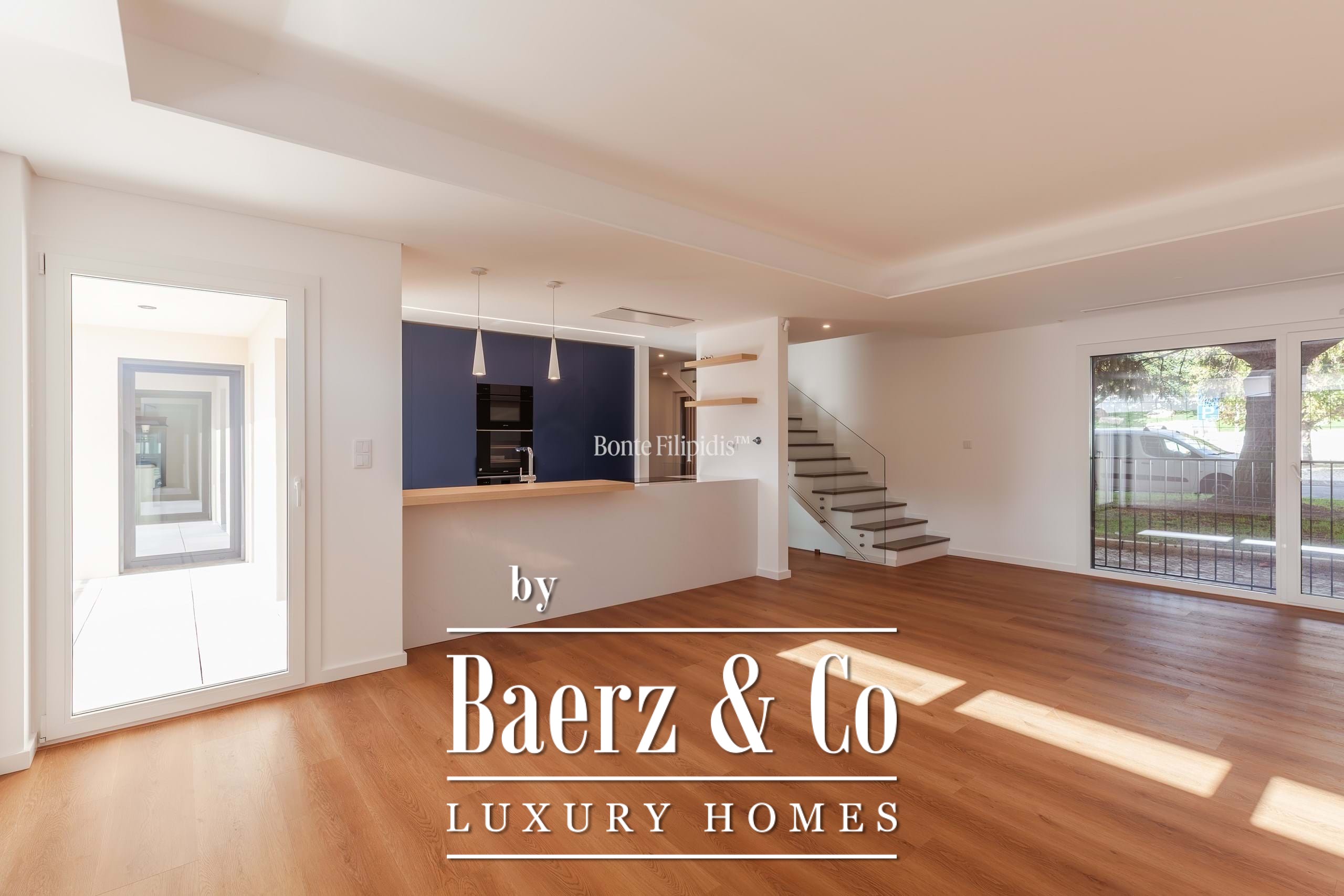 Deze townhouse in Carcavelos e Parede is geïnspireerd op hedendaagse architectuur en biedt een ingetogen luxueuze woonomgeving, verdeeld over 217 m² en drie doordachte verdiepingen. De open keuken, uitgerust met hoogwaardige apparatuur, sluit naadloos aan op de woonkamer en trekt volop daglicht naar binnen, waardoor het interieur in verbinding staat met buitenruimtes en het aangelegde terras. Een extra suite op de begane grond biedt flexibiliteit en privacy, geschikt voor gasten of als multifunctionele leefruimte.