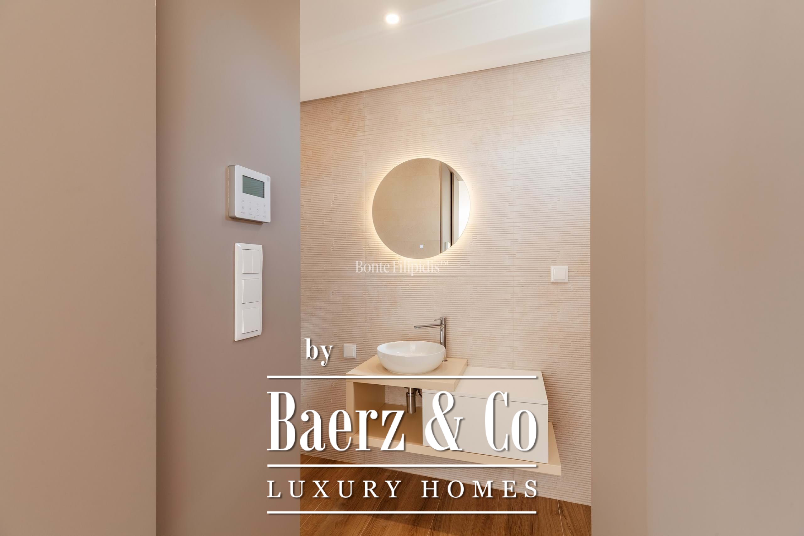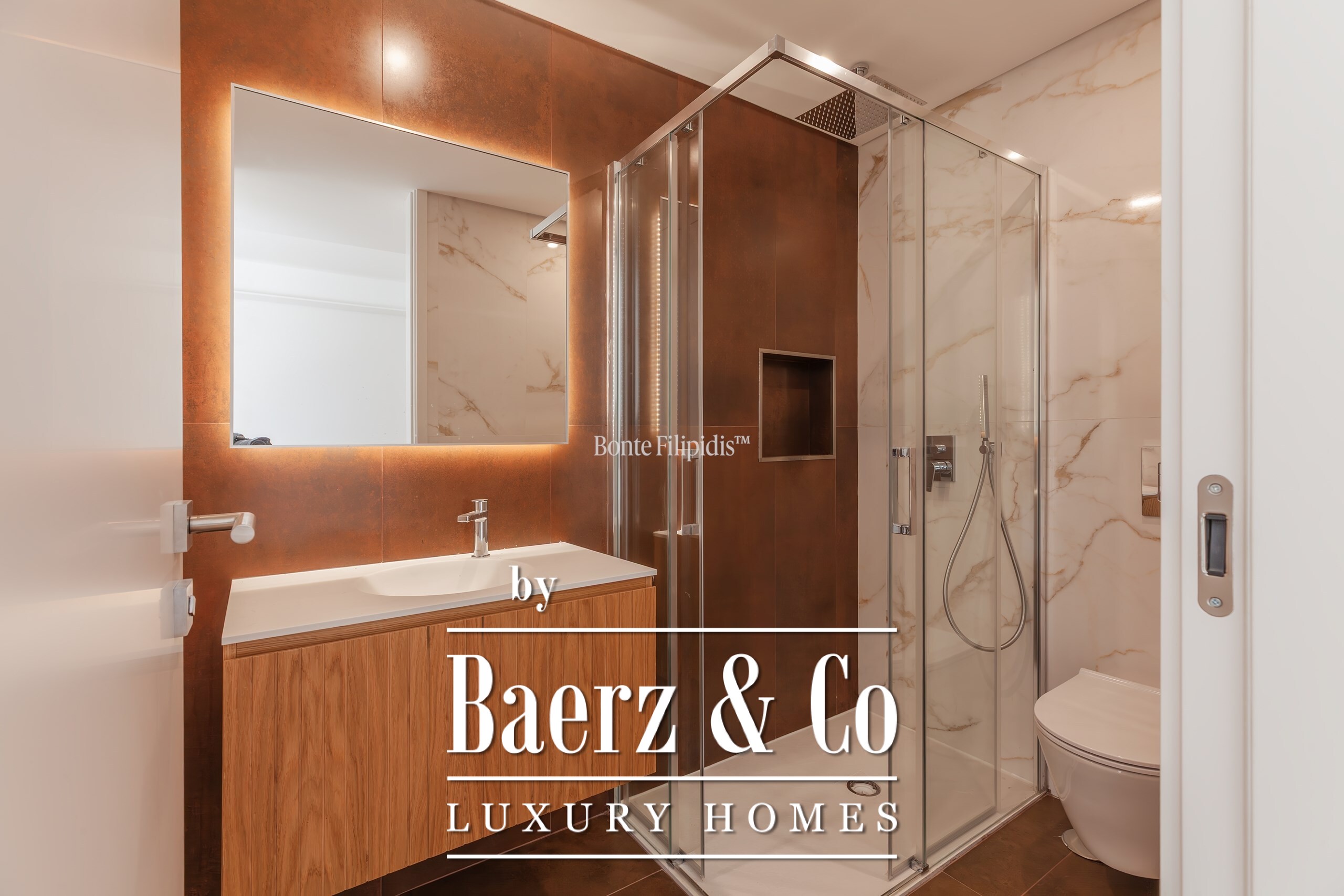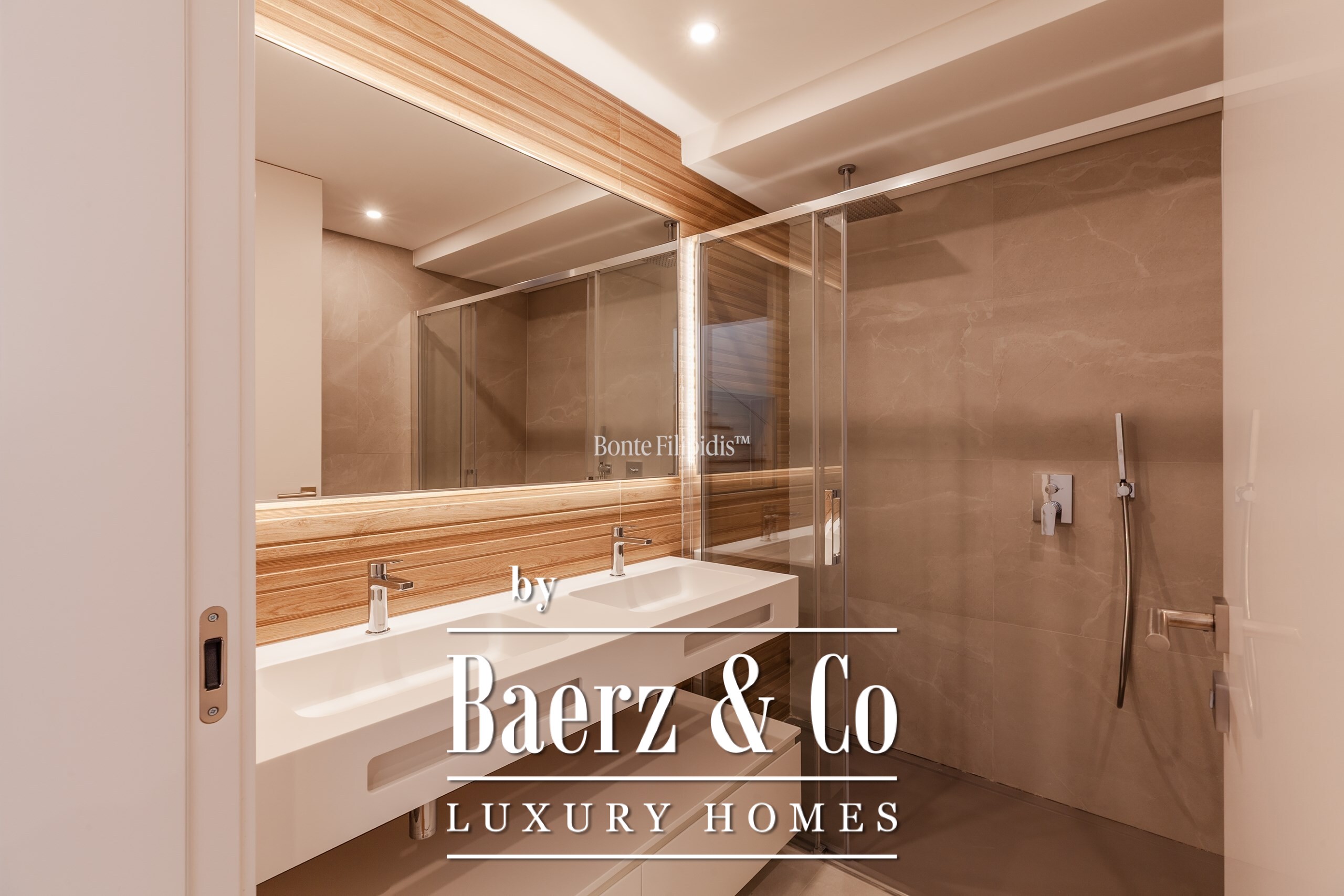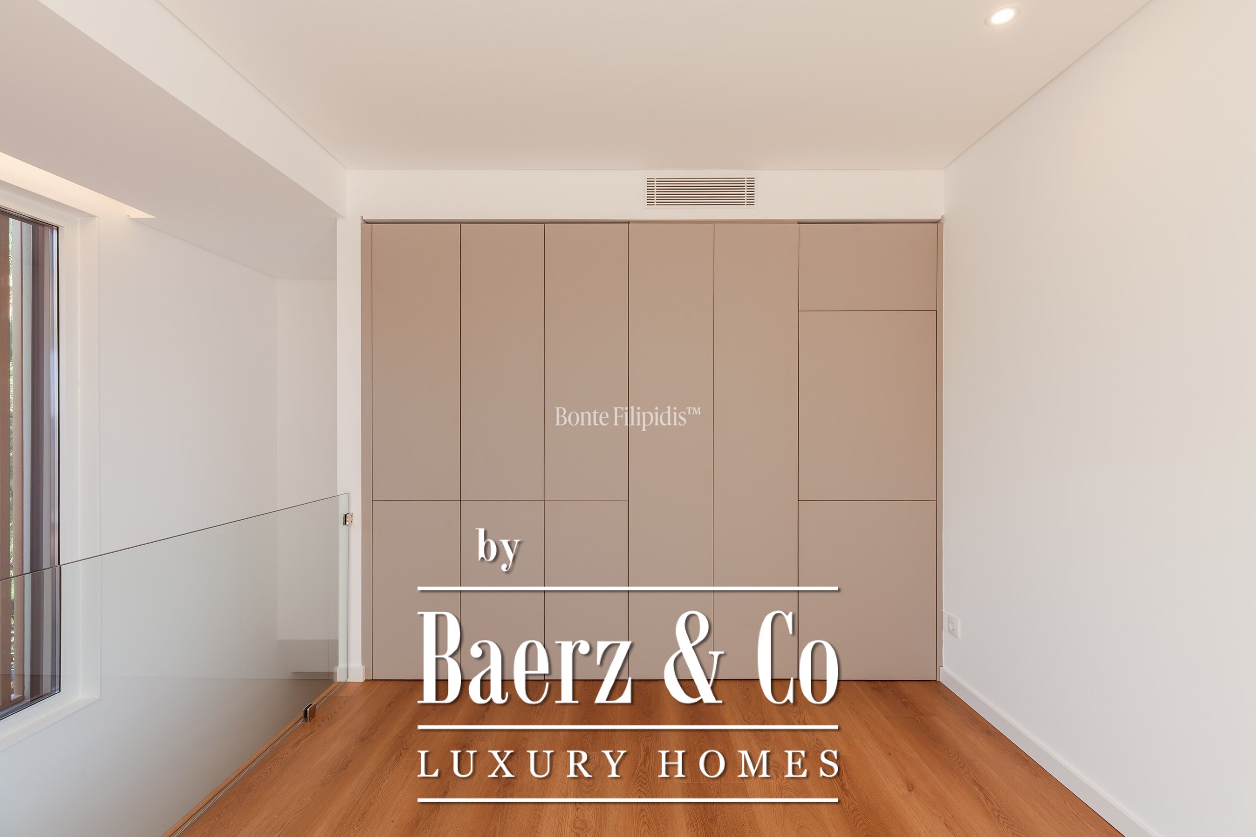 Op de begane grond verbindt een open keuken met hoogwaardige inbouwapparatuur zich met de woonkamer, ideaal voor samenkomsten of rustige avonden. Directe toegang tot het exterieur vergroot de lichtinval en het gevoel van verbondenheid, terwijl een suite op deze verdieping voor flexibiliteit zorgt. Op de eerste verdieping vindt u een serene master suite met inloopkast, verder twee extra slaapkamers en een luxe badkamer, alle met veel natuurlijk licht en hoogwaardige afwerking.