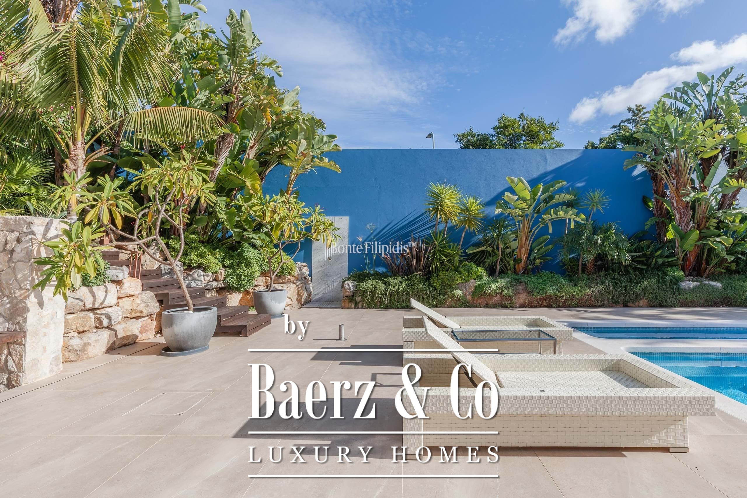 Villa Cascais e Estoril ligt op een uitzonderlijk perceel van 2.100 m² op het hoogste punt van Estoril en creëert een zeldzame balans tussen beslotenheid en comfort. Deze villa bevindt zich tussen de gerenommeerde Estoril Golf Course en directe, exclusieve toegang tot de Estoril Tennis Club; een harmonieuze combinatie van privacy en verbondenheid. Over twee verdiepingen ontvouwt zich het zeezicht, terwijl royale terrassen de tuin verdelen in diverse leefruimtes, voorzien van overdekte zitplekken, een vijver, waterval, jacuzzi en verwarmd zoutwaterzwembad voor een serene ambiance.