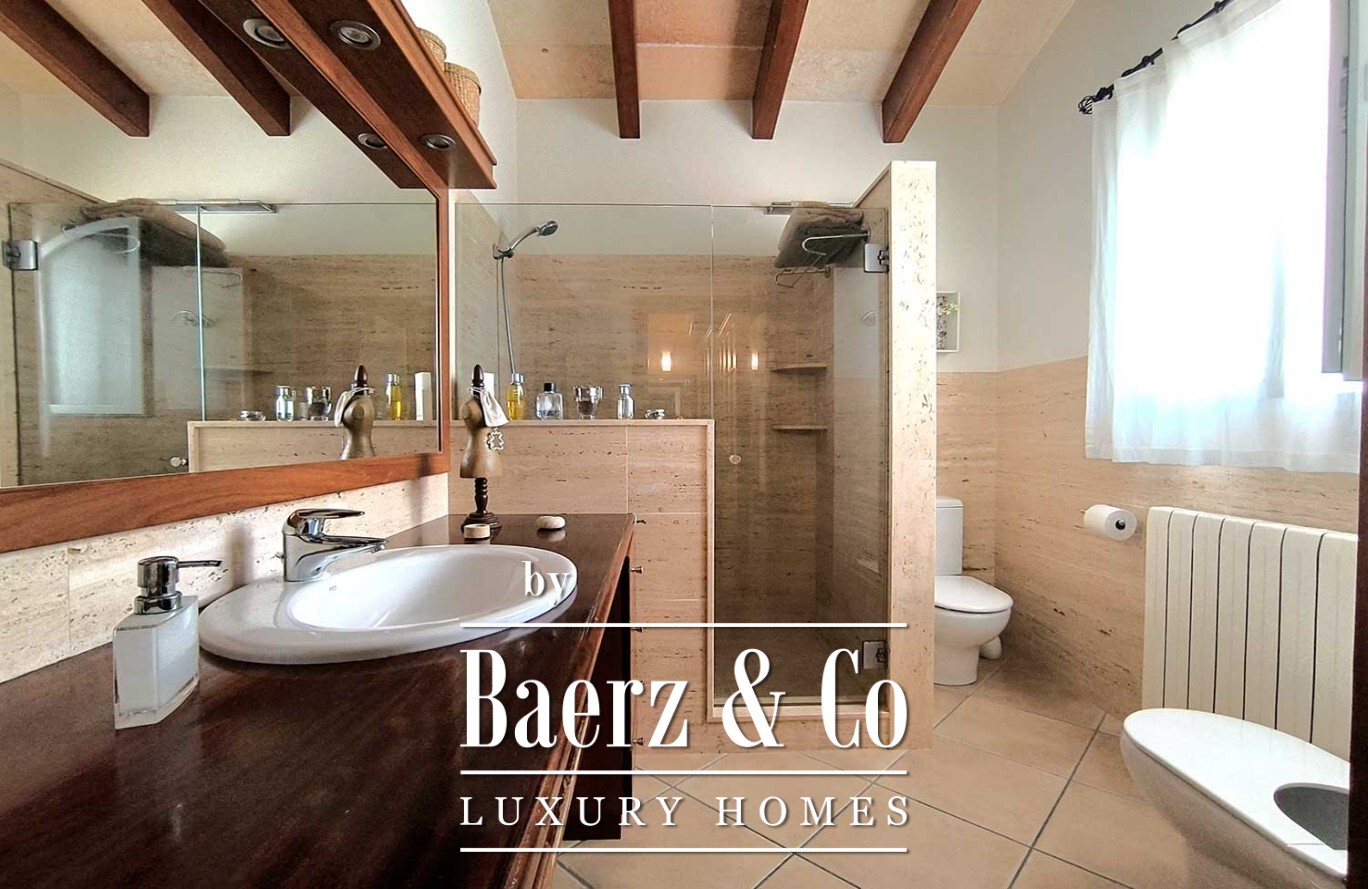 Buiten vormt een royaal zwembad het middelpunt van een tuin met volgroeide bomen en onberispelijk kunstgras, waardoor rust en eenvoudig onderhoud samenkomen. De villa in Ciutadella de Menorca verenigt authenticiteit en privacy met directe toegang tot de Middellandse Zee en biedt daarmee een zeldzame kans voor een exclusieve levensstijl.