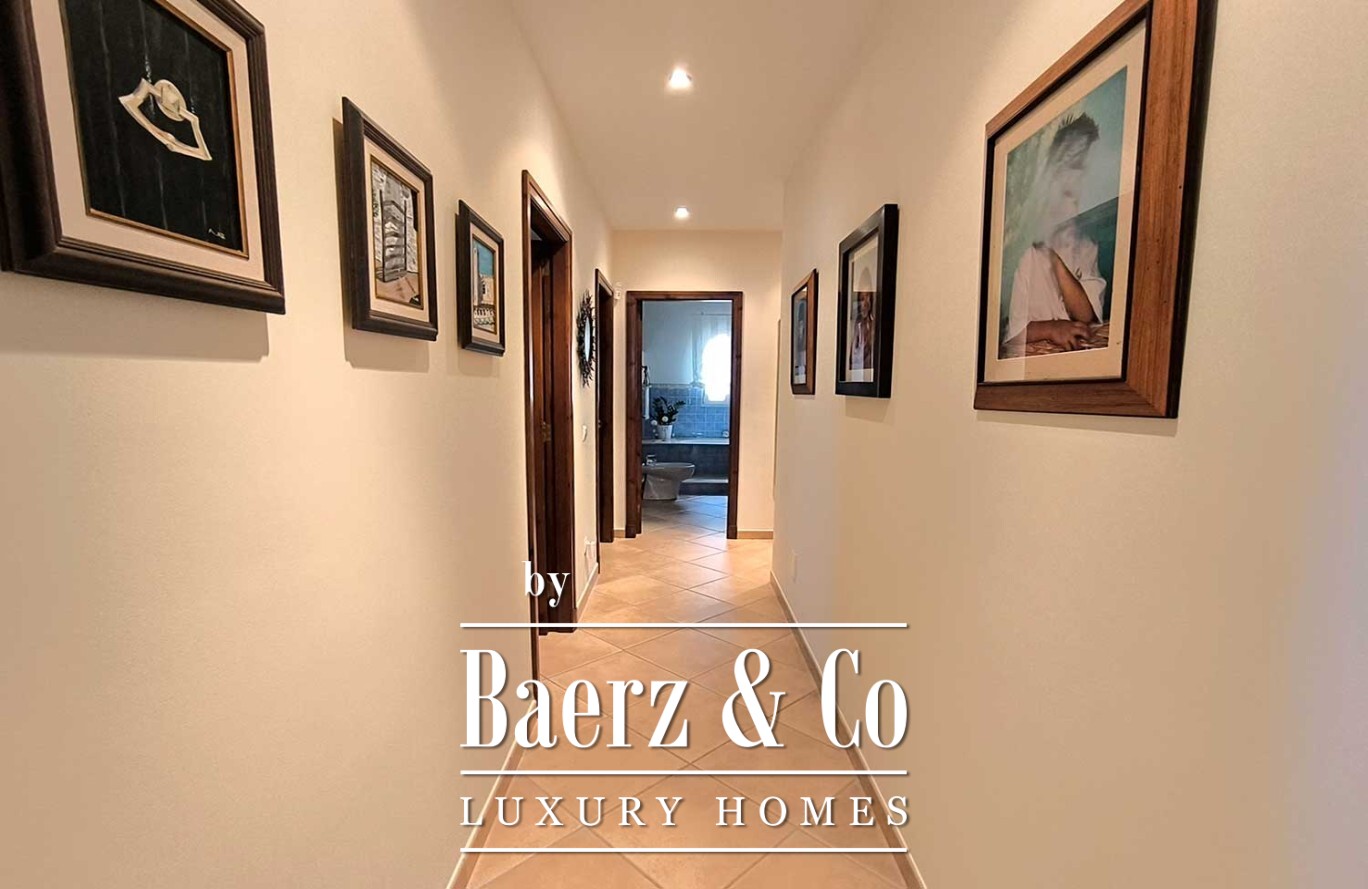 Op de verdieping zorgt een serene overloop, perfect voor werk of bezinning, met uitzicht op de woonruimte voor toegang naar de master suite. Deze privéruimte beschikt over een eigen badkamer en een privéterras, zodat u geniet van zonlicht en een fraai uitzicht in de ochtend.