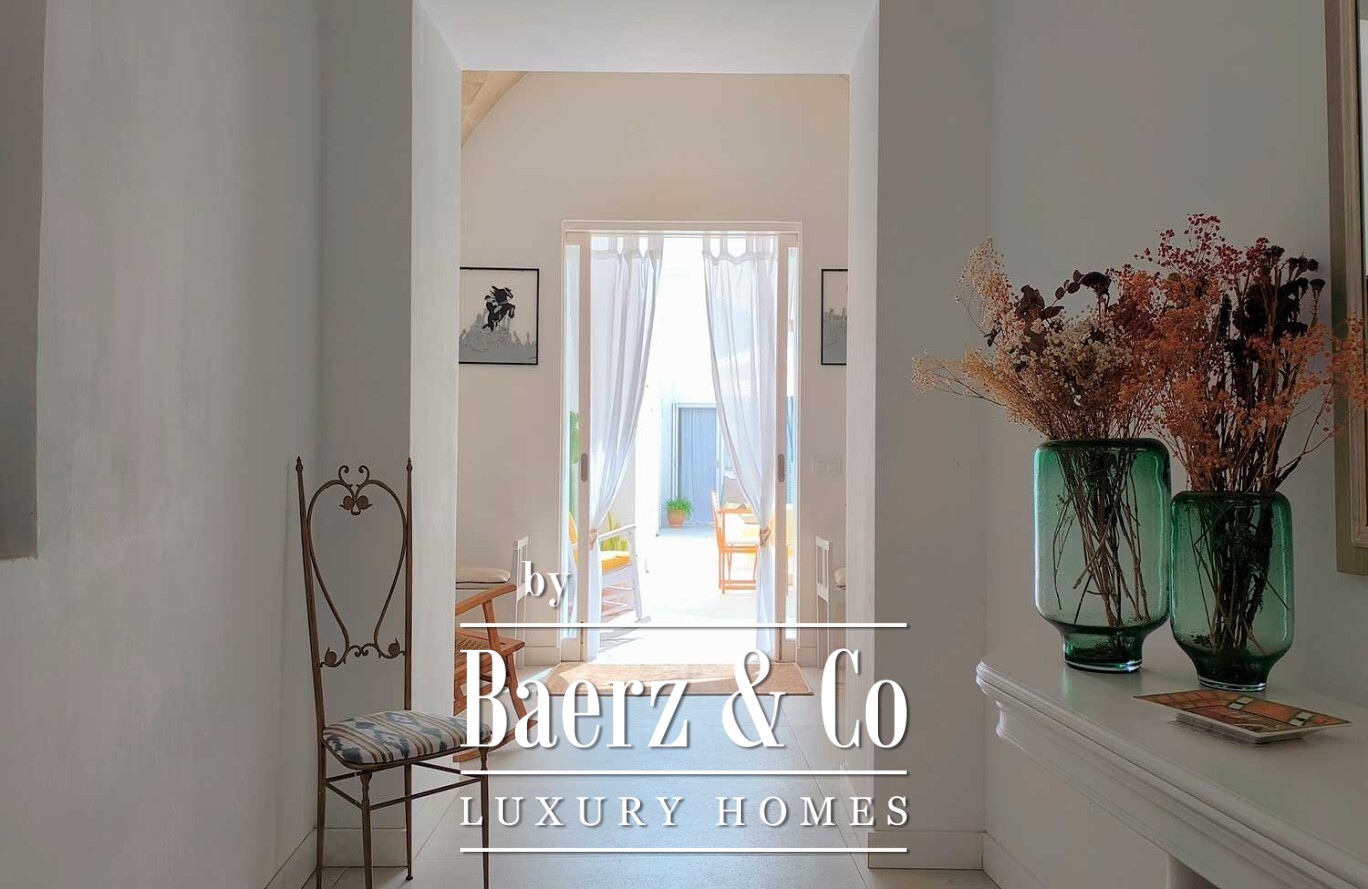 Een gang leidt naar het slaapgedeelte, waar drie slaapkamers elk zijn voorzien van een en-suite badkamer en directe toegang tot buiten, waardoor privacy en een voortdurende lichtinval gewaarborgd zijn. In het hart van de woning bevindt zich een privépatio met een onverwacht privézwembad—een waar voorrecht in het oude centrum. Vanaf hier nodigt een dakterras met ingebouwde zitbank en buitenkeuken-barbecue uit tot gedeelde momenten die blijven hangen.