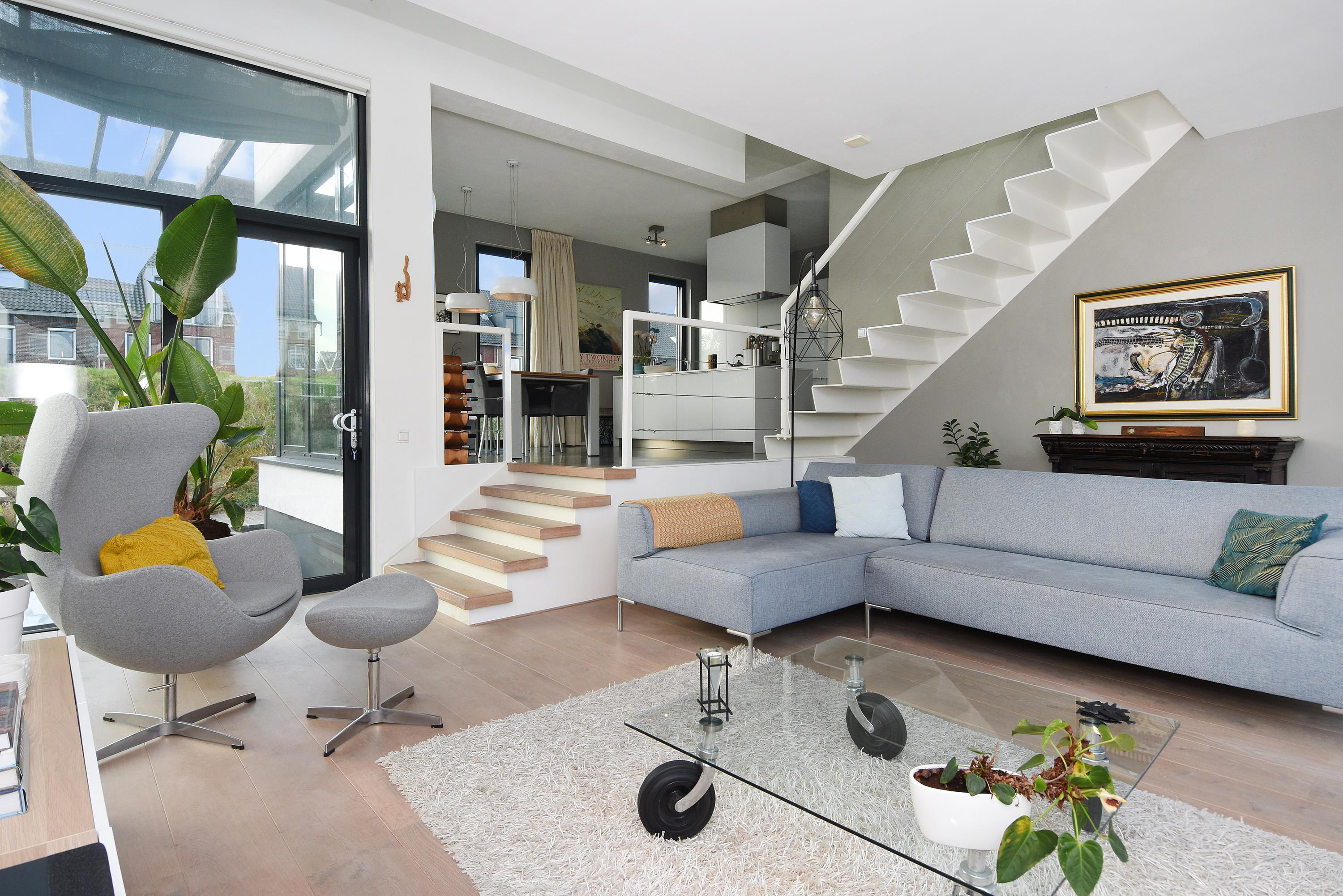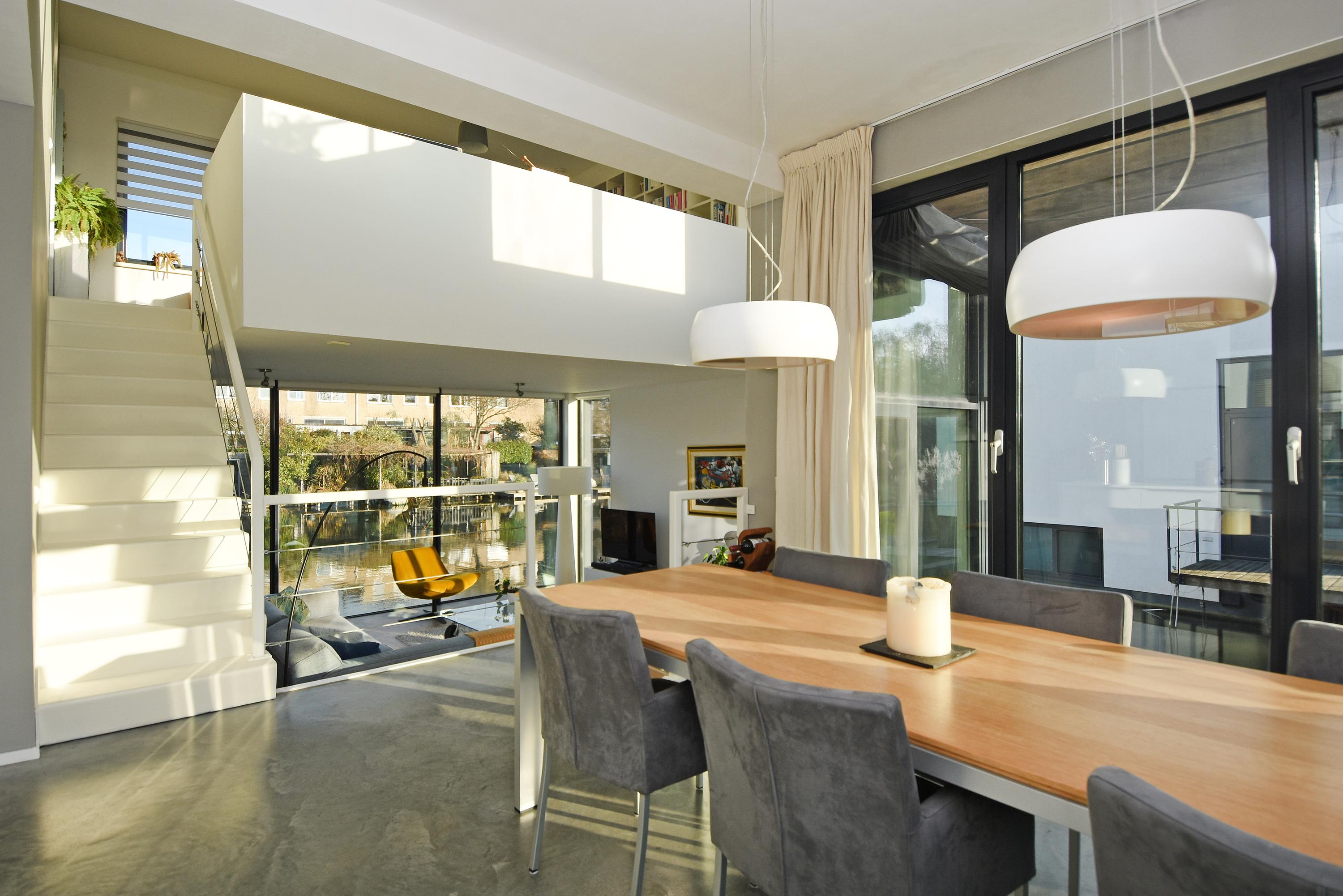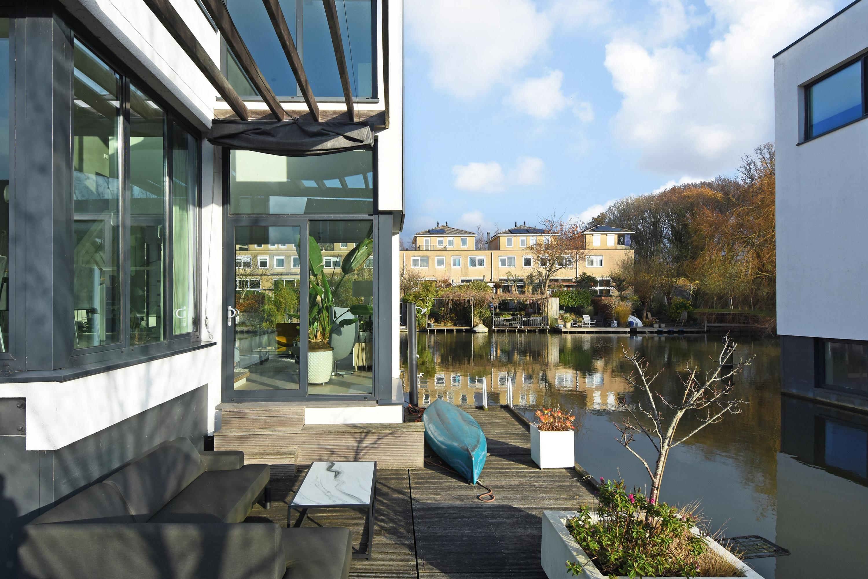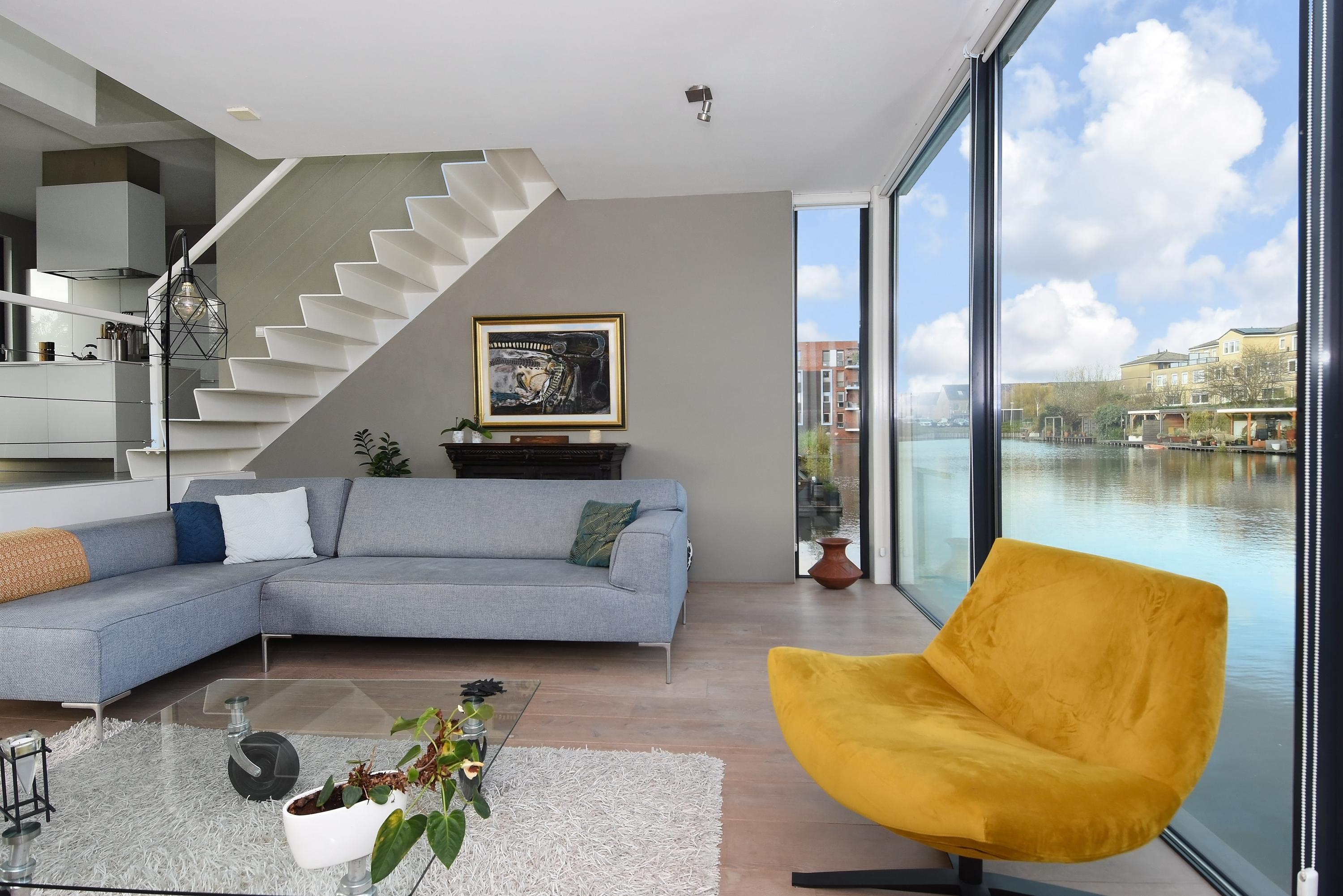 Bij binnenkomst in deze splitlevelwoning word je compleet verrast door de speelse indeling, de ruimte en het vele licht dat binnenvalt door de grote en hoge raampartijen. De comfortabele en fraaie woonkeuken is van alle luxe en gemakken voorzien met een kookeiland, allerlei inbouwapparatuur en een ideale plek voor een ruime eethoek. Vanuit hier bereik je via een trapje naar beneden een lichte, gezellige en royale living met een uniek en vrij uitzicht op het water. Aangrenzend loop je zo door naar een heerlijk zonnig drijvend terras met (buiten) regendouche en zwemtrap, waar je lang kan genieten van alle rust, vrijheid en de zon.
