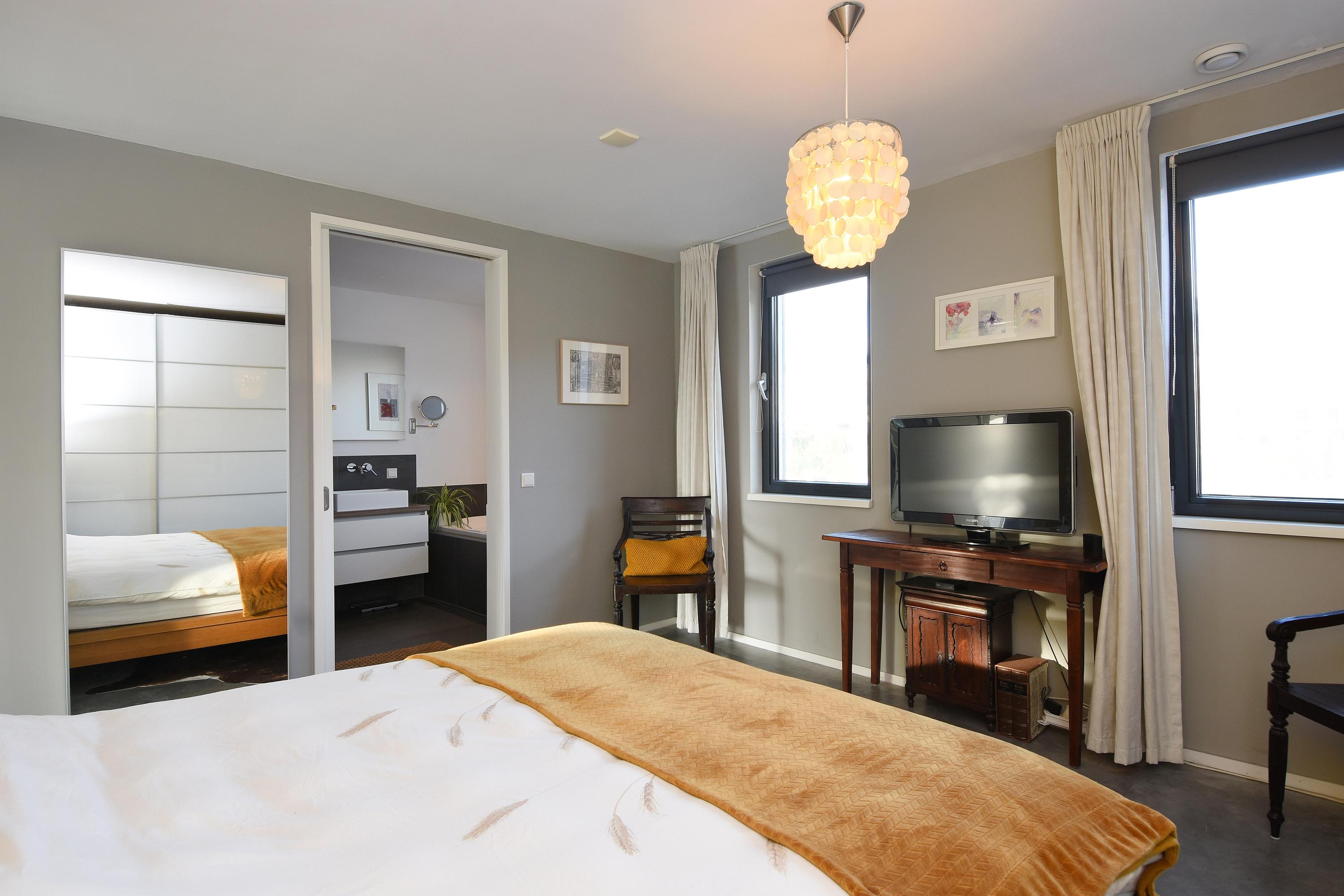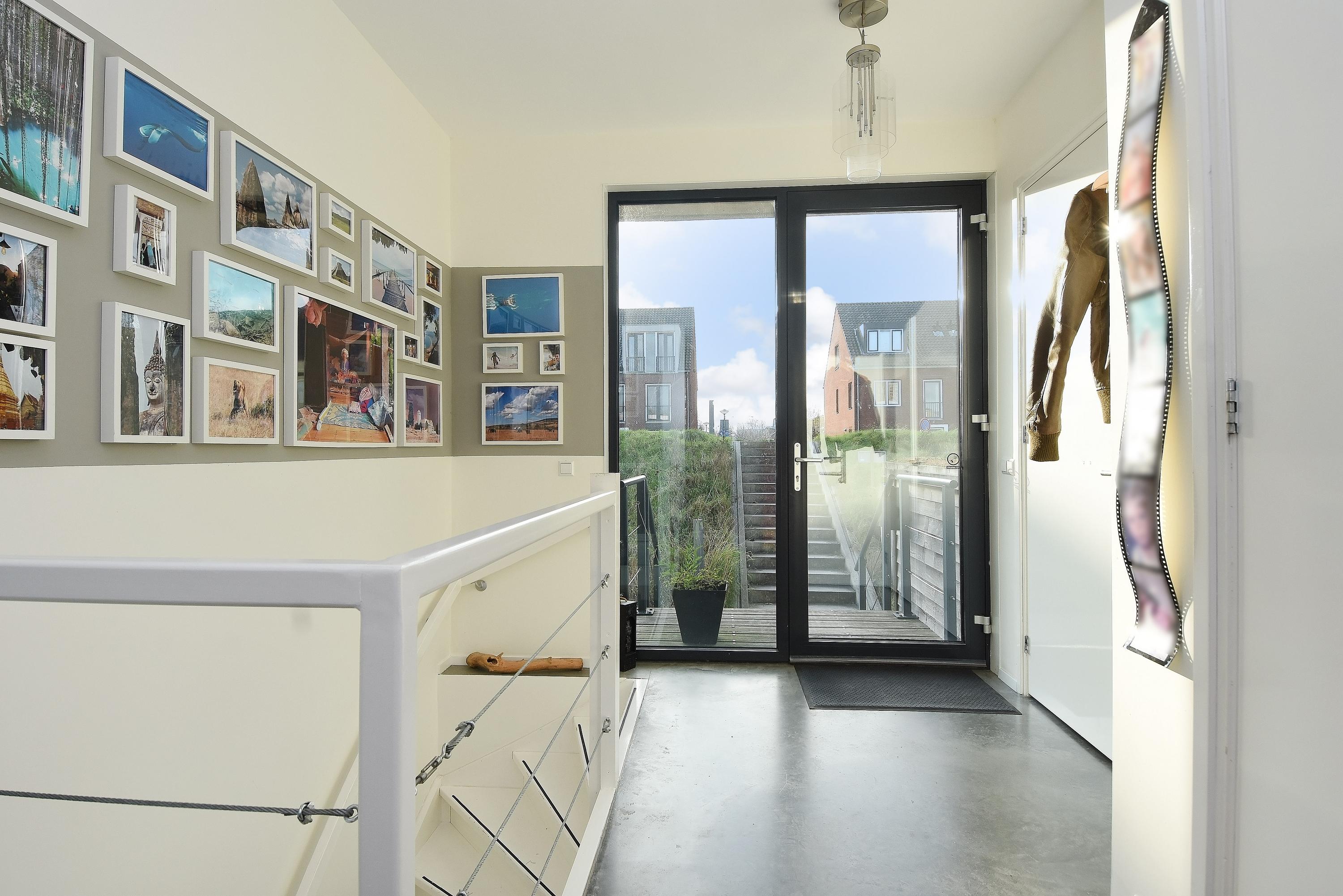 Vanuit de woonkeuken kom je via een vaste trap naar boven op de vide, die je voor meerdere doeleinden (o.a. werkplek, bibliotheek, tv-kamer) kunt gebruiken. De grote verrassing is het aansluitend gelegen, fraai aangelegde en royale dakterras met veel privacy en gezelligheid, waar je werkelijk de gehele dag de zon kunt vinden.
