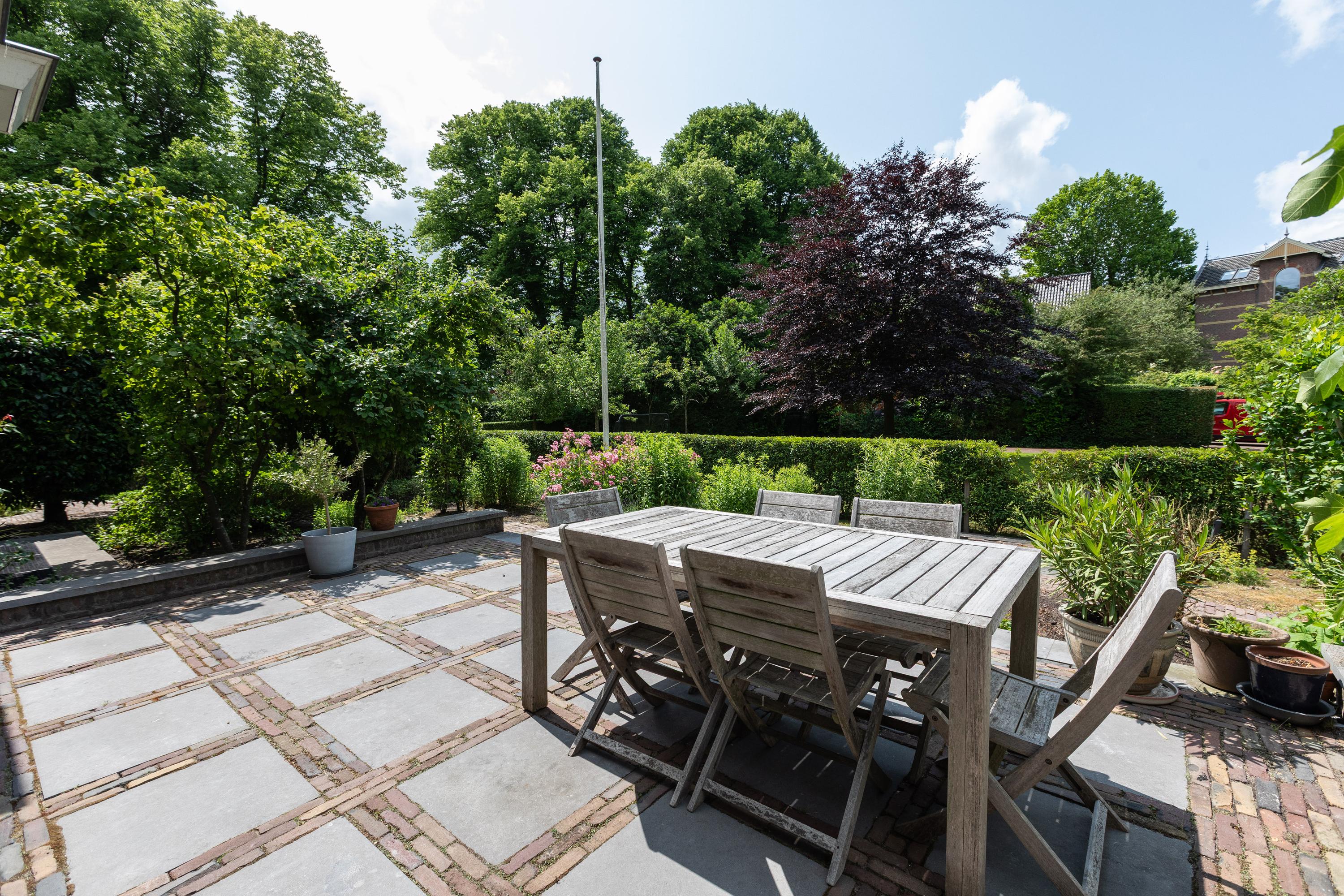 Entree, hal met garderoberuimte en meterkast. Ruime hal met aangrenzend de studeerkamer (3.80 x 3.40m). Toiletruimte. Woonkamer met fraaie visgraat-parketvloer en open haard. De woonkamer heeft meerdere openslaande deuren naar de omliggende tuin. Woonkeuken (Siematic, 4.18 x 5.30m) met Amerikaanse koel-/vrieskast, 6-pitsgaskookplaat met oven, afzuigkap, vaatwasser en aparte combi oven-/magnetron. Bijkeuken alwaar aansluitingen voor de wasmachine en droger. Zonnig, riant terras (6.05 x 6.22m).