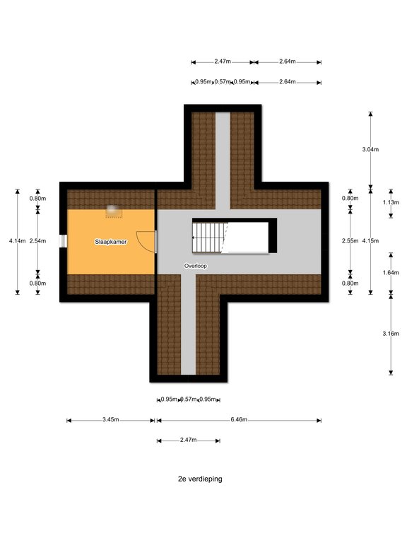 Overloop met bergruimte. Ruime slaapkamer met velux dakraam.