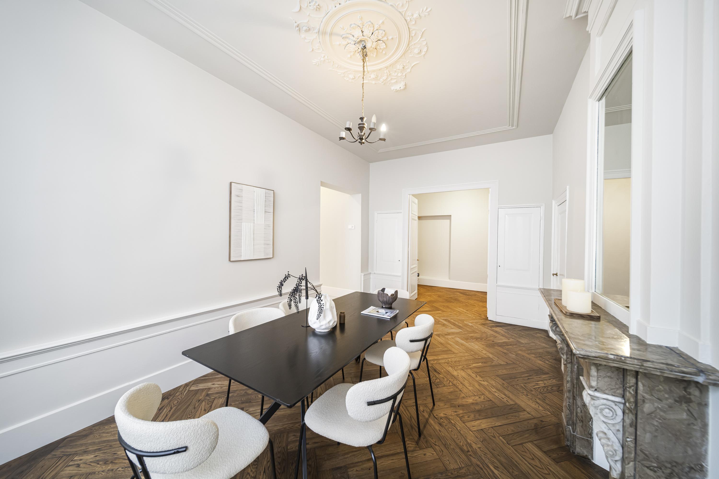 - Indrukwekkend hoge plafonds en uniek centraal trappenhuis;