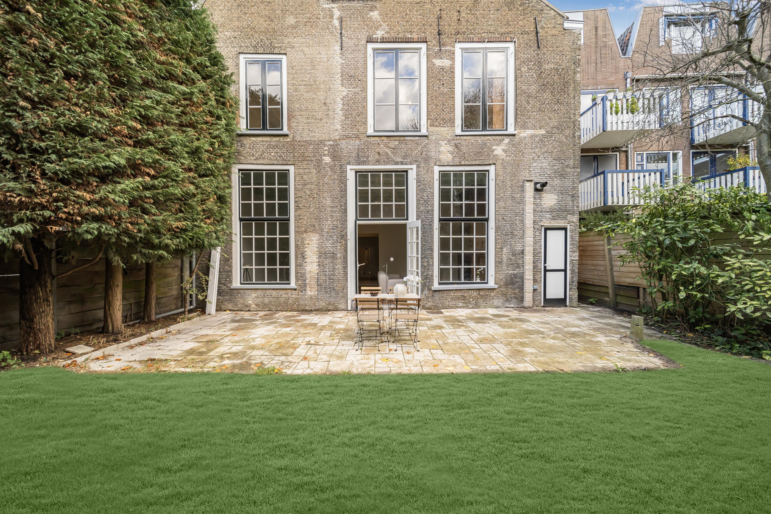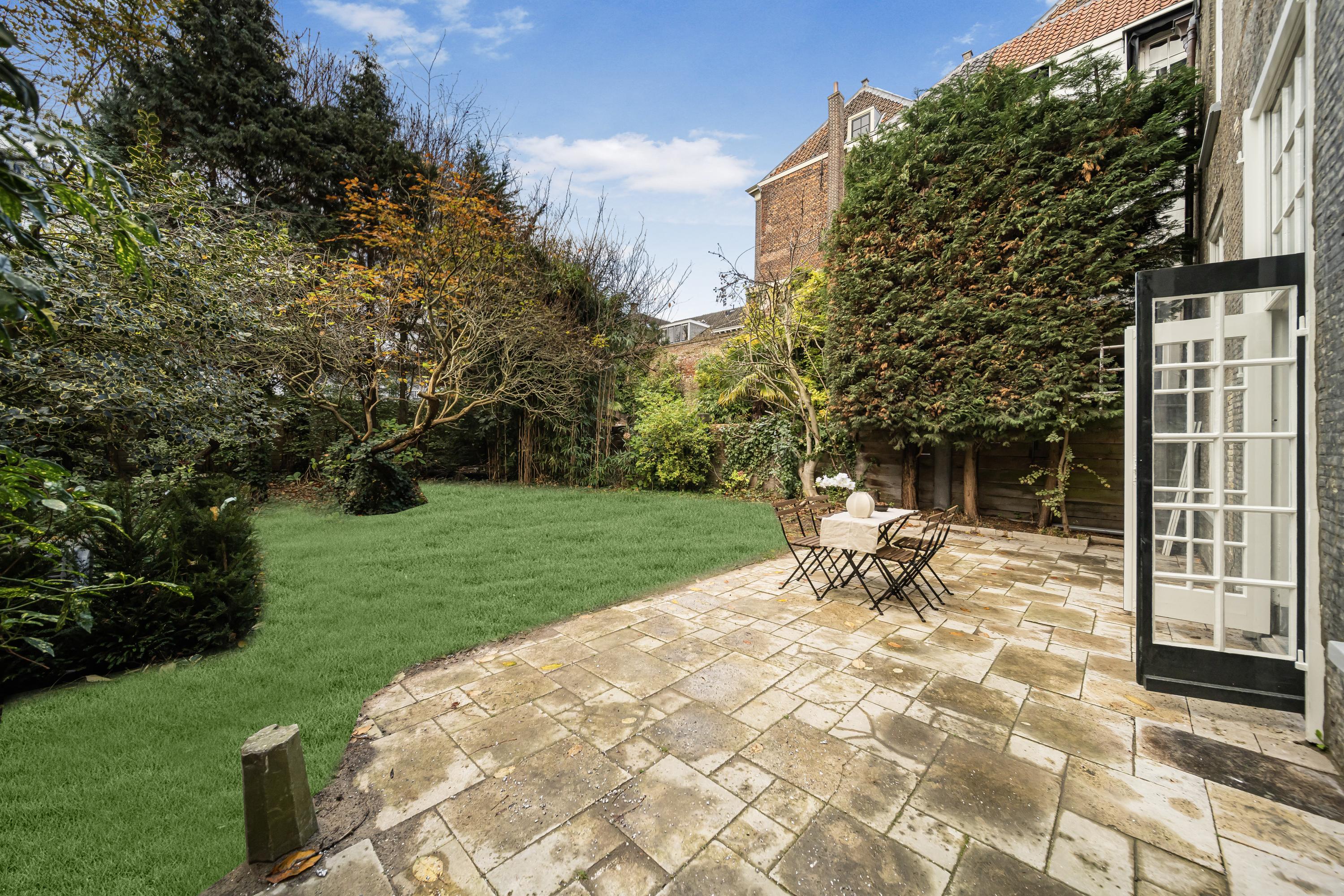 De L-vormige stadstuin op het zuidwesten is een oase van rust en privacy. Met een gevelbreed terras, gazon, oude bomen en een berging vormt dit een unieke groene plek midden in de binnenstad.