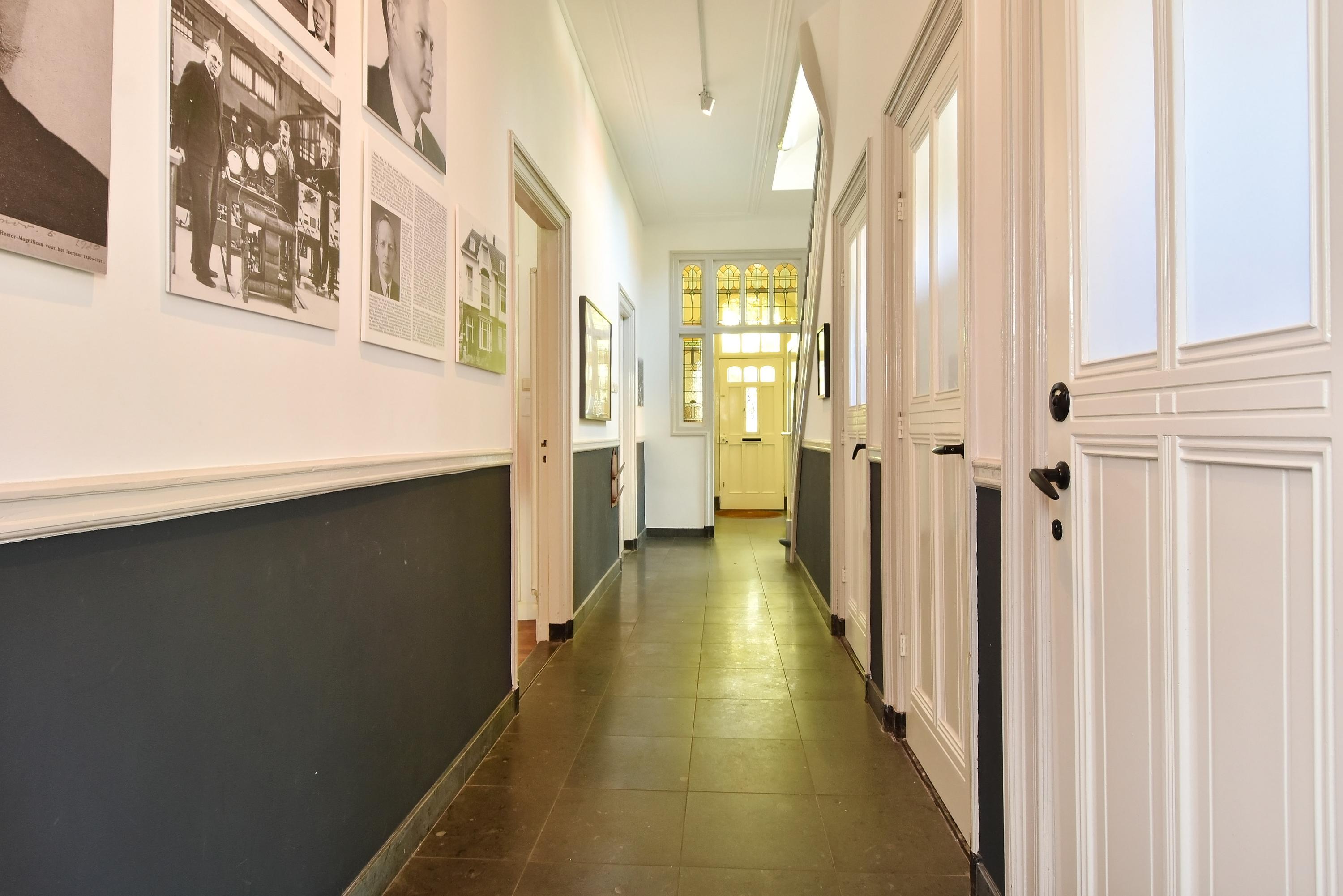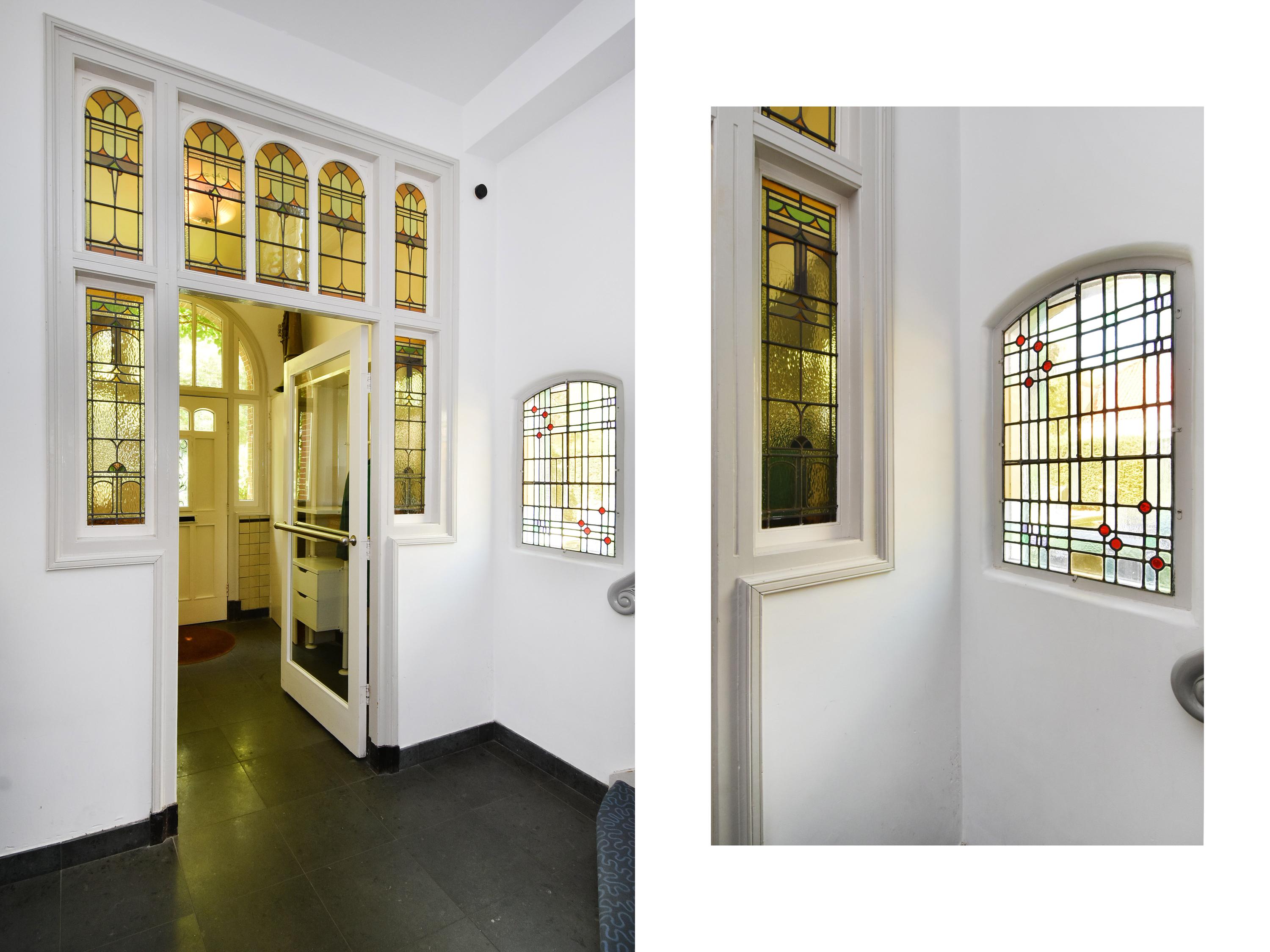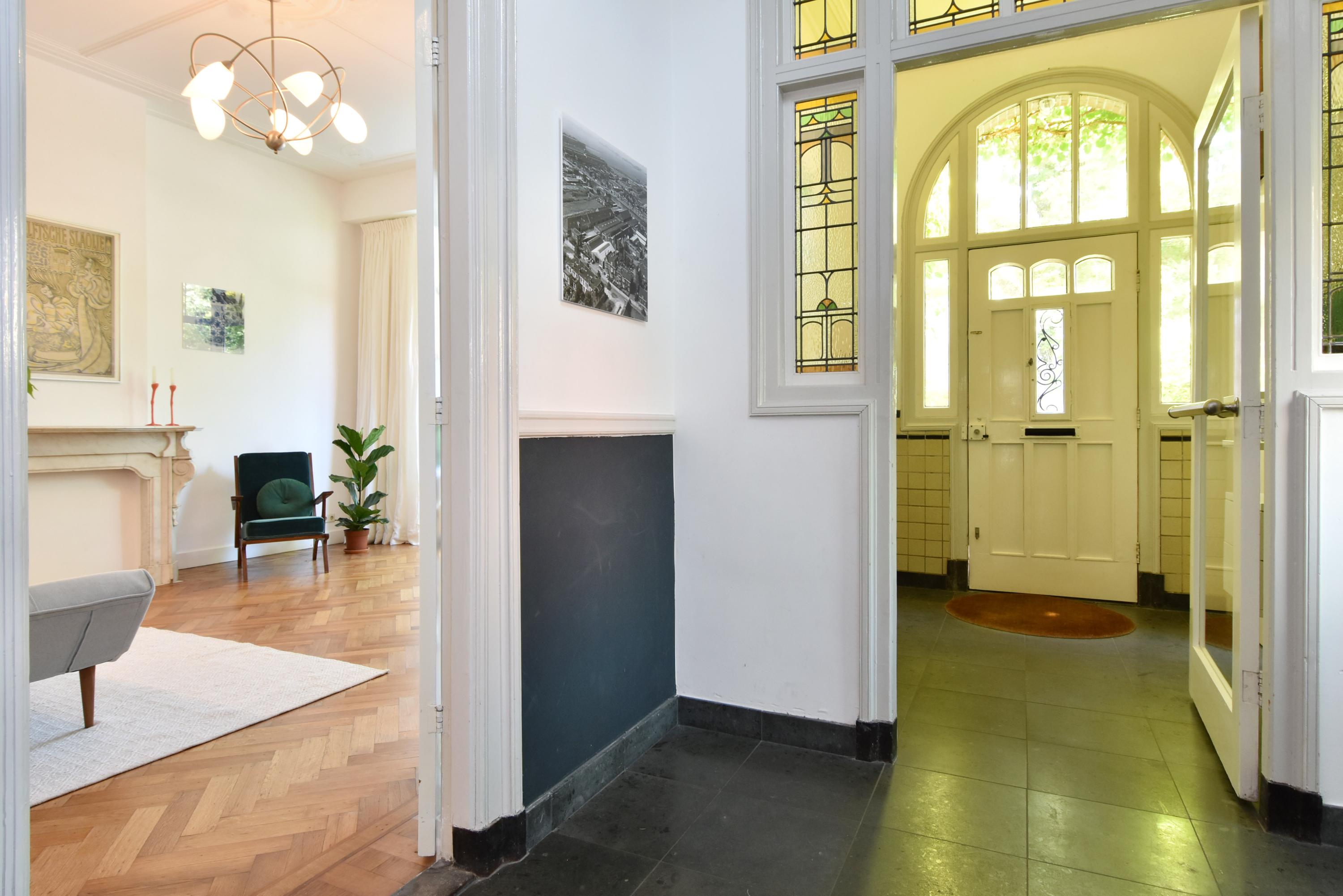 Entree via de fraai aangelegde voortuin. Bij binnenkomst in de woning word je verrast door de aanwezige stijl en sfeer. Een statige vestibule en originele glas-in-lood separatie geven toegang tot de brede en lange gang met natuurstenenvloer en vloerverwarming. Eveneens biedt deze toegang tot meerdere en verschillende ruimtes, zoals toilet, kastruimte en kelder.