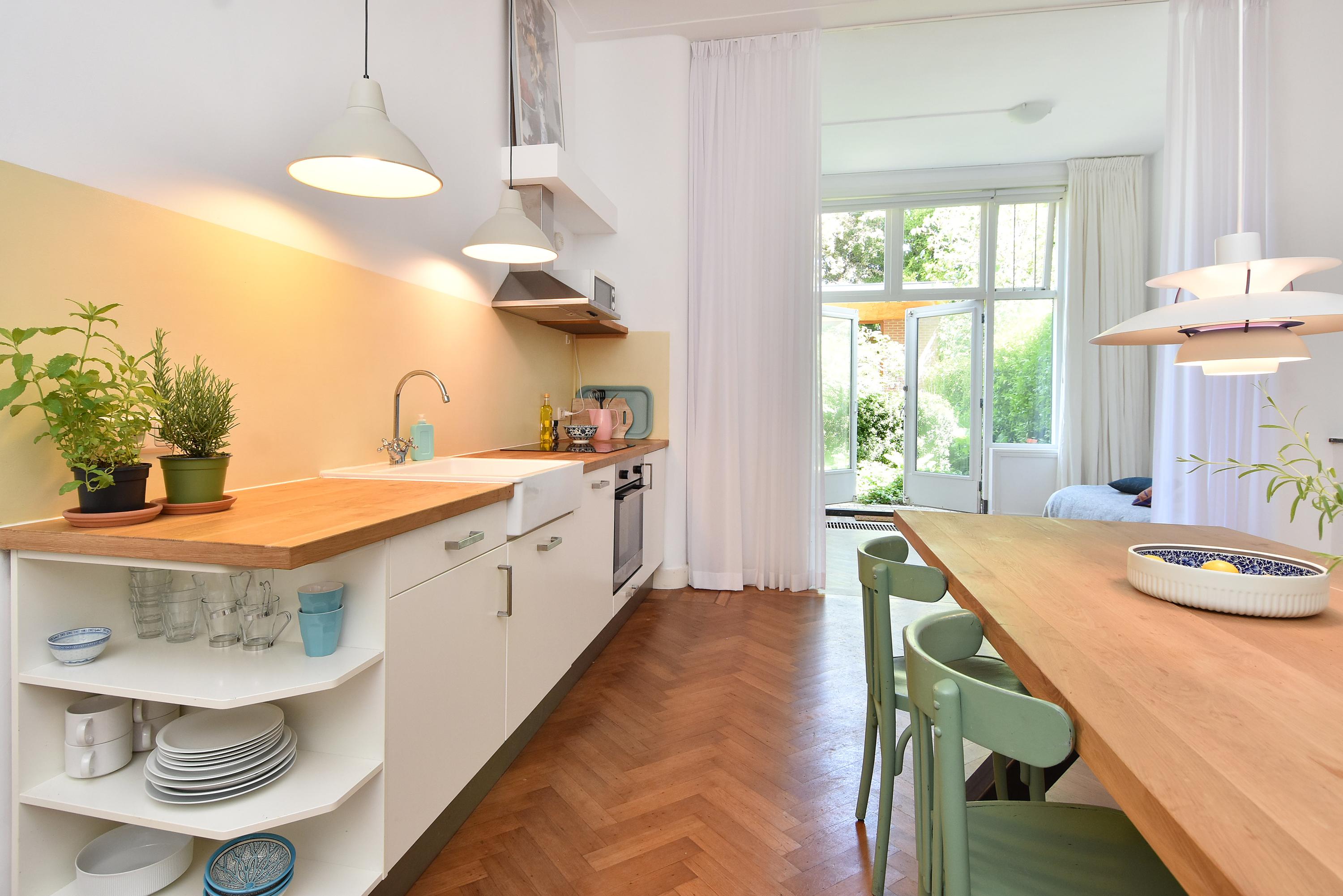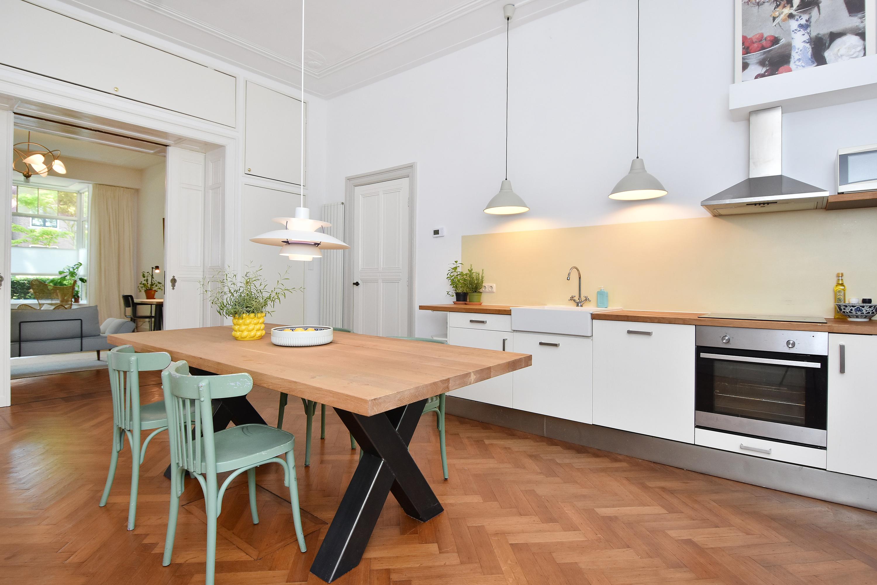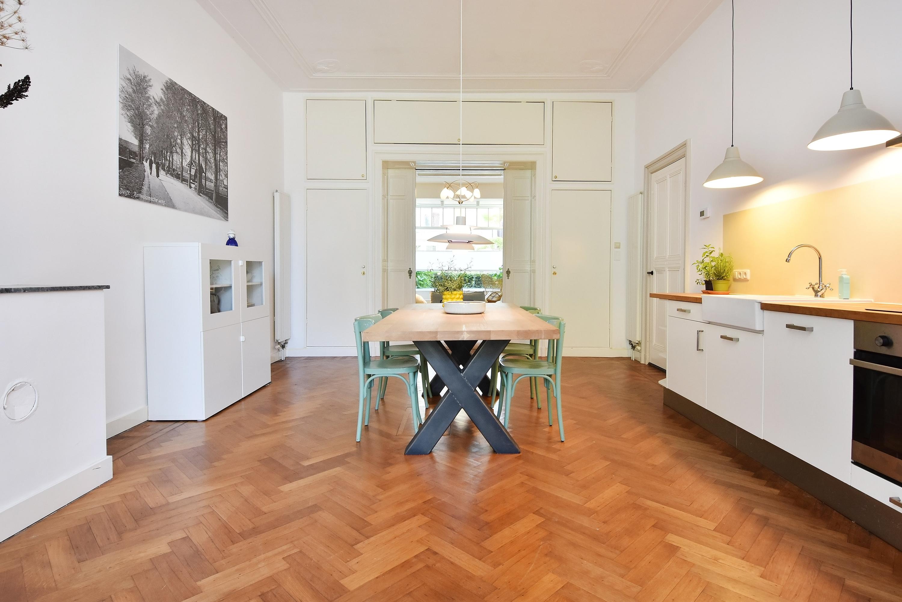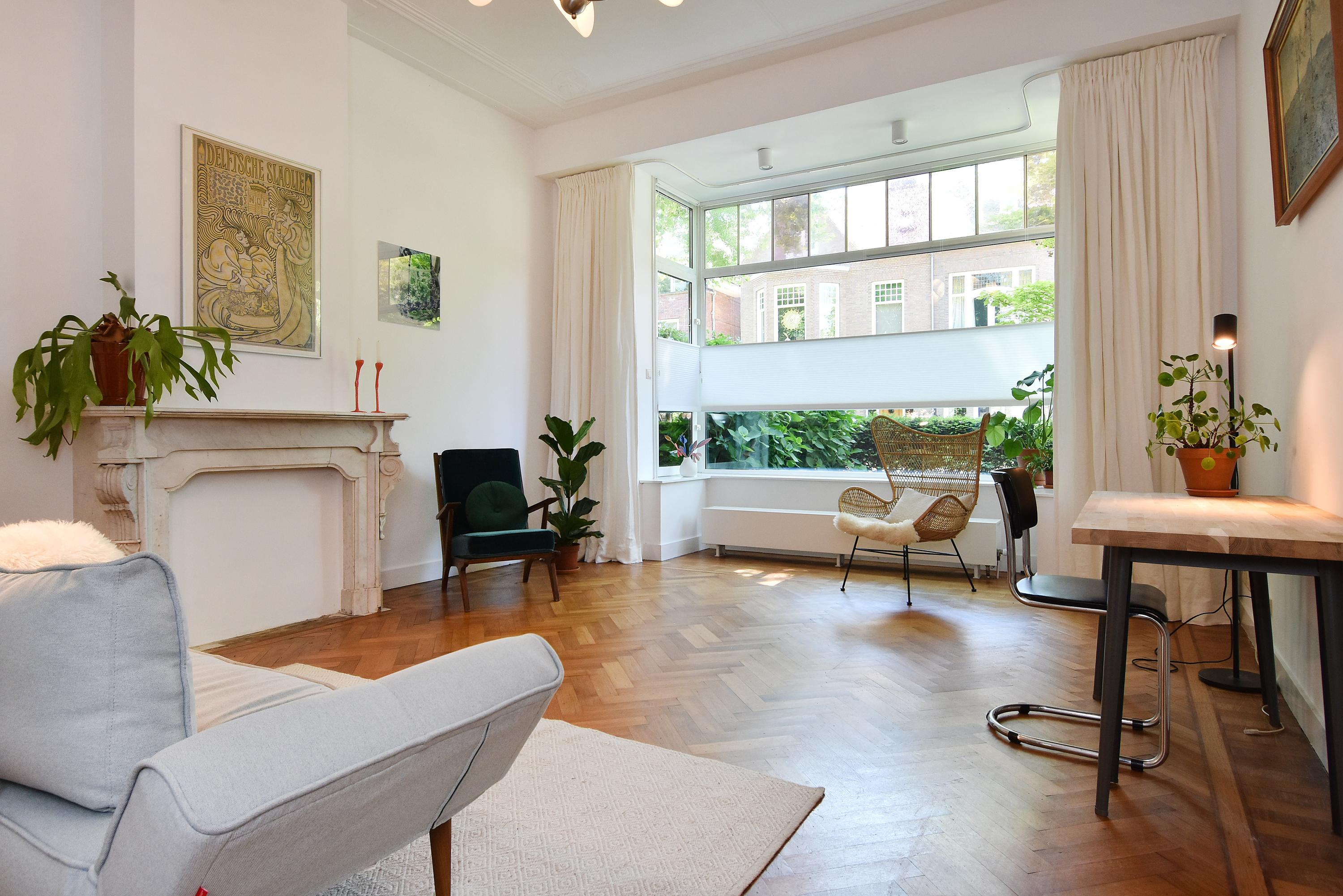- Riante kamers met hoge plafonds en veel lichtinval door de gehele woning.