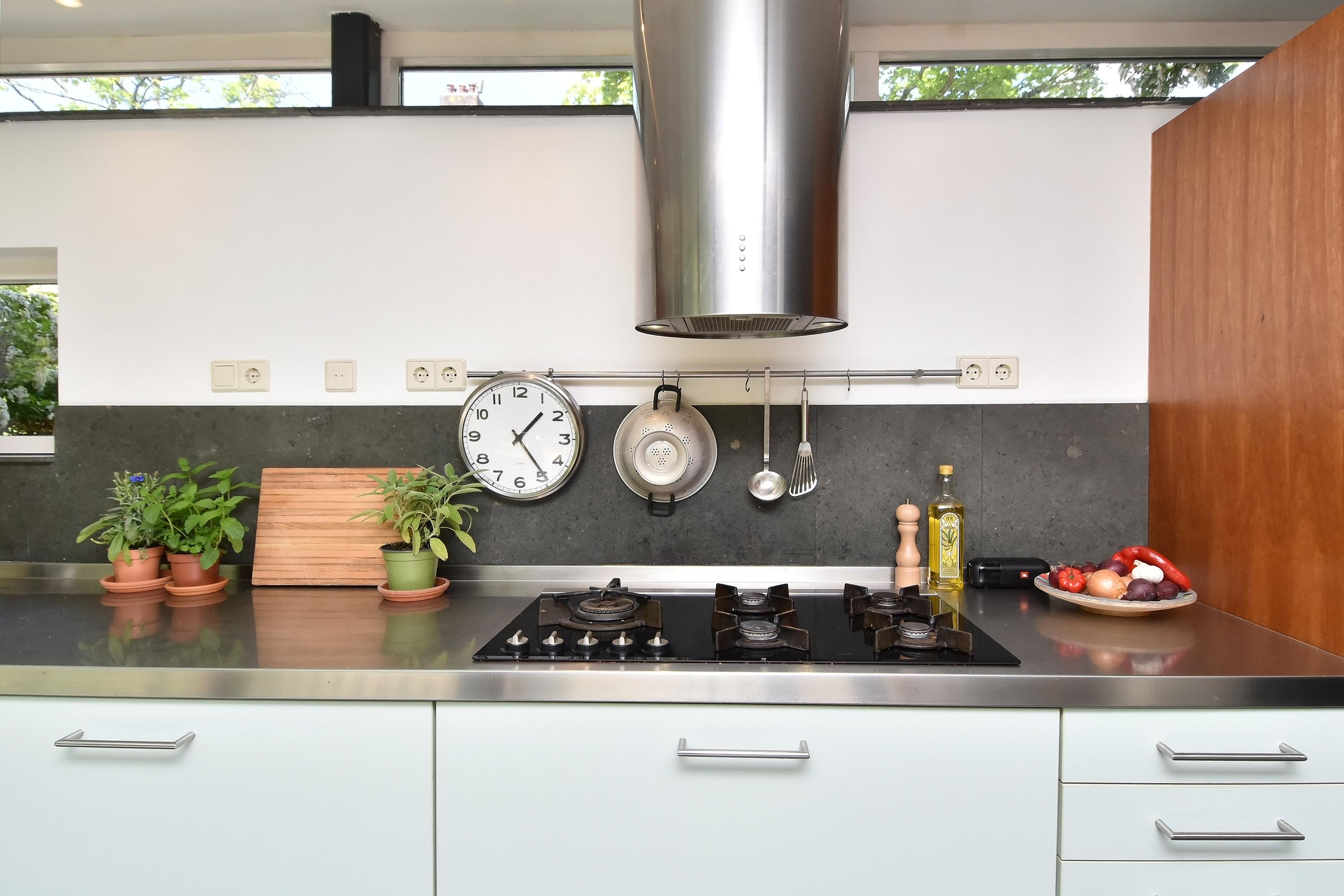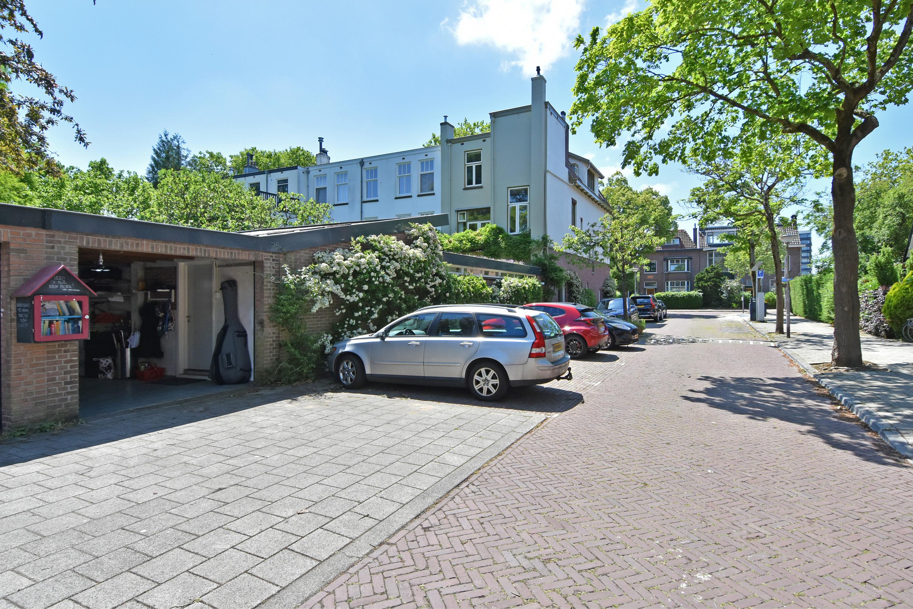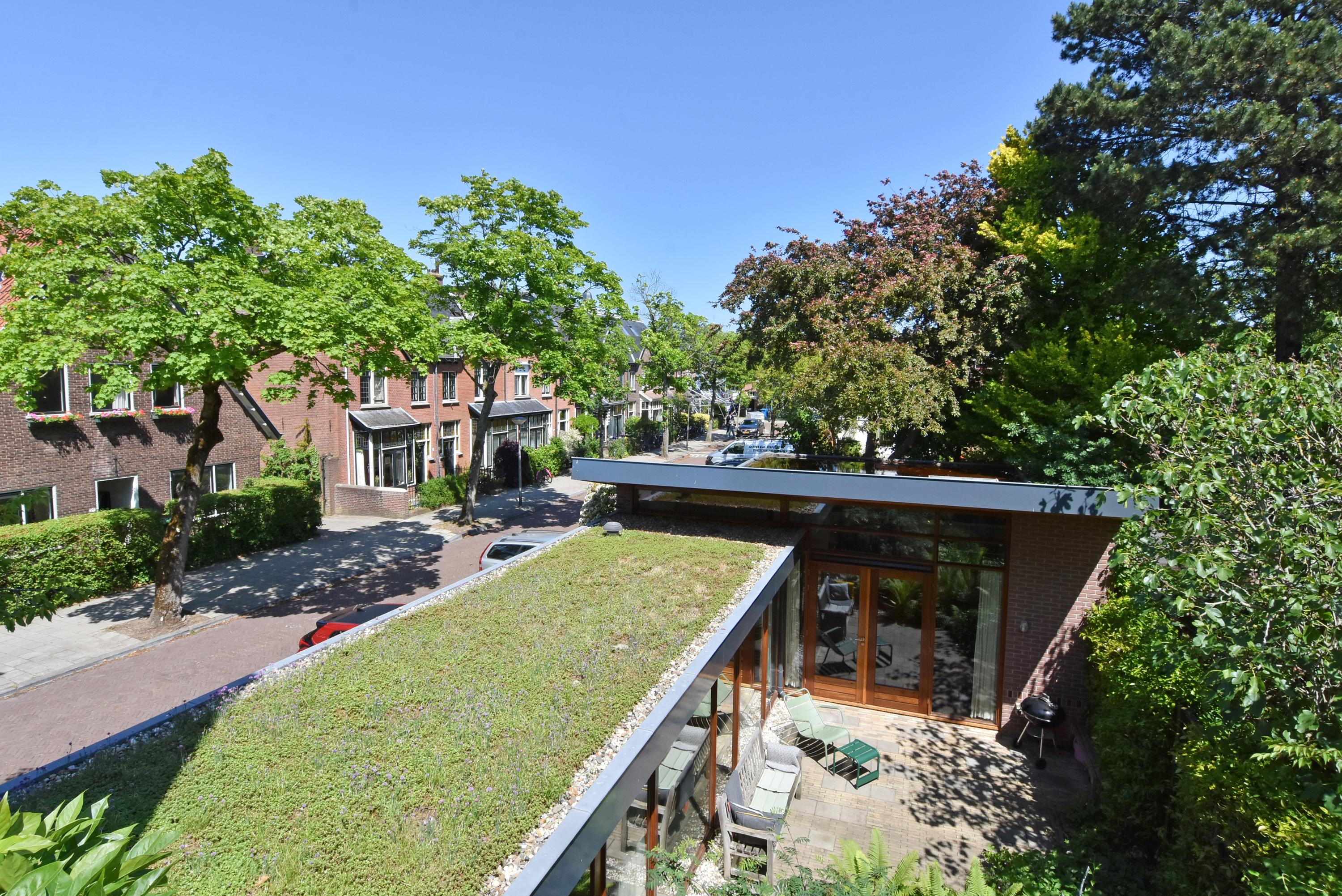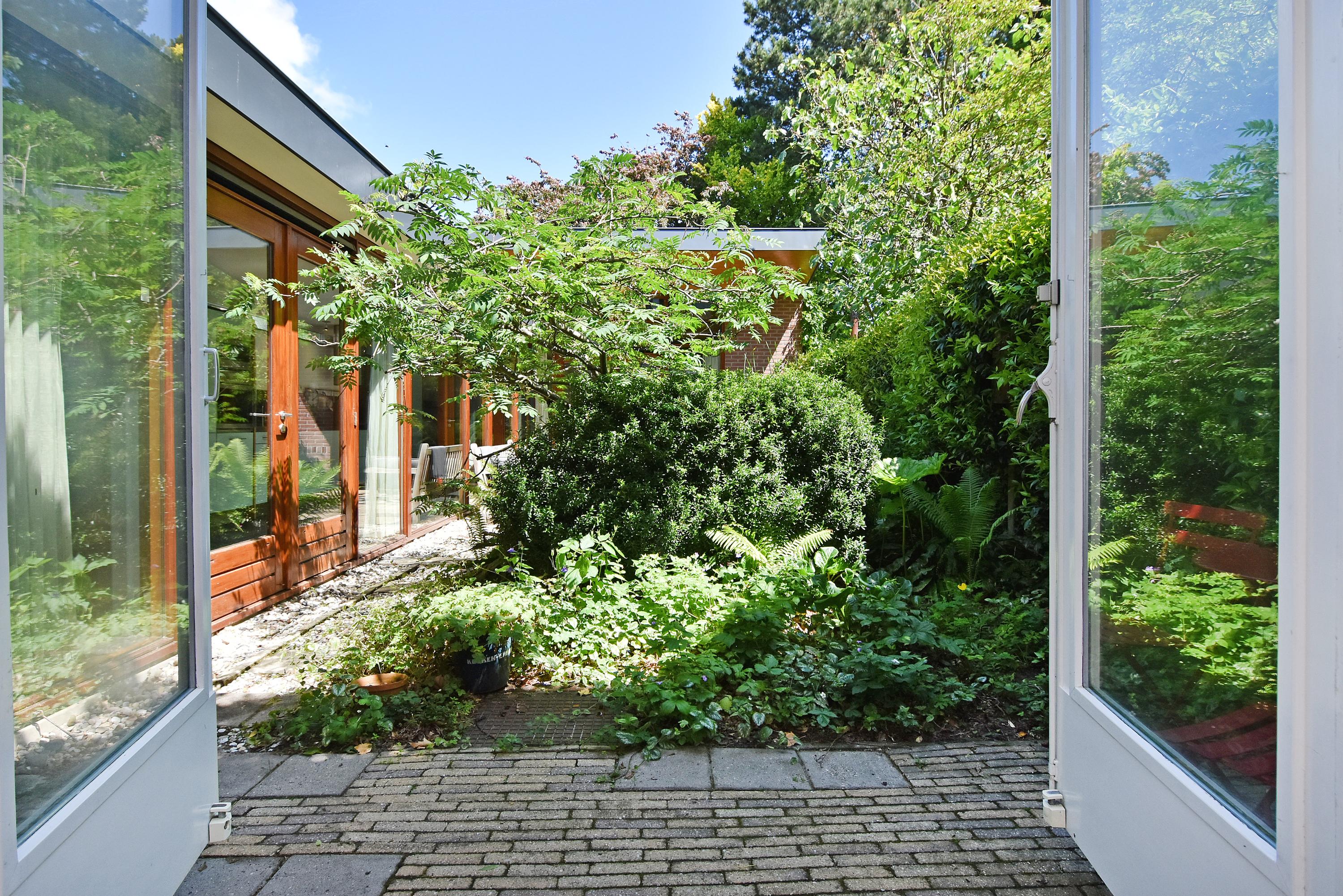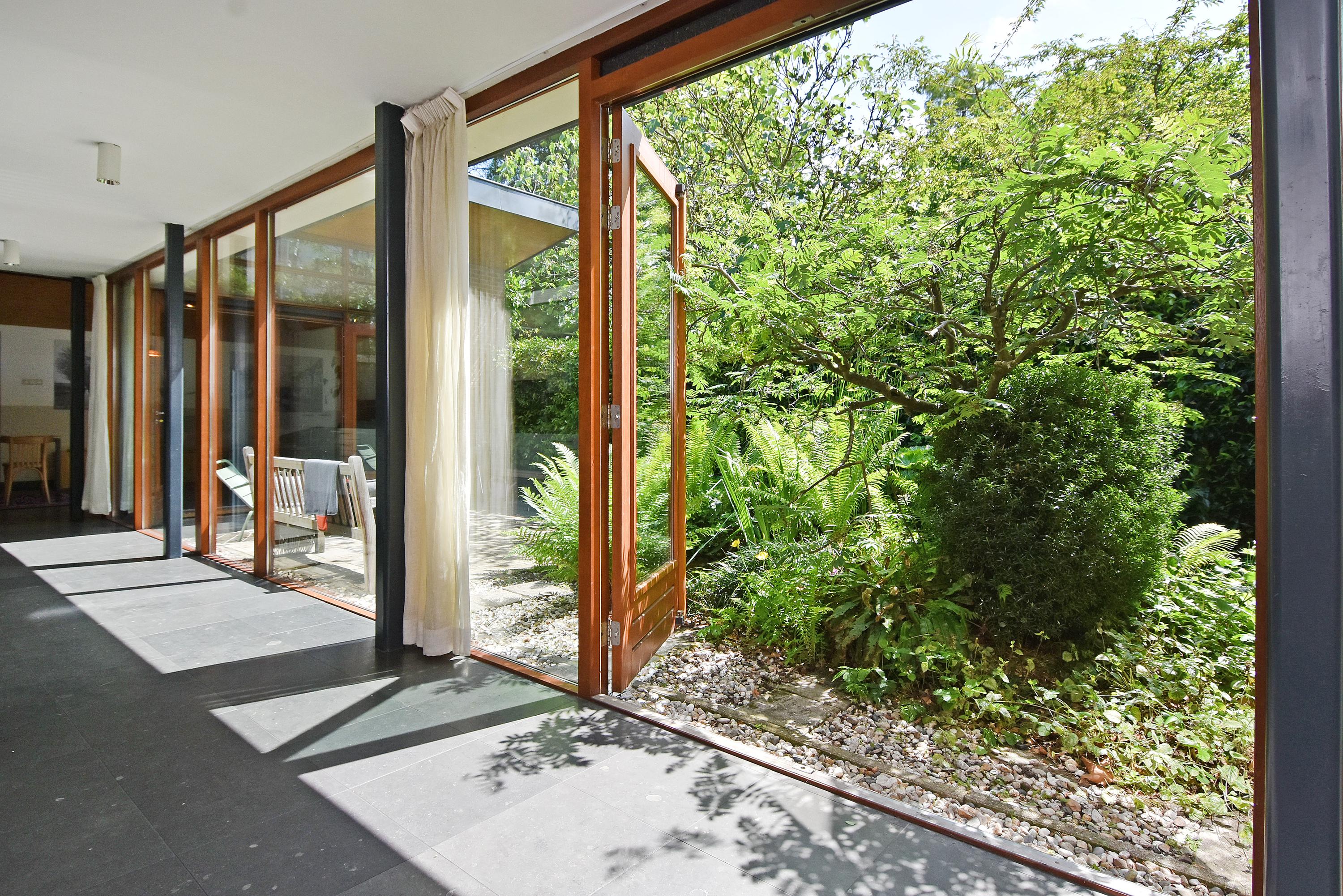 Een moderne aanbouw vormt een bijzonder geheel met het historische huis. Hier vind je de volledig ingerichte en uitgebreide keuken, voorzien van groot blok met rvs-aanrechtblad, ladenblokken, prima werkruimte en veel (design) inbouw-apparatuur, die met grote raampartijen uniek uitzicht heeft tot de fraai aangelegde, zeer groene en zonnige tuin. Aansluitend vind je een royale eet- en muziekkamer, welke ook via openslaande deuren toegang biedt tot de achtertuin. Deze eetkamer maakt het eveneens mogelijk om de achtergelegen royale garage te bereiken. Uiteraard kun je de garage, mede voorzien van daglicht, ook via de naastgelegen straat bereiken.