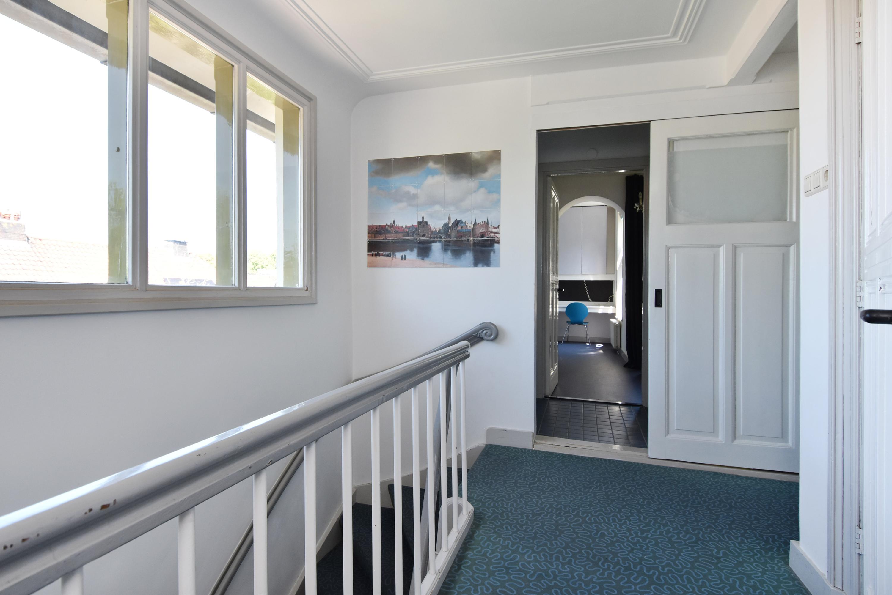 De bovenste verdieping met een ruime en lichte overloop biedt via de zijmuur een prachtig en weids uitzicht op de Delftse torens. Vanuit hier loop je zo door naar een badruimte met douche, wastafel en 4e toilet en achtergelegen slaapkamer. Aan de voorzijde vind je de royale ouderslaapkamer met veel kastruimte. In het midden van deze verdieping is een ruime berging gerealiseerd, die is voorzien van veel opslagruimte, opstelplaats CV-ketel, wasmachine en droger. Tevens kun je vanuit hier het dak bereiken met een vlizotrap. Ook is er een royale slaapkamer aan de achterzijde te vinden met eveneens prima bergruimte. Aan de achterzijde van deze verdieping is er wederom een slaapkamer aanwezig met veel bergruimte en een eigen badkamer, voorzien van douchegelegenheid, wastafel en 5e toilet.